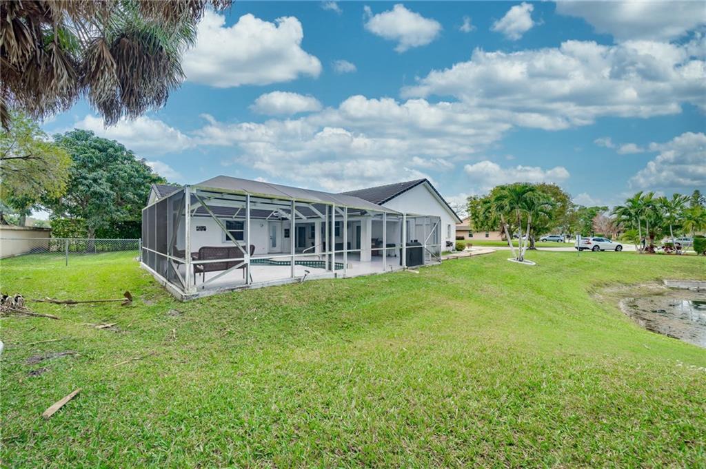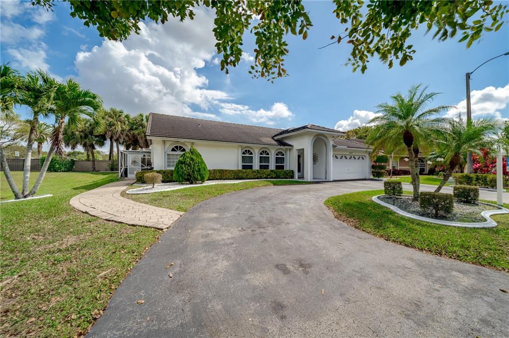 Location Location !! Spacious (2,594 sq.ft adj.) Coral Springs 4 bedroom 3 full bathroom pool home in desirable Coral Trace development. Elevated Ceilings. Split Bedroom floor plan. Separate laundry room. Impact Windows! Circular driveway. Two Car Garage. Huge 13,000 square foot end lot providing privacy for screened Salt Water Pool with waterfall feature. Spacious Pool Deck with perfect view of the water. New Rheem AC with warranty. New water heater. New garbage disposal. Central Vac. Fenced yard for pets. Very low HOA fee. List price reflects original roof. This home is a must see!!!
