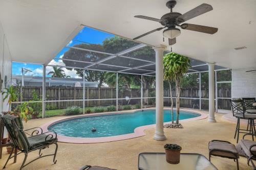 Beautiful 3 bedroom 2 bathroom single family, corner lot, screened in pool home located in Miramar. No HOA. Enter this split floor plan and be greeted with pool views. Step onto new wood flooring and step down into the living room leading you to the pool & screened in porch. Large glass doors & windows provide an abundance of natural light. Kitchen with eat-in dinning, kitchen countertop extends outdoors creating a poolside oasis. Fenced in backyard with shed. Expansive driveway. Covered front porch. Lush trees, landscaping & lots more! Conveniently located near to major highway, restaurants and entertainment. Professional photos coming soon.