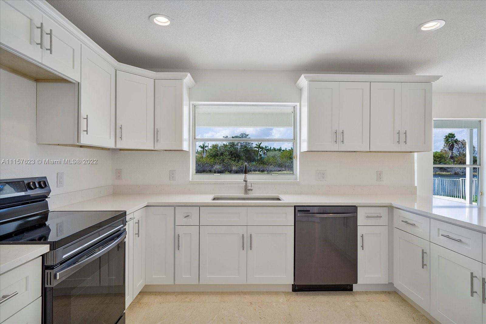 Gorgeous pool and lakefront home in the heart of Silver Lakes. 5/3 home with a 3 car garage in a gated community. One bedroom downstairs with one full bathroom downstair. Home is very airy and bright with tons of windows. All brand-new tile downstairs. Open layout with vaulted and tall ceilings. Quartz countertops and all brand new appliances. Kitchem also includes bar area. Master bedroom has a full size balcony overlooking the pool and lake. 2 walk in huge master closets. The best part the master has a soaking tub! New shower and New shower floors!