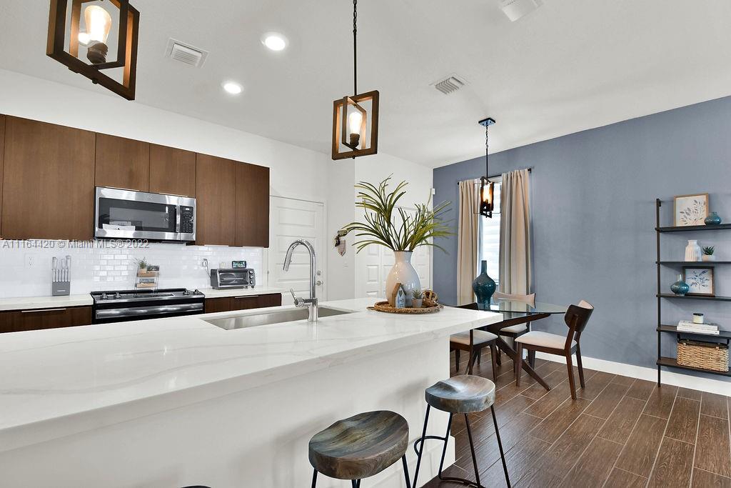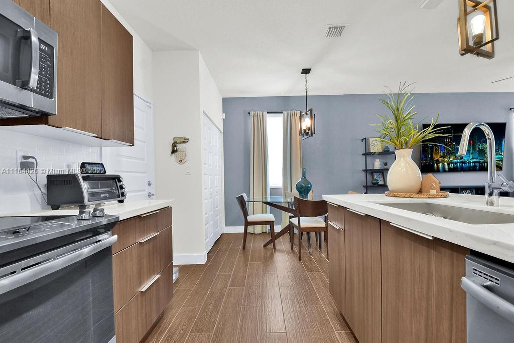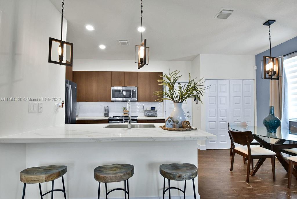 Contemporary 3/2.5 in the heart of Downtown Doral in Urbana! Corner unit located at the end of Paseo with 2 car garage. Property features upgraded flooring, and kitchen as well as impact windows and doors, modern finishes throughout the unit. Impeccable unit. Clubhouse features resort style pool, state of the art gym, basketball court, kids splash pad, private game rooms, and much more.
