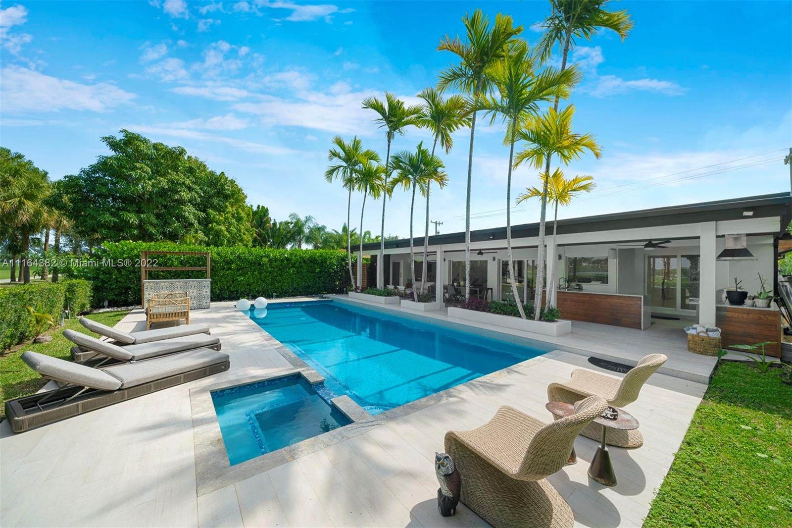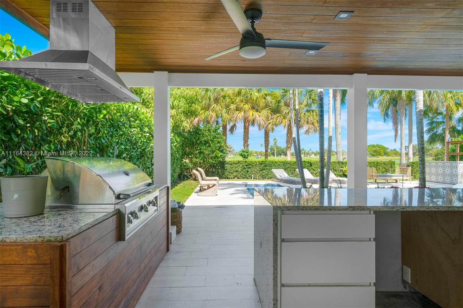 Completely renovated home in a gated community with outstanding views of Normandy Shores Golf Club! This home is complete with 3 en suite bedrooms with features including brand new impact windows and doors, new custom kitchen cabinets, quartz counter tops, new appliances, laundry room, and updated plumbing. Enjoy complete indoor/outdoor living as there is a full summer kitchen complete with a BBQ and outdoor shower and powder room.