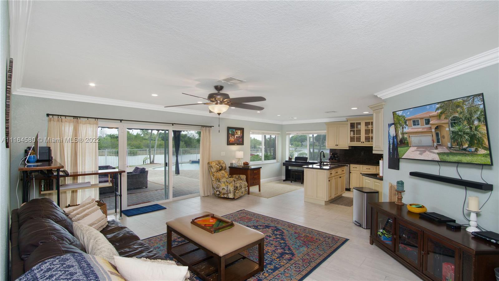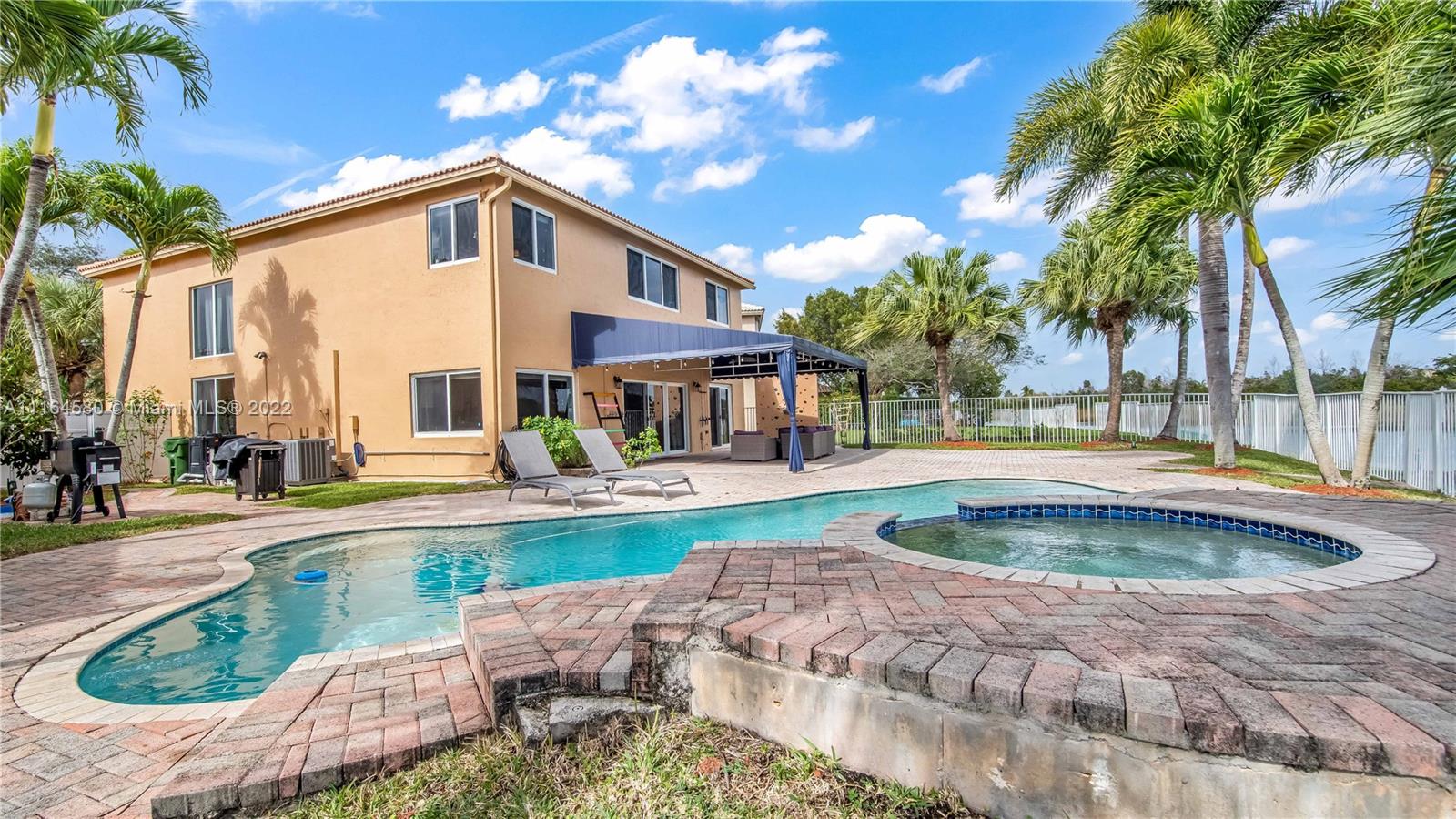 Spectacular waterfront home in the highly sought after community of Pembroke Isles with access to a fully equipped fitness center, aerobic studio, sauna, beautiful pools, tennis, racquetball , basketball and beach volleyball courts, community parks and a clubhouse facility and much more. The home features three bedrooms/ two full bathrooms upstairs and a guest room with full bathroom downstairs. Updated kitchen with new appliances, new floors throughout, freshly painted, oversized family room, living room, formal and informal dining , custom iron staircase handrail, two car garage, heated salt water pool and spa, large covered patio area for entertainment and impact windows and doors. Near upscale shopping and dining, A-rated schools, and state of the art hospitals.