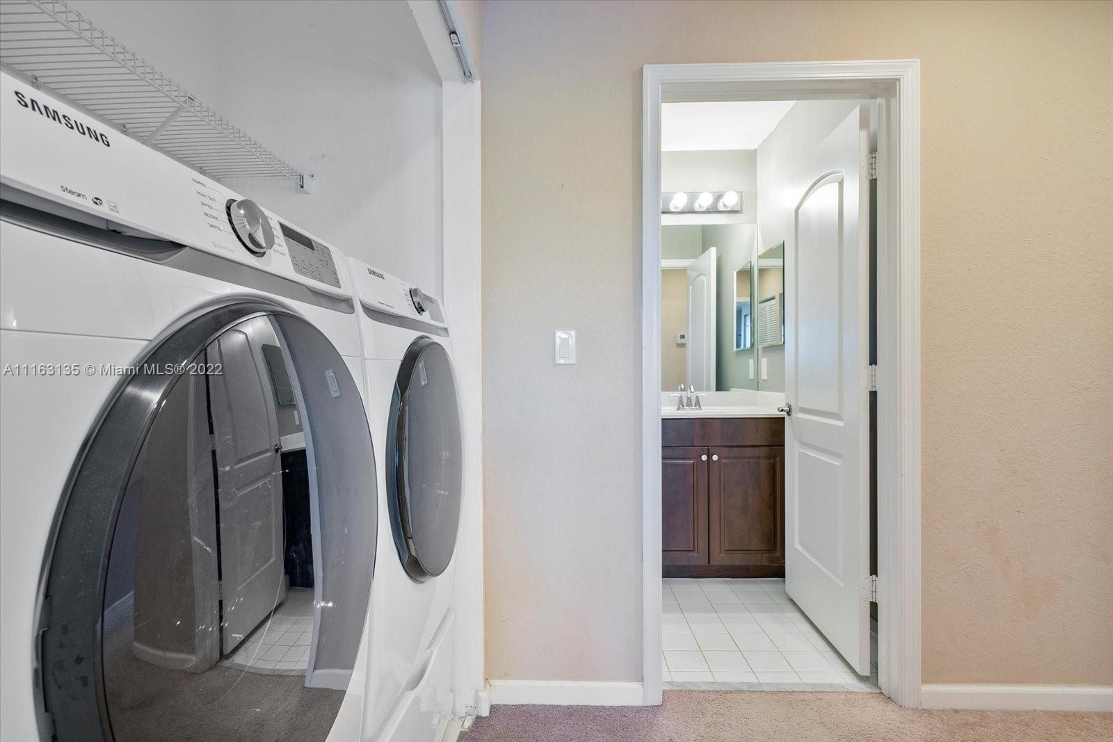 Beautifully upgraded townhome with water and preserve views! Spacious kitchen features granite counters, tile backsplash, stainless steel appliances including a new dishwasher, and opens to the living area. All bedrooms are located upstairs, along with a full secondary bathroom. Primary suite features large walk-in closet, dual sinks in bathroom, and large shower. New washer and dryer included! Step outside to the open patio and enjoy serene water view. Community amenities include pool and playground. Walking distance to shops and restaurants!
