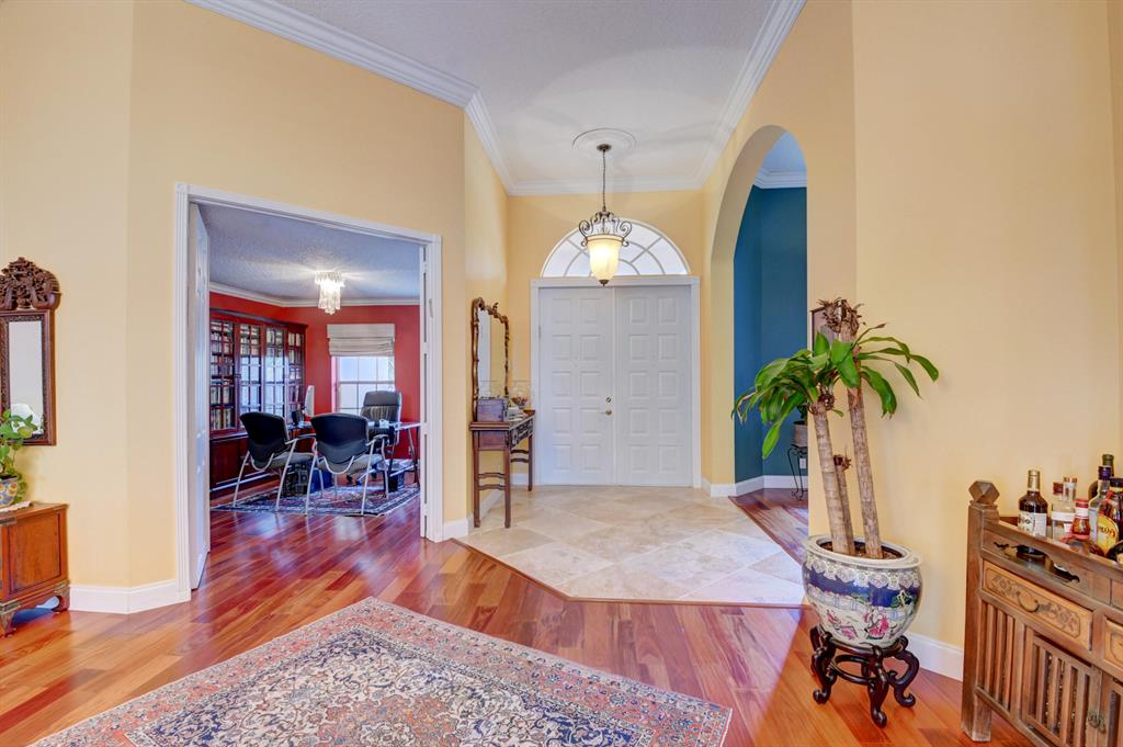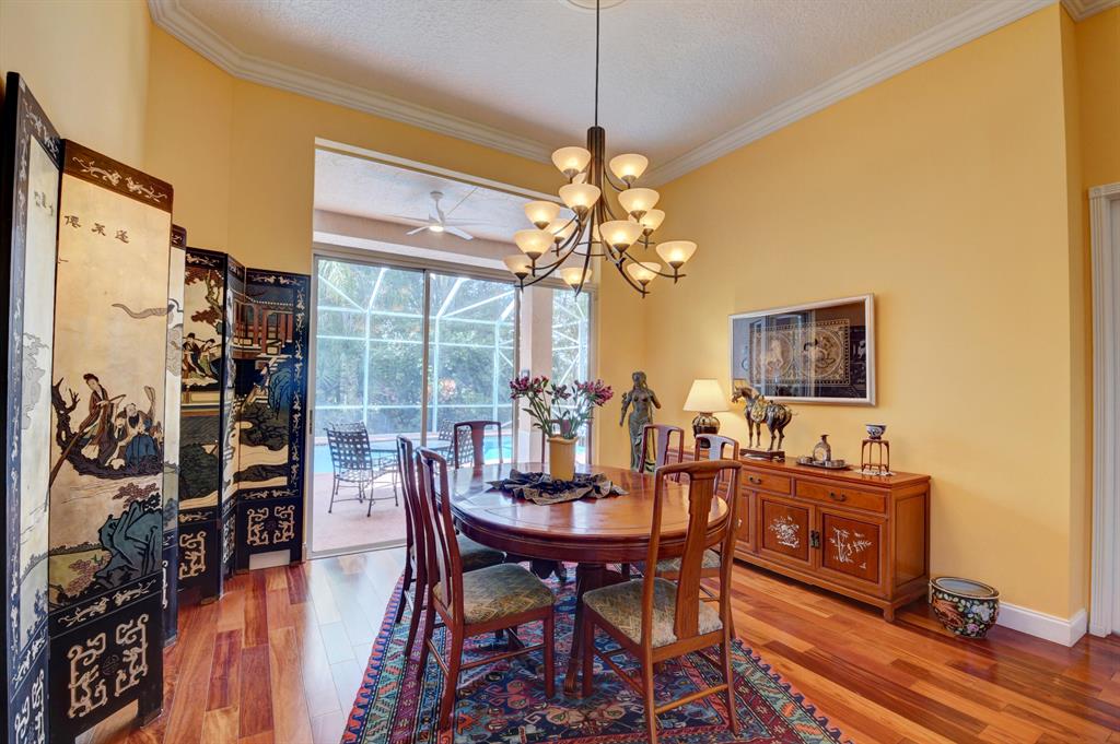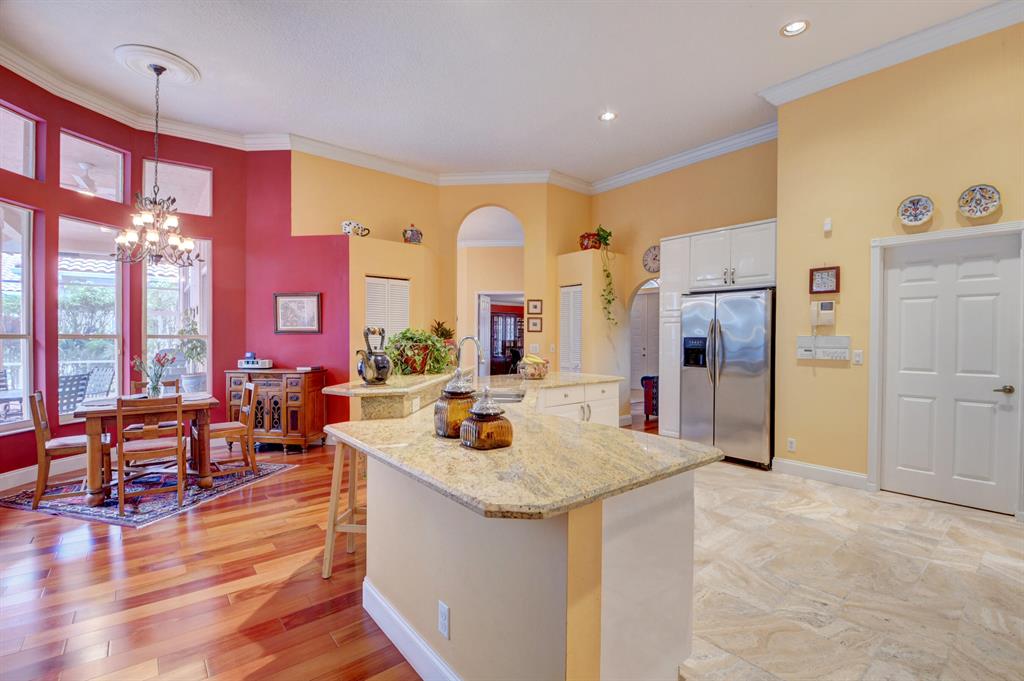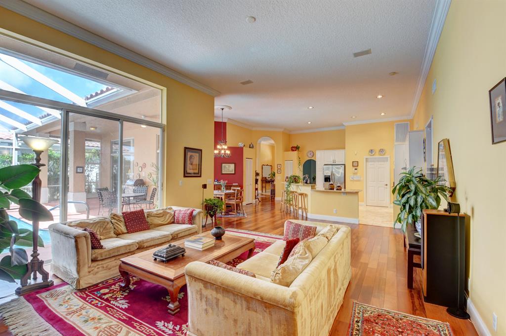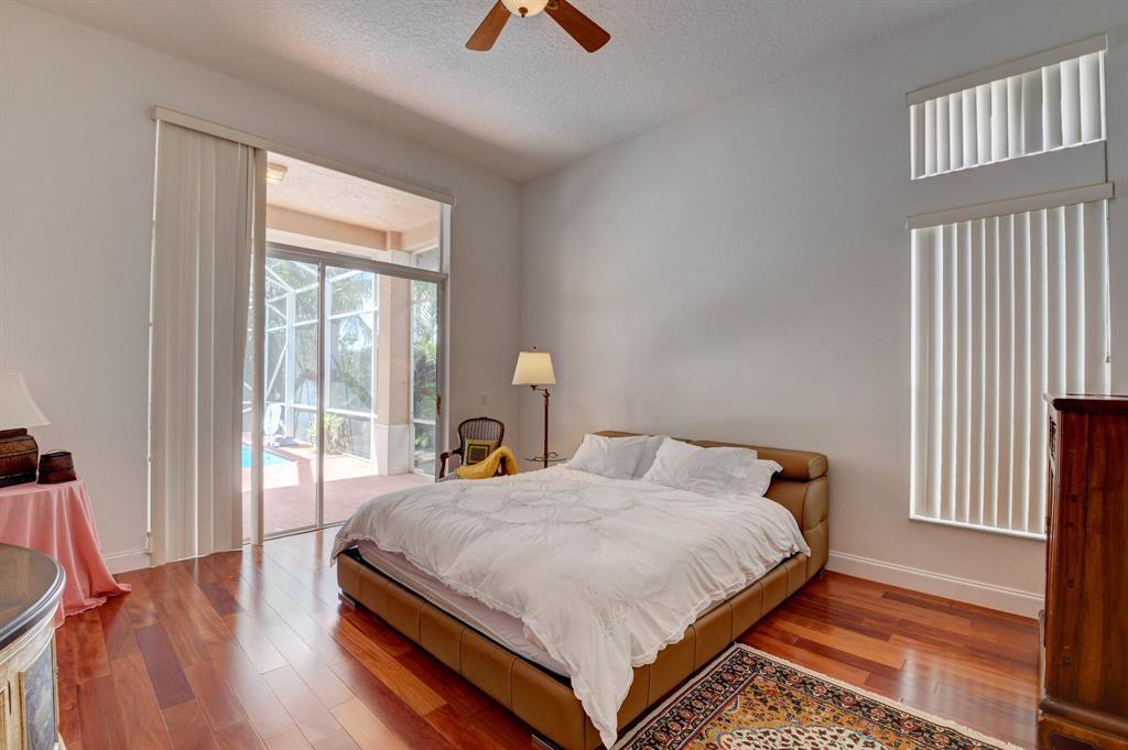 This remarkable home, situated on a quiet interior lot, features the open and airy floor plan of the sought-after Grand Cayman V model in the very desirable community of Boca Isles North. This total 3,660 sq. ft. house features 4 bedrooms with a convertible den, 3 full bathrooms, one of which is a cabana bath; and an exceptionally large family room. The split-bedroom floor plan features an especially large master suite with dual closets, dual sinks, a whirlpool tub, separate shower, and a WC. The kitchen offers ample cabinetry space, large custom granite countertops, and Frigidaire/Thermador SS appliances. Beautiful wood flooring throughout the house, with travertine tile in the kitchen and foyer. A spacious patio with a large pool, all screened-in and surrounded by lush landscaping.