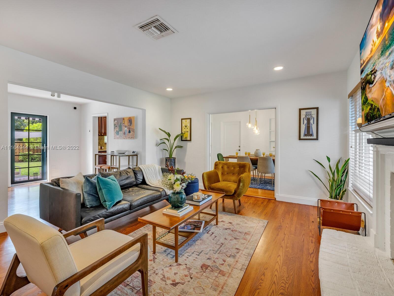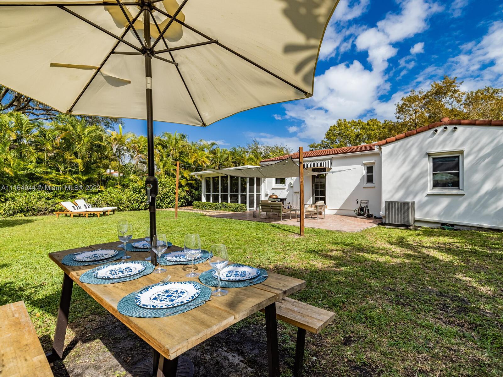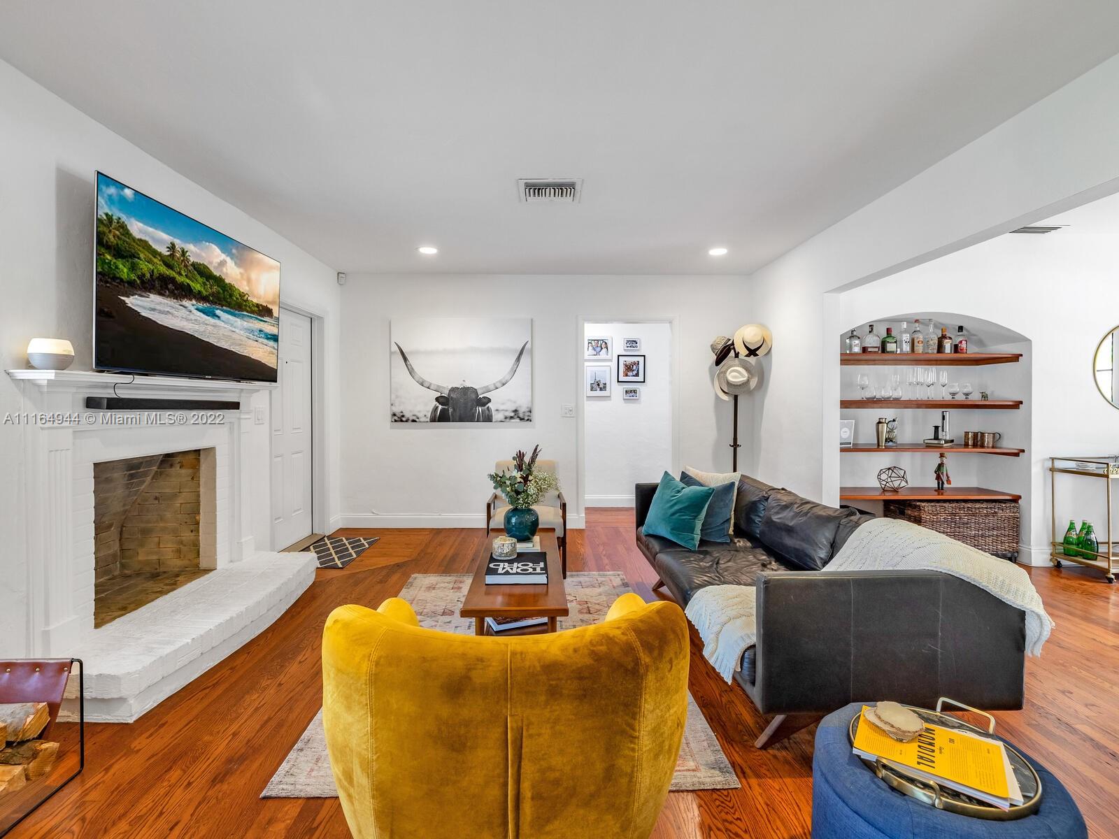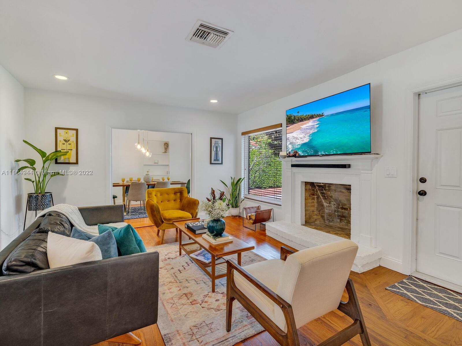 Welcome to The Corner Redbrick Charmer! Delight in this updated, enchanted home with expansive lush rear gardens on a great Miami Shores corner lot. Open living with signature fireplace flows to separate dining and updated chef’s kitchen plus a fabulous bespoke eat-in area and cool, curved niched shelves, perfect for favorite cookbooks and epicurean delights! Dreamy sleep in three bedrooms, plus new designer bathroom. Escape to the large screen porch overlooking spacious rear gardens with grand entertainment deck- get ready to fire up the grill, mix some cocktails and savor the tranquility with friends and family! Your personal oasis also has a one-car garage, impact windows-doors and hardwood floors, all in a non-flood zone just three blocks to downtown Miami Shores shops and restaurants.