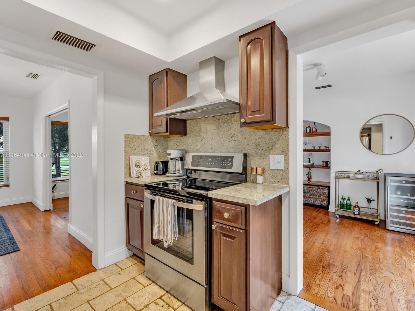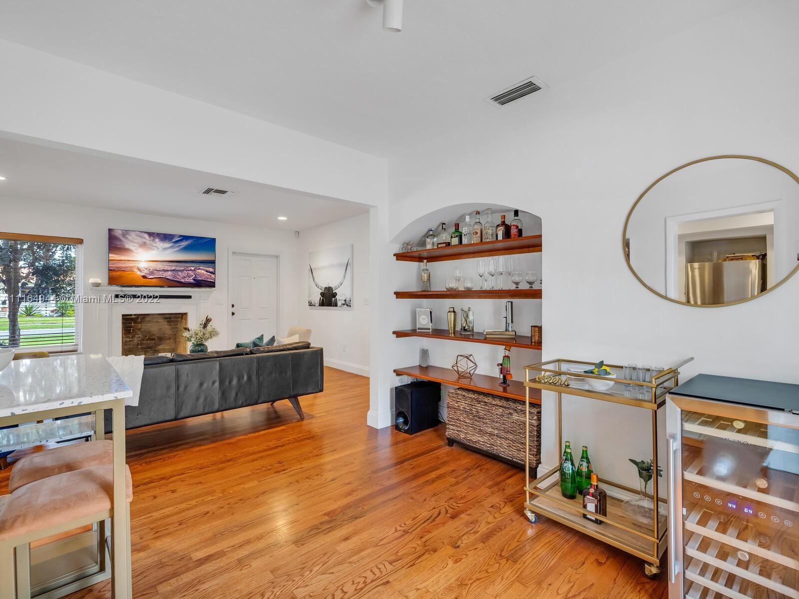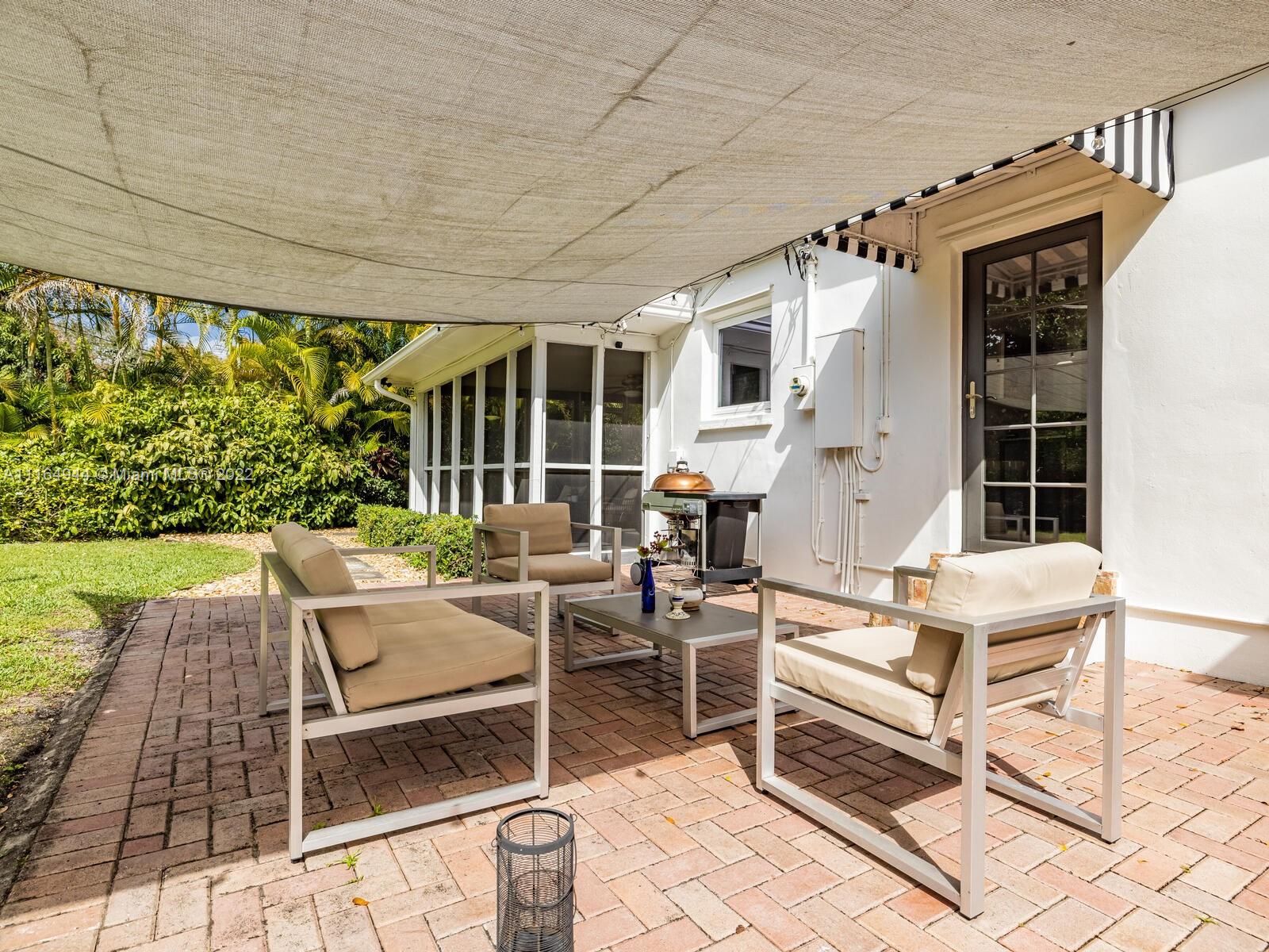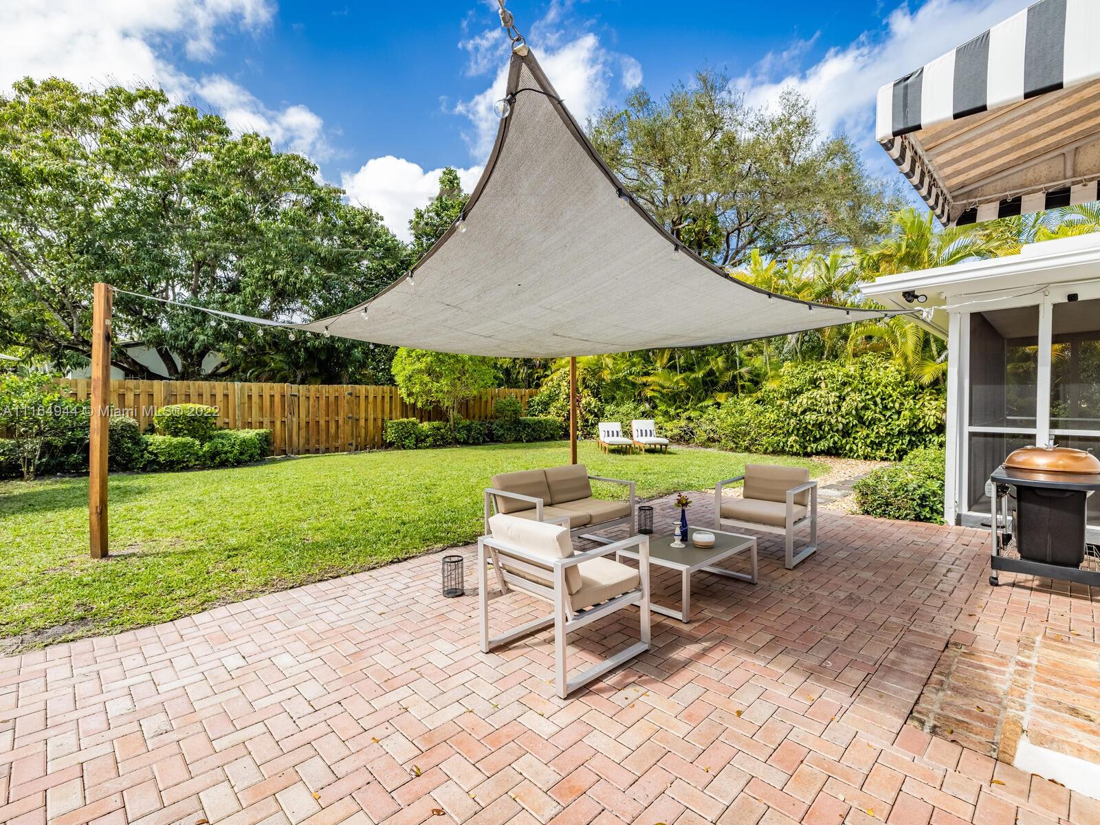 Welcome to The Corner Redbrick Charmer! Delight in this updated, enchanted home with expansive lush rear gardens on a great Miami Shores corner lot. Open living with signature fireplace flows to separate dining and updated chef’s kitchen plus a fabulous bespoke eat-in area and cool, curved niched shelves, perfect for favorite cookbooks and epicurean delights! Dreamy sleep in three bedrooms, plus new designer bathroom. Escape to the large screen porch overlooking spacious rear gardens with grand entertainment deck- get ready to fire up the grill, mix some cocktails and savor the tranquility with friends and family! Your personal oasis also has a one-car garage, impact windows-doors and hardwood floors, all in a non-flood zone just three blocks to downtown Miami Shores shops and restaurants.