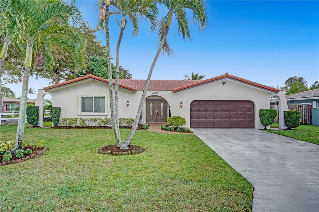 Welcome Home! Freshly painted inside/outside this 3 bedroom/2 bath home offers a spacious floorplan with lovely views of the screened-in heated pool and garden, thru new impact sliders and eat-in gourmet kitchen. The patio overlooks a serene canal, fruit trees, and Three Friends Park. Home features all Impact windows/doors with shutters, 2017 AC, 2021 Refrigerator, 2015 Electric upgrade, 2015 new Skylights & Flat Roof (2021 resealing done), 2002 Barrel tile roof just inspected and new fascia added, 2019 Pool Pump, 2017 Pool Heater. Sparkling tile floors throughout, large poolside Primary bedroom & bath with custom walk-in closet, large laundry room w/ 2016 Washer/Dryer, and 2-car garage complete the picture in this sought after community of Westchester in Coral Springs CC West. No HOA.