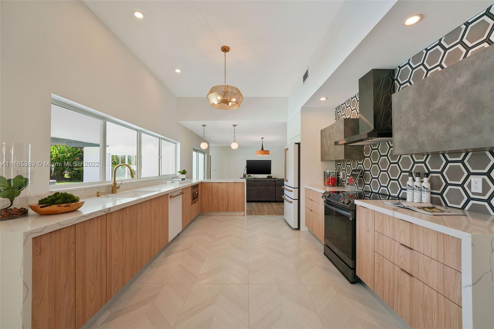 Completely renovated 3,909 sf home boasting 5 bedrooms and 3 bathrooms in North Pinecrest. Incredible attention to detail can be found throughout this custom residence. Spacious master suite features walk-in closet and stunning shower and freestanding tub combination. New kitchen and appliances are nestled in the open flow-through living spaces designed with the ultimate host in mind. The generous 19,865 sf lot features a completely fenced expansive backyard, spacious covered terrace and amazing summer kitchen overlooking the sparkling pool. Additional features include 2 car garage, generator, and impact windows and doors. Conveniently located minutes from major hot spots and A+ rated schools.