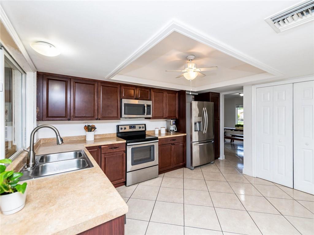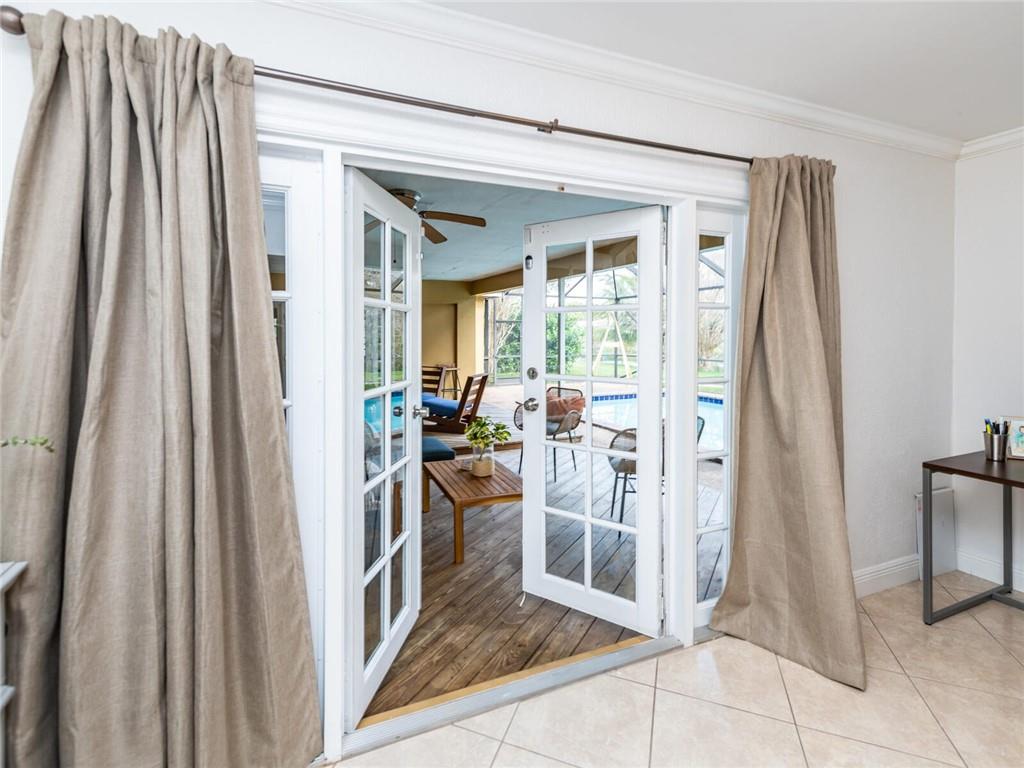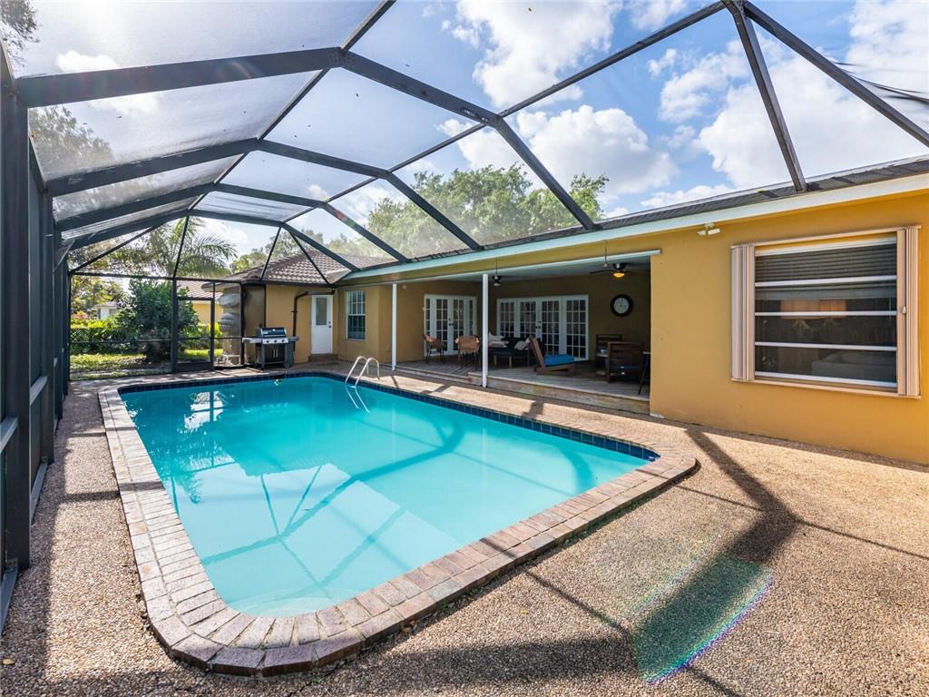 Gorgeous waterfront screened-in pool home located on an oversized lot in Royal Palm Estates features an open floorplan. French doors from all living areas lead to the covered patio and pool providing plenty of natural light, The large open eat in kitchen with granite countertops overlooks the family room. Huge master bedroom suite with extra room for an office/sitting area and opens to the pool. 3 full bathrooms. Tile throughout. High ceilings. Walk in closets and plenty of storage space. Separate laundry room leading to the garage. The private fenced in backyard is great for family gatherings & entertaining. Room for a swing set and dog run. Walk to your very own dock. No HOA fees or any HOA restrictions. Centrally located & close to shopping, restaurants and major highways.