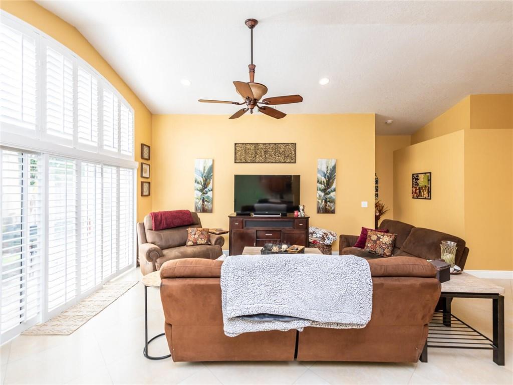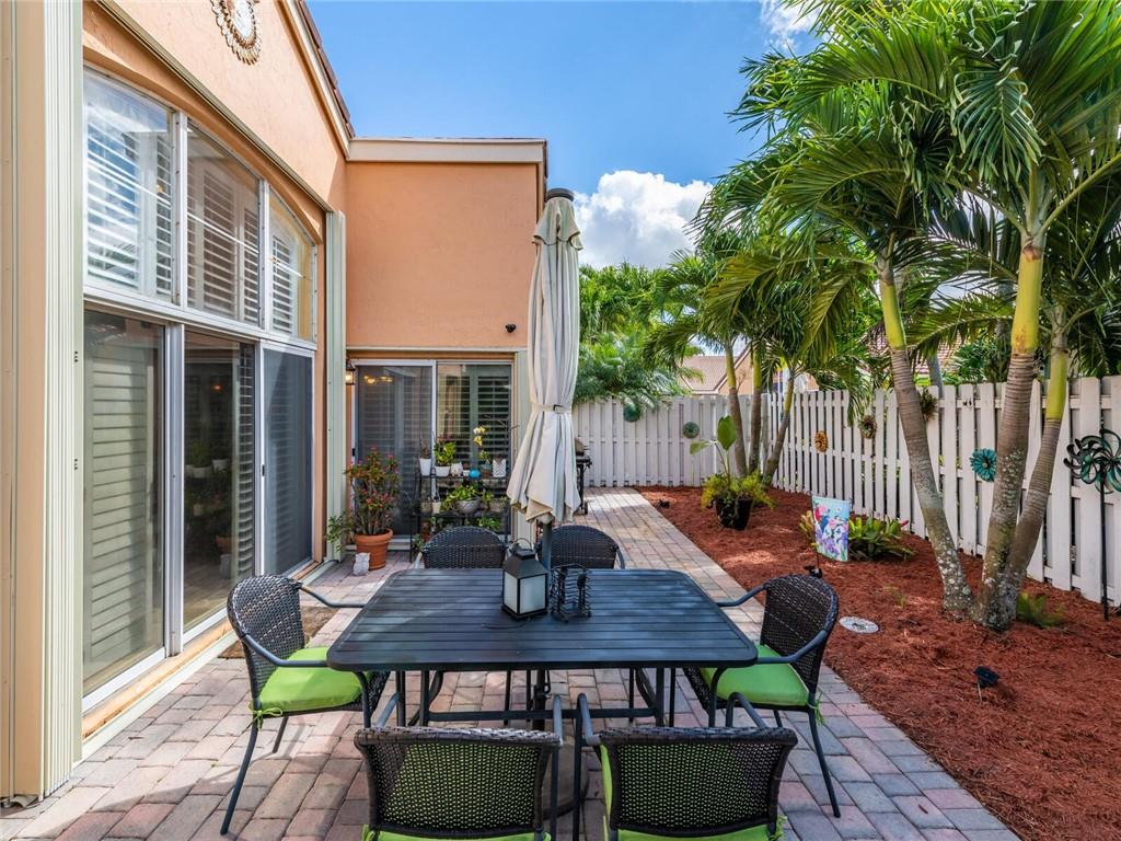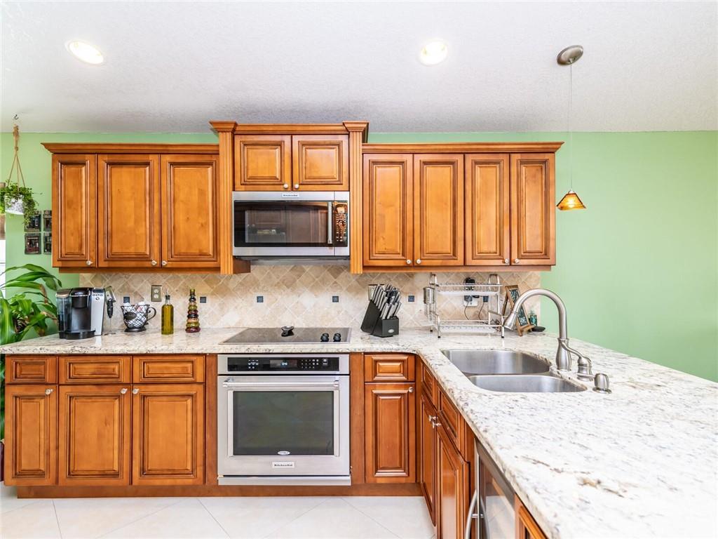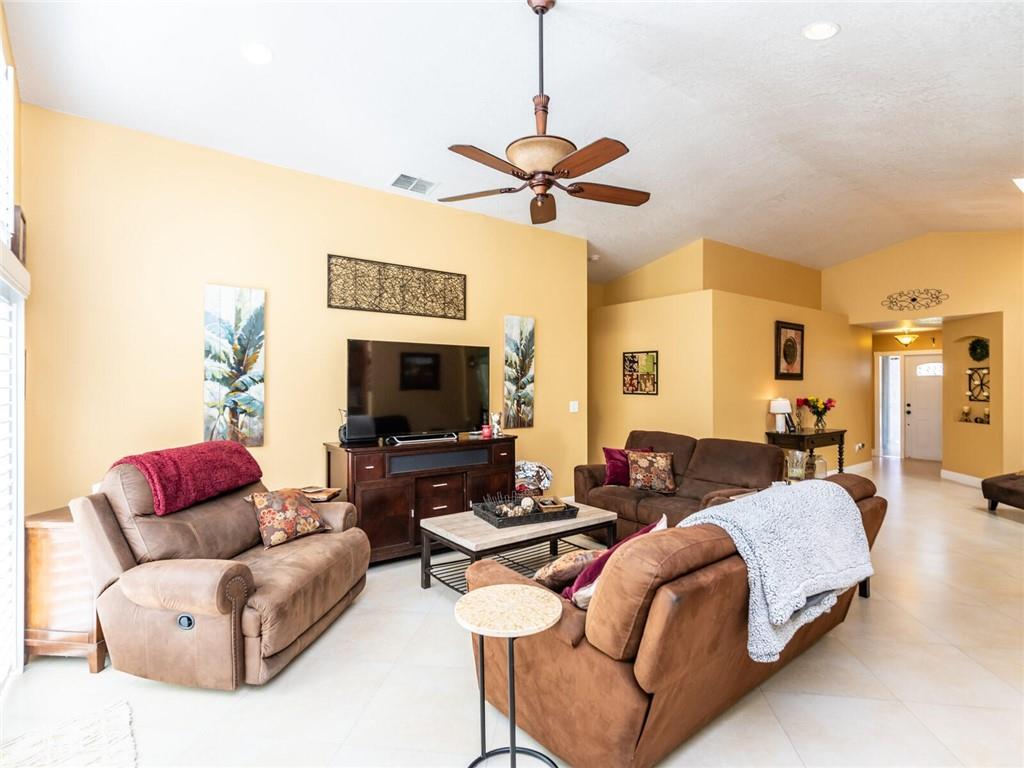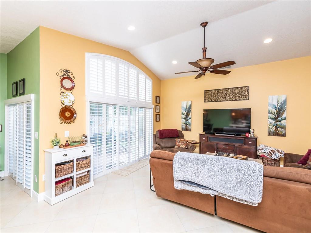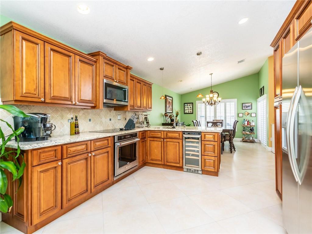 Absolutely Gorgeous-Shows like a model. Pride of Ownership. Neutral tile thru-out entire home. Updated Eat-In Kitchen features consist of: Wood cabinetry w/cabinet crown molding, premium granite, tumbled marble back splash, newer S/S appl, built-in stove top and wine cooler. Family rm presently being used as dining rm, breakfast area presently being used as desk area. Living rm/dining rm being used as a Great Rm. Cathedral/Vaulted ceilings, Plantation shutters, updated baths w/marble tops and frameless glass enclosures. Fenced corner lot, heavily landscaped pavered patio in backyard with palm trees(very private), pavered walkway. Accordion Hurricane shutters, New AC and NEST thermostat 2017, cabinets in laundry rm, new garage coach lighting. A MUST SEE-WONT LAST! See Brkr Remarks for more!
