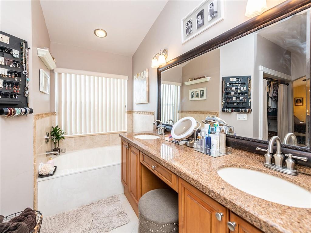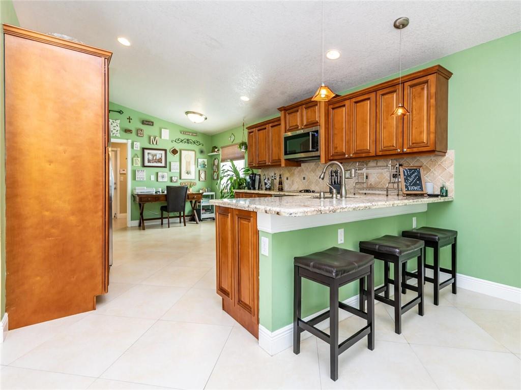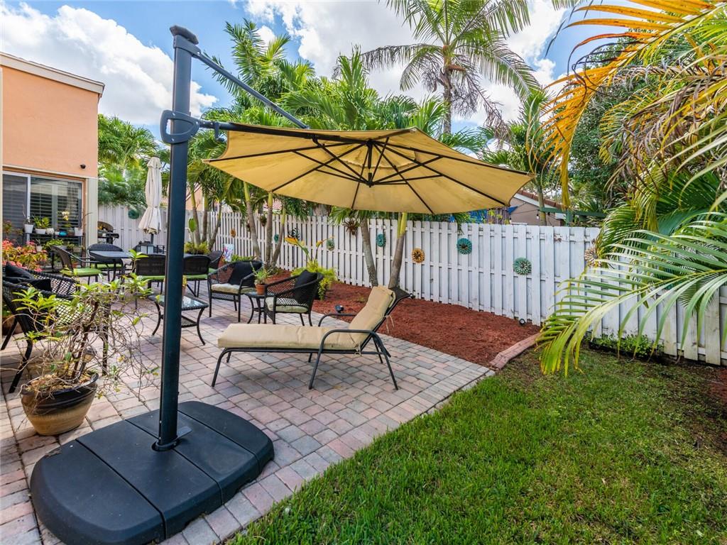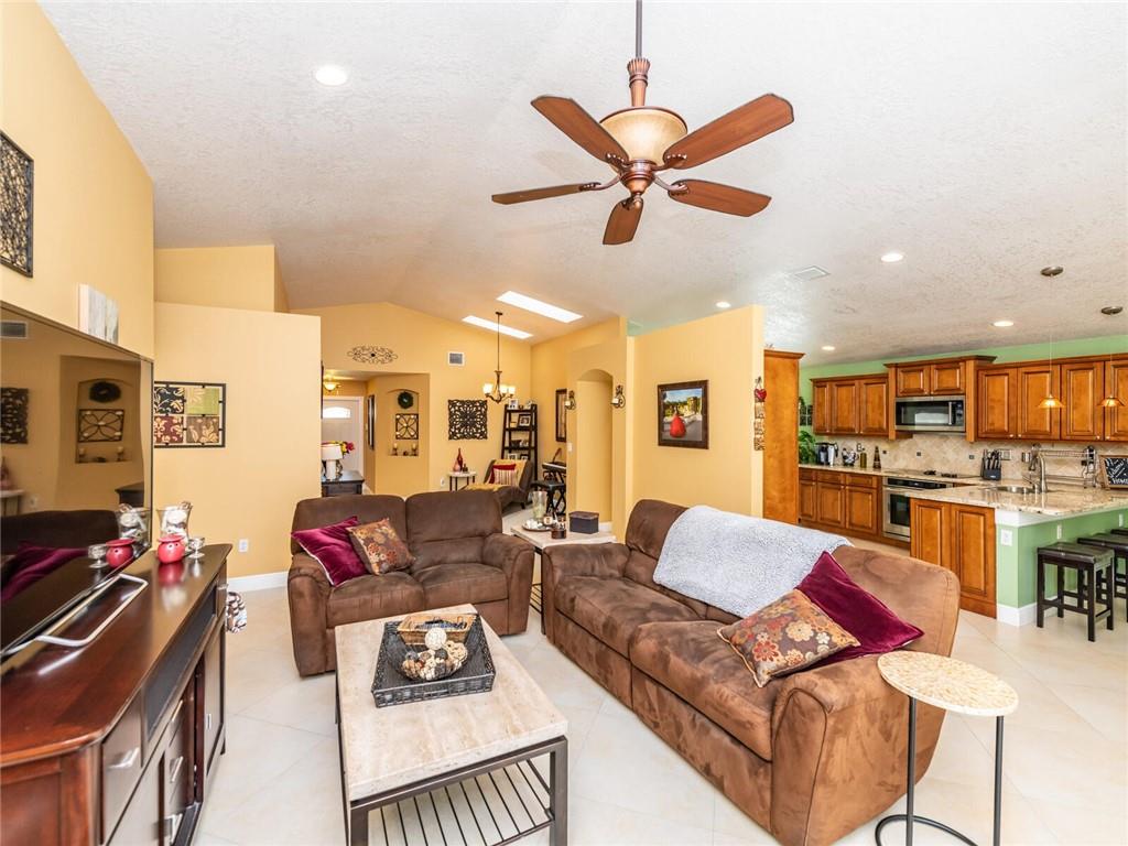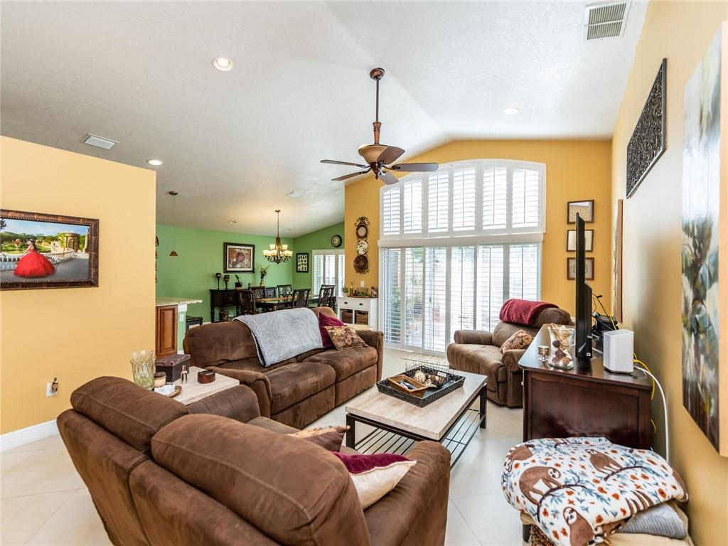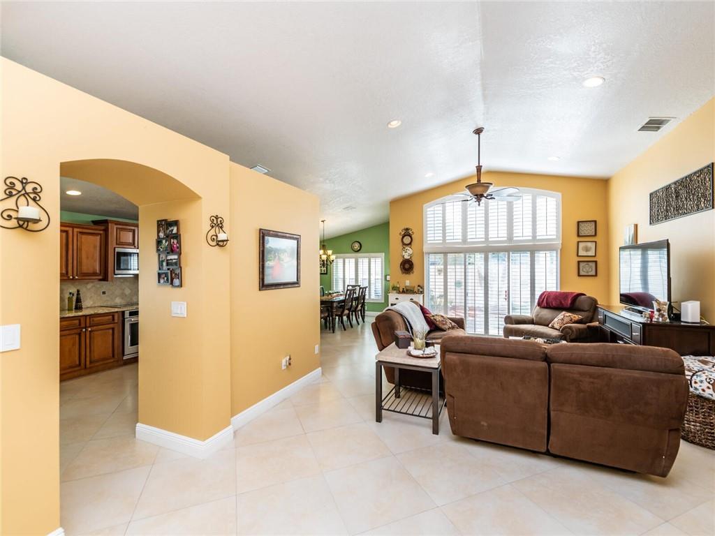Absolutely Gorgeous-Shows like a model. Pride of Ownership. Neutral tile thru-out entire home. Updated Eat-In Kitchen features consist of: Wood cabinetry w/cabinet crown molding, premium granite, tumbled marble back splash, newer S/S appl, built-in stove top and wine cooler. Family rm presently being used as dining rm, breakfast area presently being used as desk area. Living rm/dining rm being used as a Great Rm. Cathedral/Vaulted ceilings, Plantation shutters, updated baths w/marble tops and frameless glass enclosures. Fenced corner lot, heavily landscaped pavered patio in backyard with palm trees(very private), pavered walkway. Accordion Hurricane shutters, New AC and NEST thermostat 2017, cabinets in laundry rm, new garage coach lighting. A MUST SEE-WONT LAST! See Brkr Remarks for more!