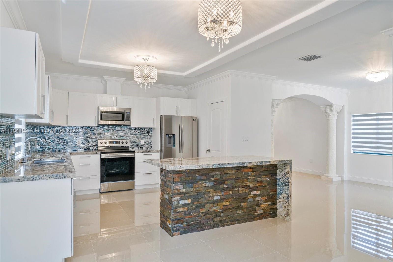 Brand New Construction-Contemporary designed 2 floor home located East of Hialeah , Minutes from Miami Airport, High Vaulted Ceilings, 5 Bedrooms & 4.5 Baths , three bedrooms upstairs en-suite with walk-in closet and two in main floor with one bathroom. Open concept kitchen with isle and Family room , finishes are decidedly modern such as kitchen with stainless-steel appliances , granite countertops , flat-panel smooth wood cabinetry and glass tile backsplashes. Amazing pool and garden , Two AC and External fixtures.
