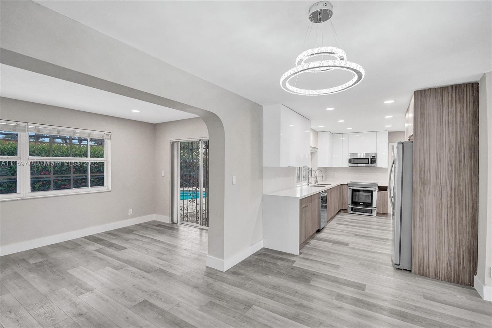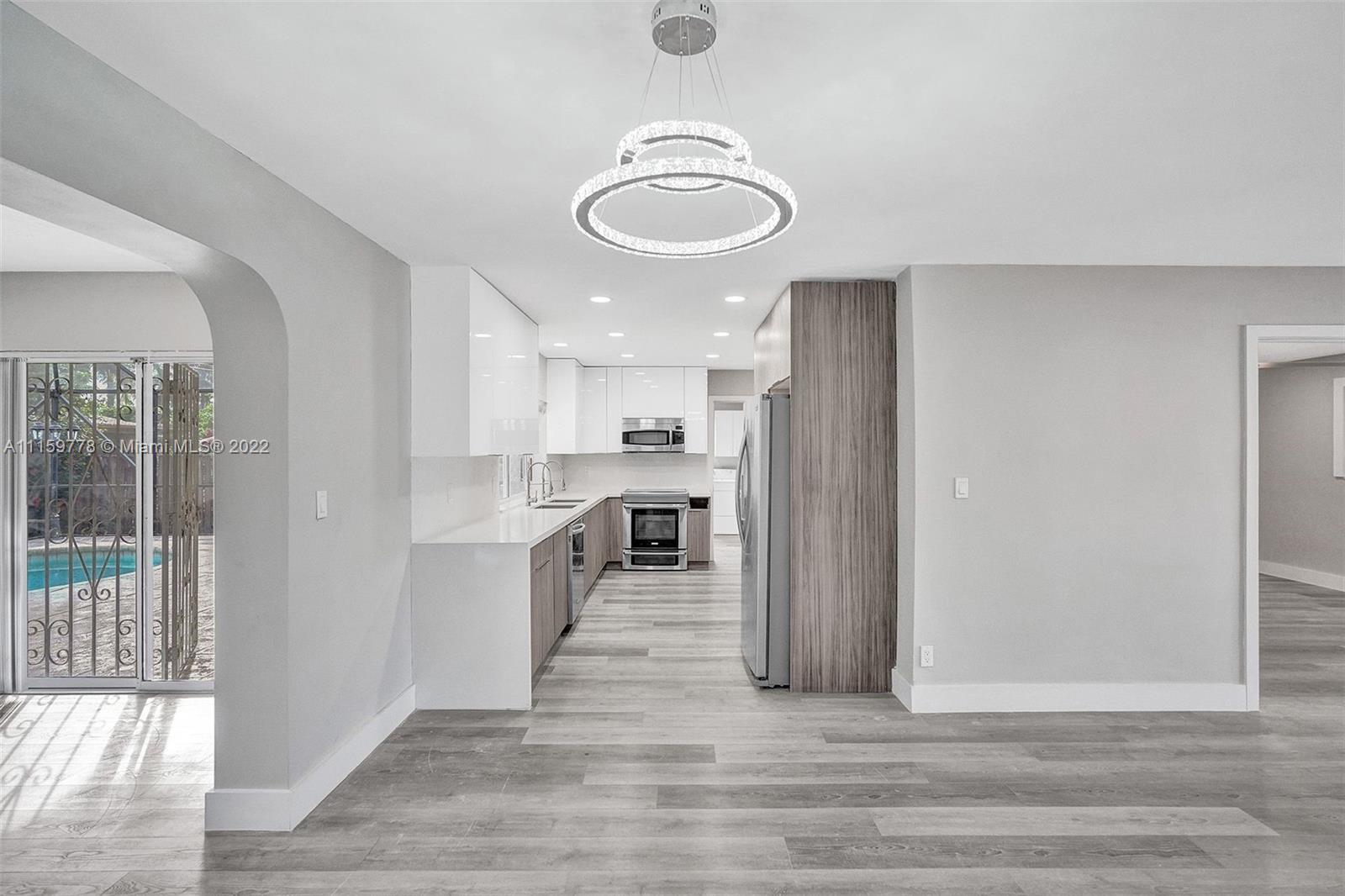 Completely remodeled, modern 4 bedroom, 2 bathroom home with a pool. New kitchen, stainless steel appliances, new floors throughout, recess lighting throughout. New chandeliers. Desirable location. Close to beach, shopping, houses of worship, Gulfstream & Aventura mall.