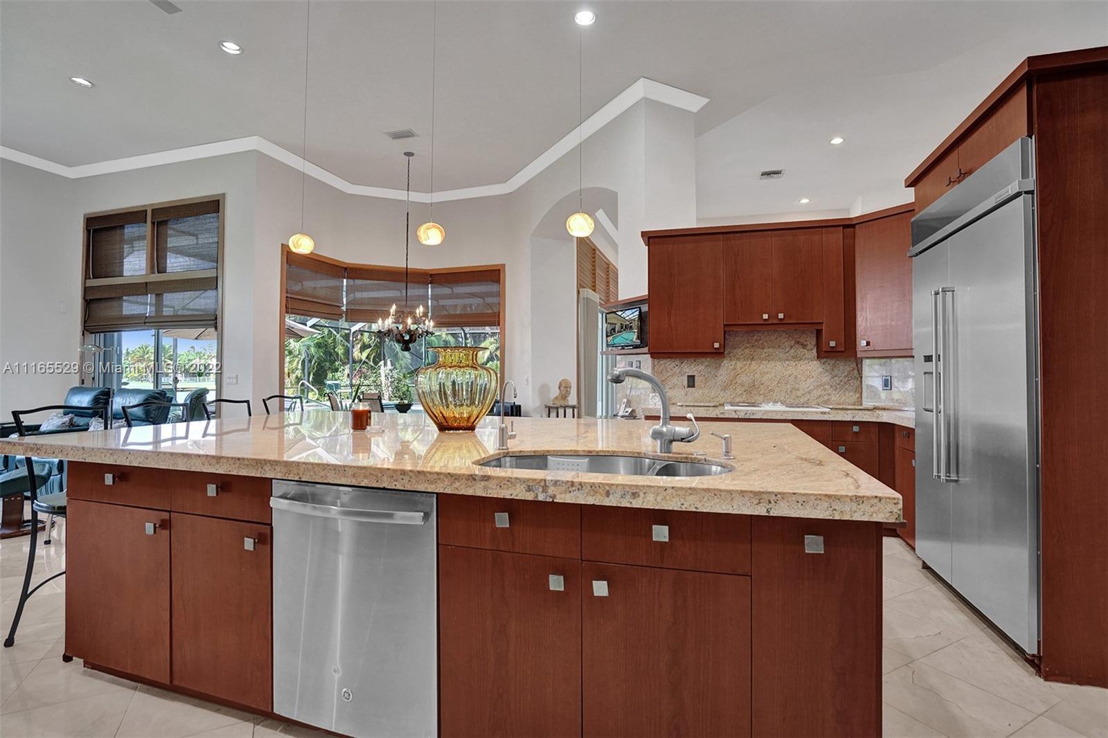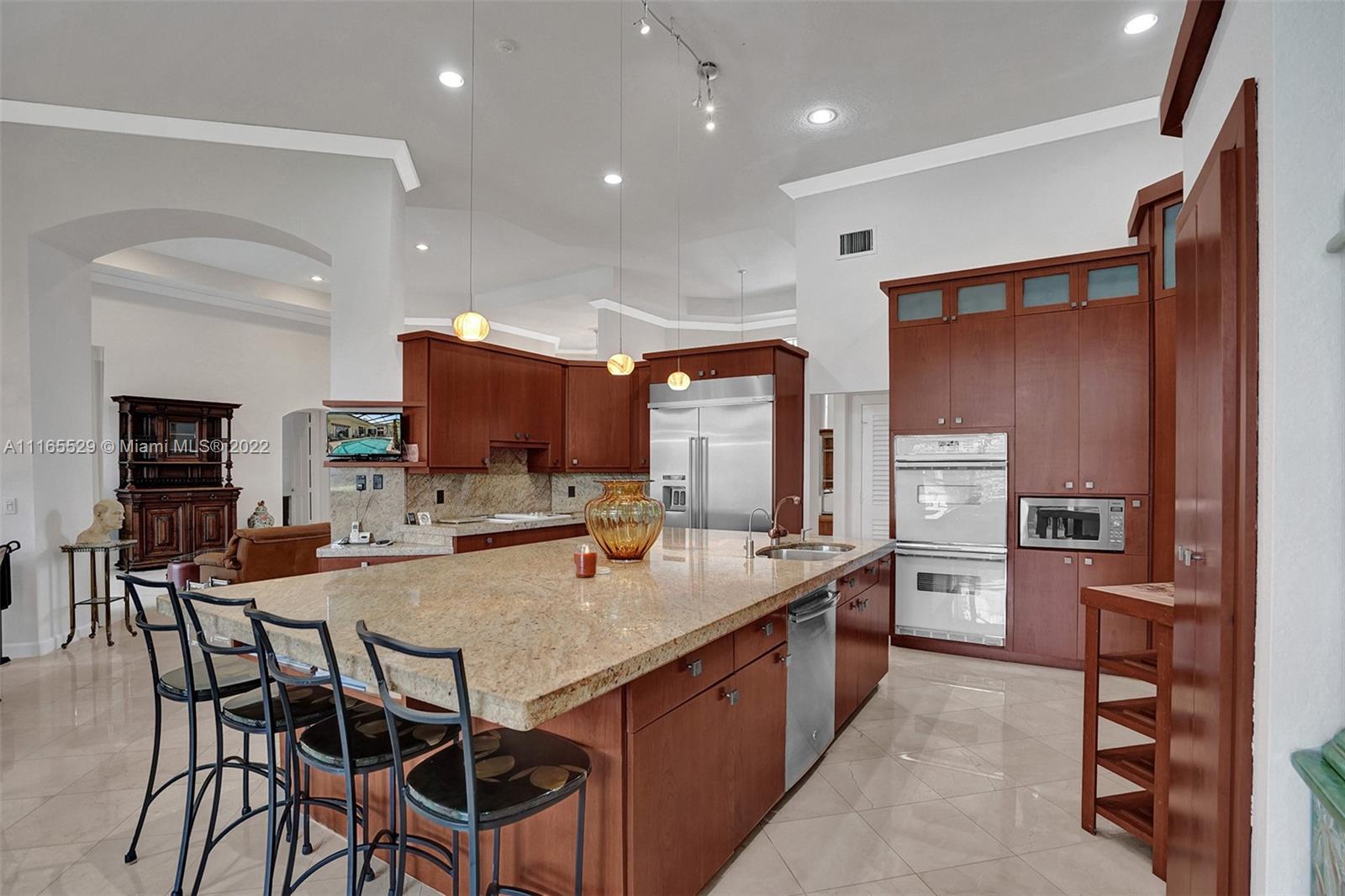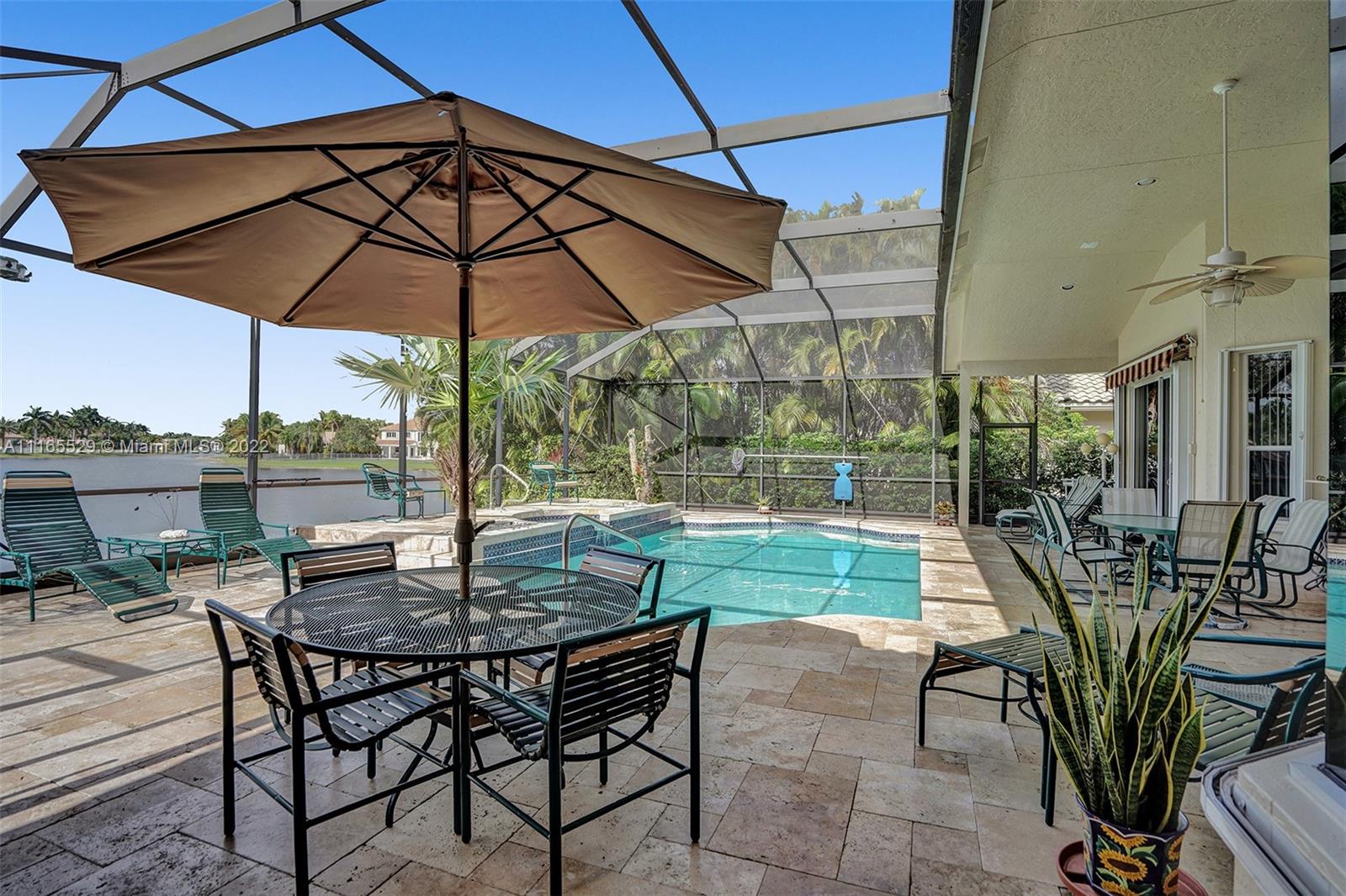 TUCKED ON A ROYAL PALM TREE-LINED CUL-DE-SAC STREET IN THE GATED COMMUNITY OF WESTON HILLS CC. CUSTOM ONE-STORY HOME WITH INCREDIBLE LONG LAKE VIEWS. 5 BED/+ OFFICE/ 5 FULL BATH 3 CAR. RENOVATED MASTER BATH WITH VESSEL TUB, GRANITE COUNTERTOPS, AND OVERSIZED SHOWER. MARBLE FLOORING THROUGHOUT LIVING AREAS. RENOVATED MODERN KITCHEN WITH GRAND CENTER ISLAND, STAINLESS STEEL, REFRIGERATOR, AND GRANITE COUNTERTOPS. RENOVATED TRAVERTINE POOL DECK WITH HEATED POOL/SPA WITH EXPANSIVE SCREENED POOL DECK, PLUS ADDITIONAL SIDE YARD WITH 2 AWNINGS AND ROOM FOR PLAY-SET. PLENTY OF ROOM IN THE LARGE BACKYARD. FRESHLY PAINTED INTERIOR. NEW ROOF 2020. FULL ACCORDION HURRICANE PROTECTION.