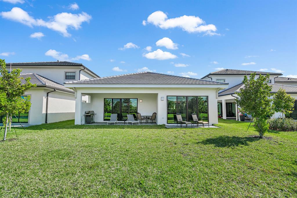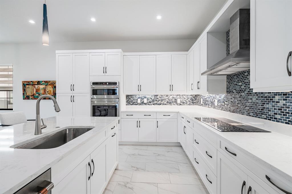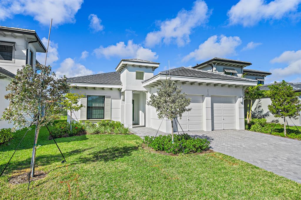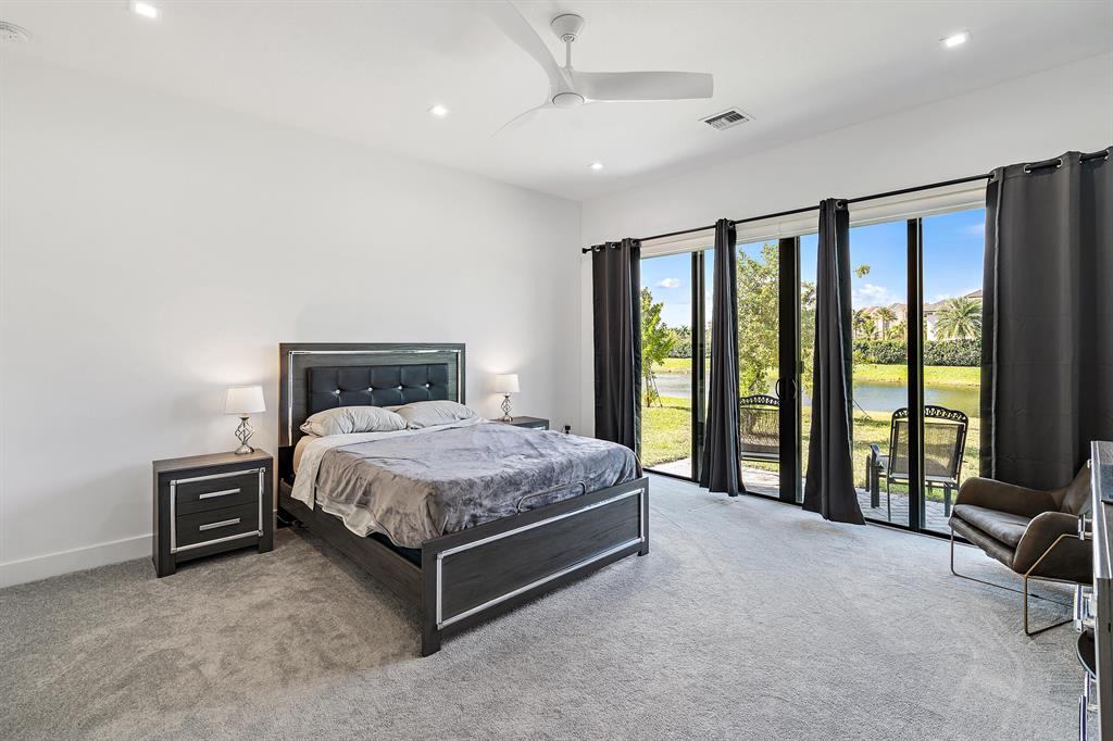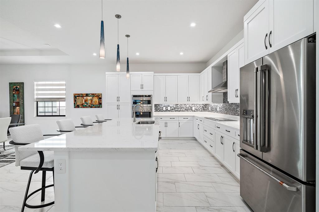 PRACTICALLY BRAND NEW! Enjoy all of the benefits of a new build without the wait. The seller spared no expense in upgrades when choosing the luxury finishes to this 3 bedroom, 2.5 bathroom CAYMAN model with a water view. The modern, sleek design will delight you! Large entryway with an open concept layout and 10 foot ceilings throughout. The beautiful kitchen includes quartz countertops, white shaker cabinets, GE Cafe appliances, induction cooktop, oven with built-in microwave and a huge kitchen island. Upgraded lighting throughout, with designer modern light fixtures and Modern Forms Fans (wifi enabled). Bandalux blinds in the living area. The oversized master bedroom includes his and hers walk-in closets, dual vanities, luxury sink tub and frameless shower...