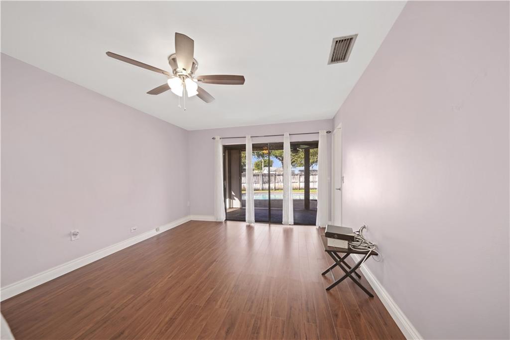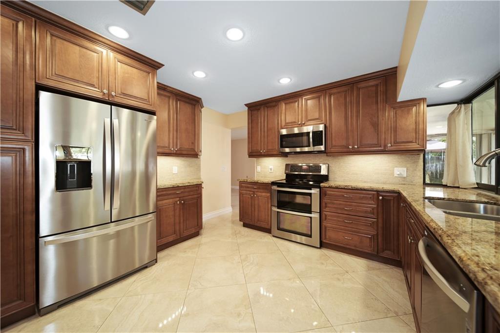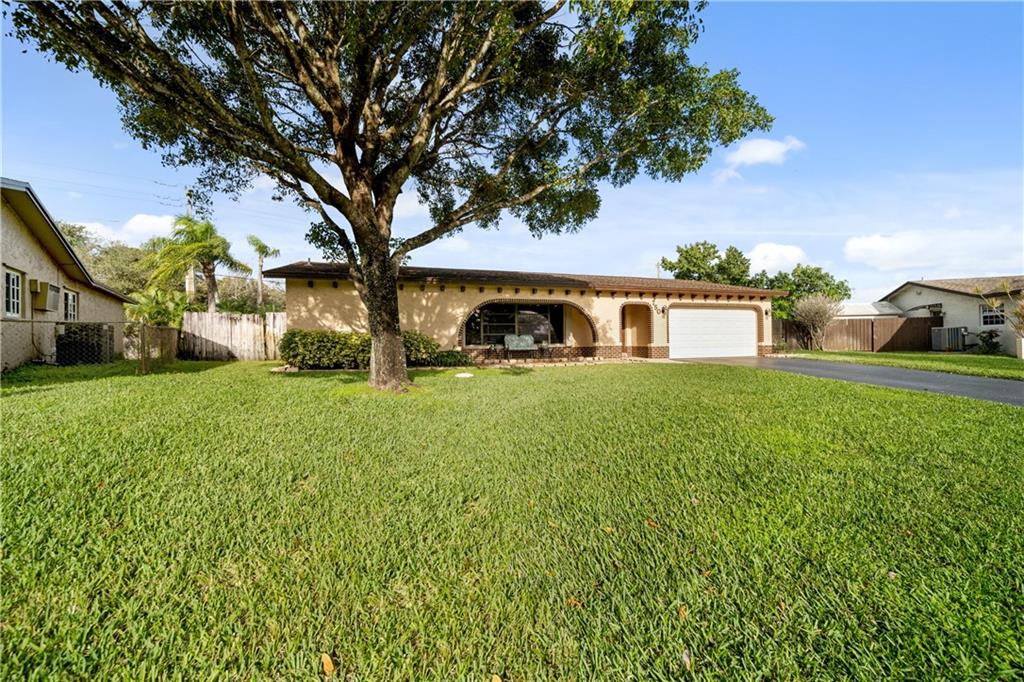 Stunning 4bdrm. 2 bath one story home with a 2 car garage & pool in beautiful Pembroke Pines. This home has been elegantly remodeled with custom wood cabinetry in the kitchen & bathrooms, all soft close and pull out drawers. The split floorplan has room to roam with the kitchen in the heart of the home. Rooms include a formal living room, family room and dining room. The primary suite has double sinks, a separate vanity and a walk-in closet. Sliding glass doors from the primary suite, family room and dining room all open up to the covered patio & pool area. Huge shed and attached 2 car garage allows for ample storage. This property is on a large pie shaped lot. You will love the flow and functionality of this home.