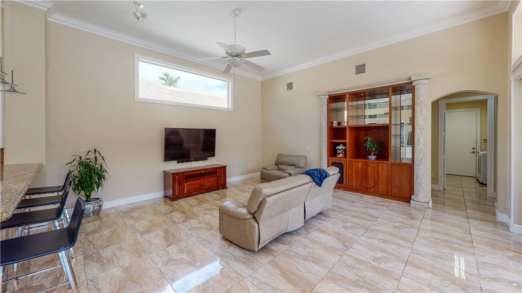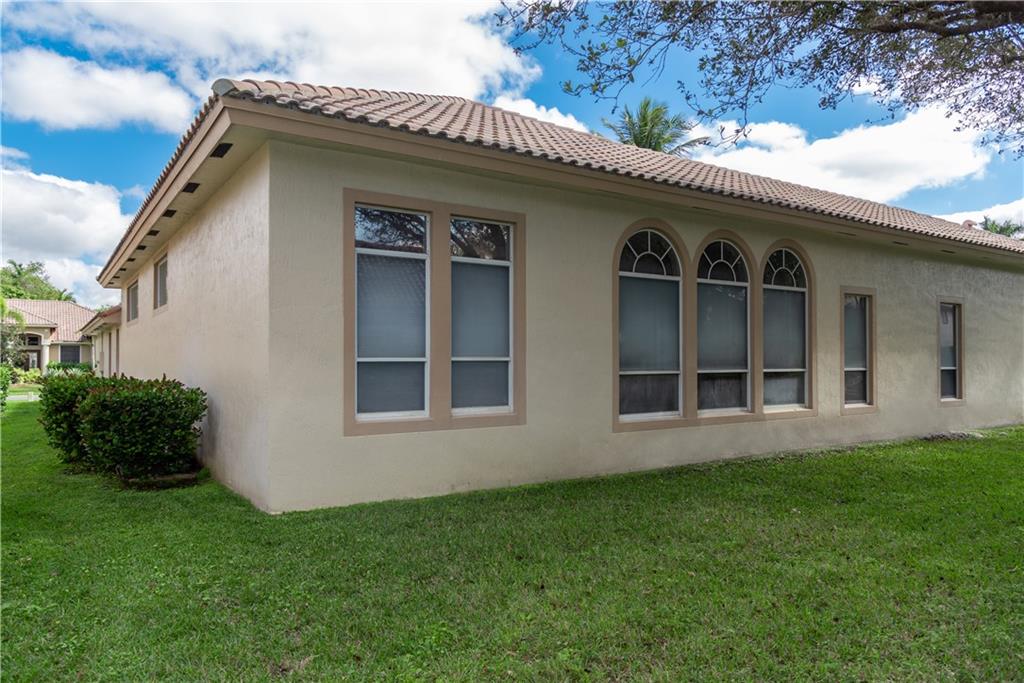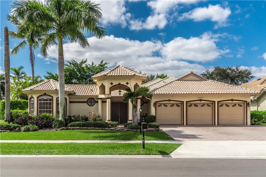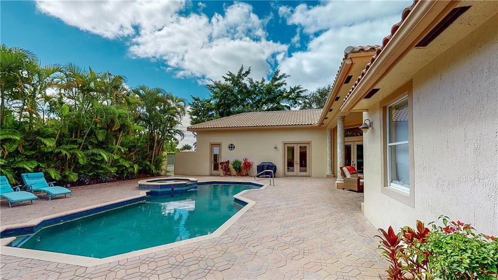 Rare Gorgeous Boca Falls courtyard home with a pool and guest house. This home is located on a corner lot with a privacy wall. The main house has 3 bedrooms, 3 bathrooms, and one-half bathroom. Murphy bed and built-in desk in one of the bedrooms. The guest house features a large bedroom and a full bathroom. Split floorplan, master has two walking closets, master bathroom has two sinks, tub, and shower. Large pool area with built-in BBQ with a tropical feel. Boca Falls features a newly renovated clubhouse, a resort-style Olympic size pool, a kiddie pool, playground, a state-of-the-art fitness center, six tennis courts, a basketball court, and much more. Hurry, this one will not last!