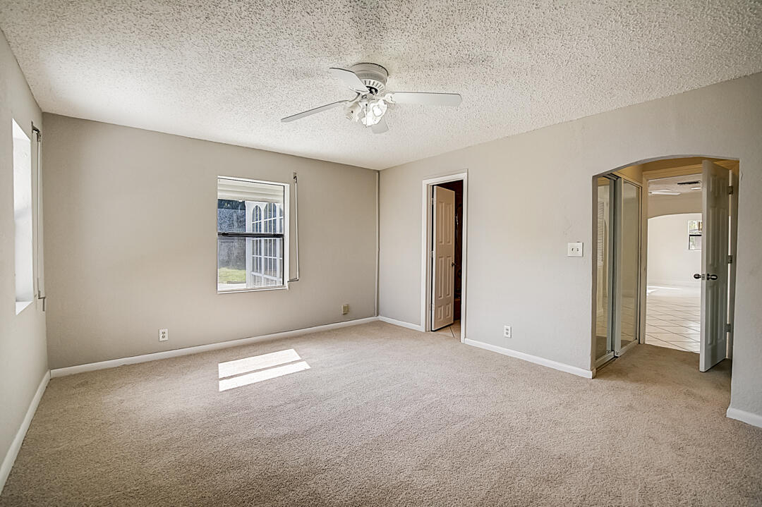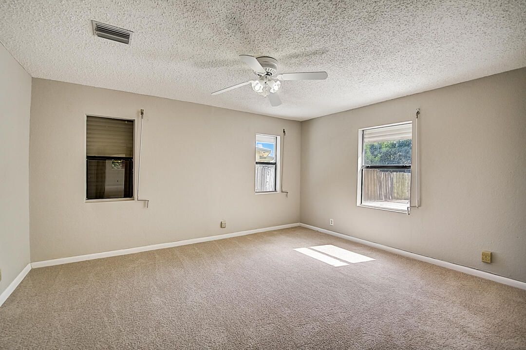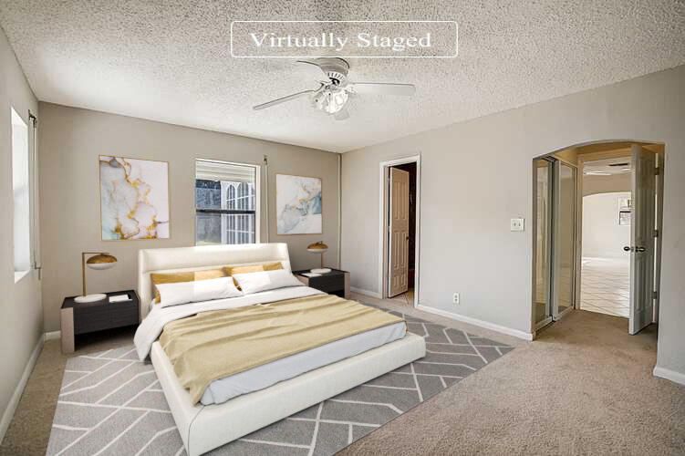 This charming 4 bedroom, 2 bathroom home is now on the market! The kitchen boasts generous counter space and a breakfast bar, making cooking and entertaining a delight. Discover a bright interior with neutral tile floors and plush carpet in all the right places. The main bedroom boasts a private ensuite and walk-in closet. Other bedrooms offer plush carpet, ceiling fans, and sizable closets. Relax with your favorite drink in the fenced in backyard with a patio, lush grass, and great potential for adding personal touches. Don't miss this incredible opportunity.