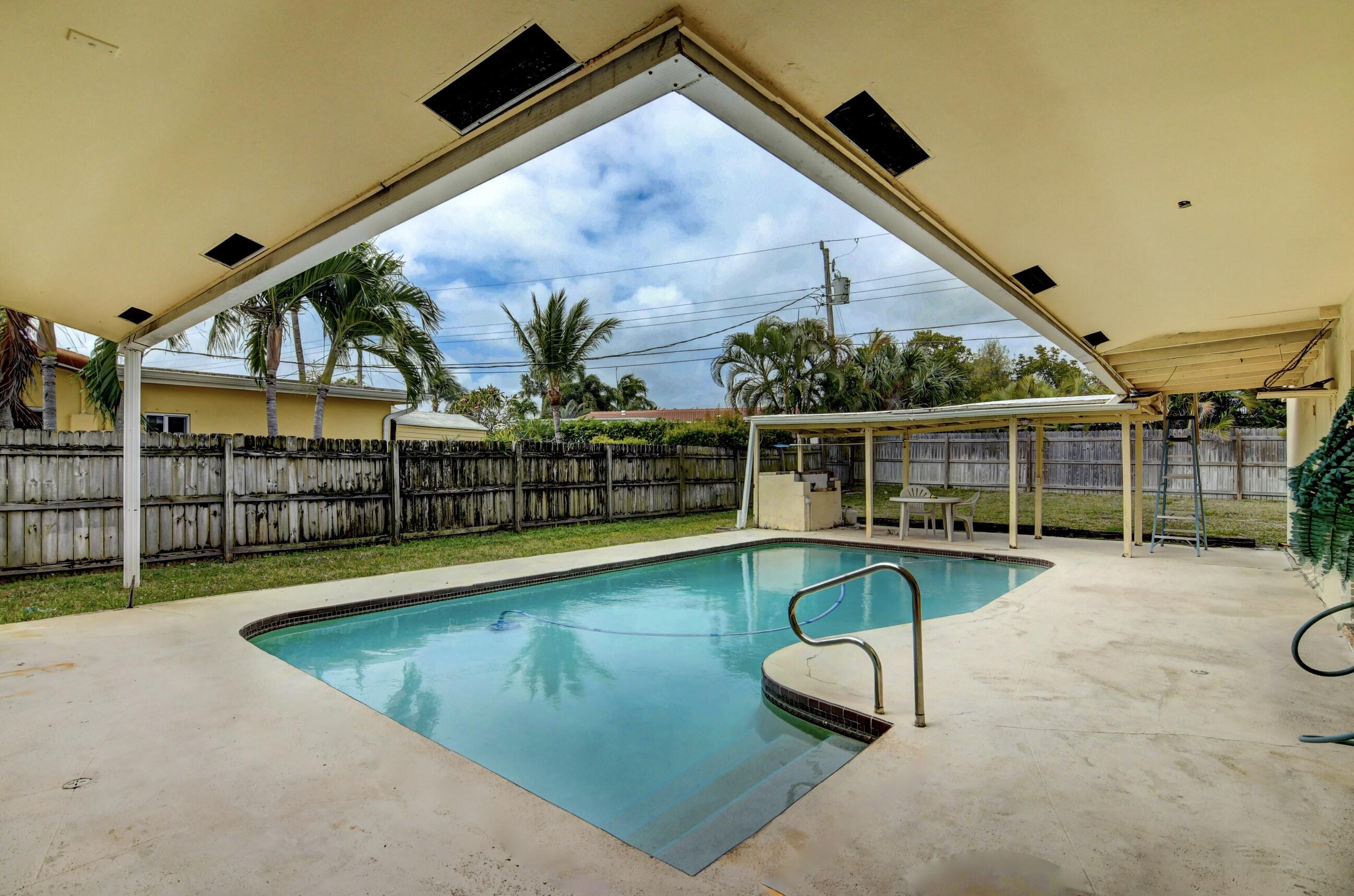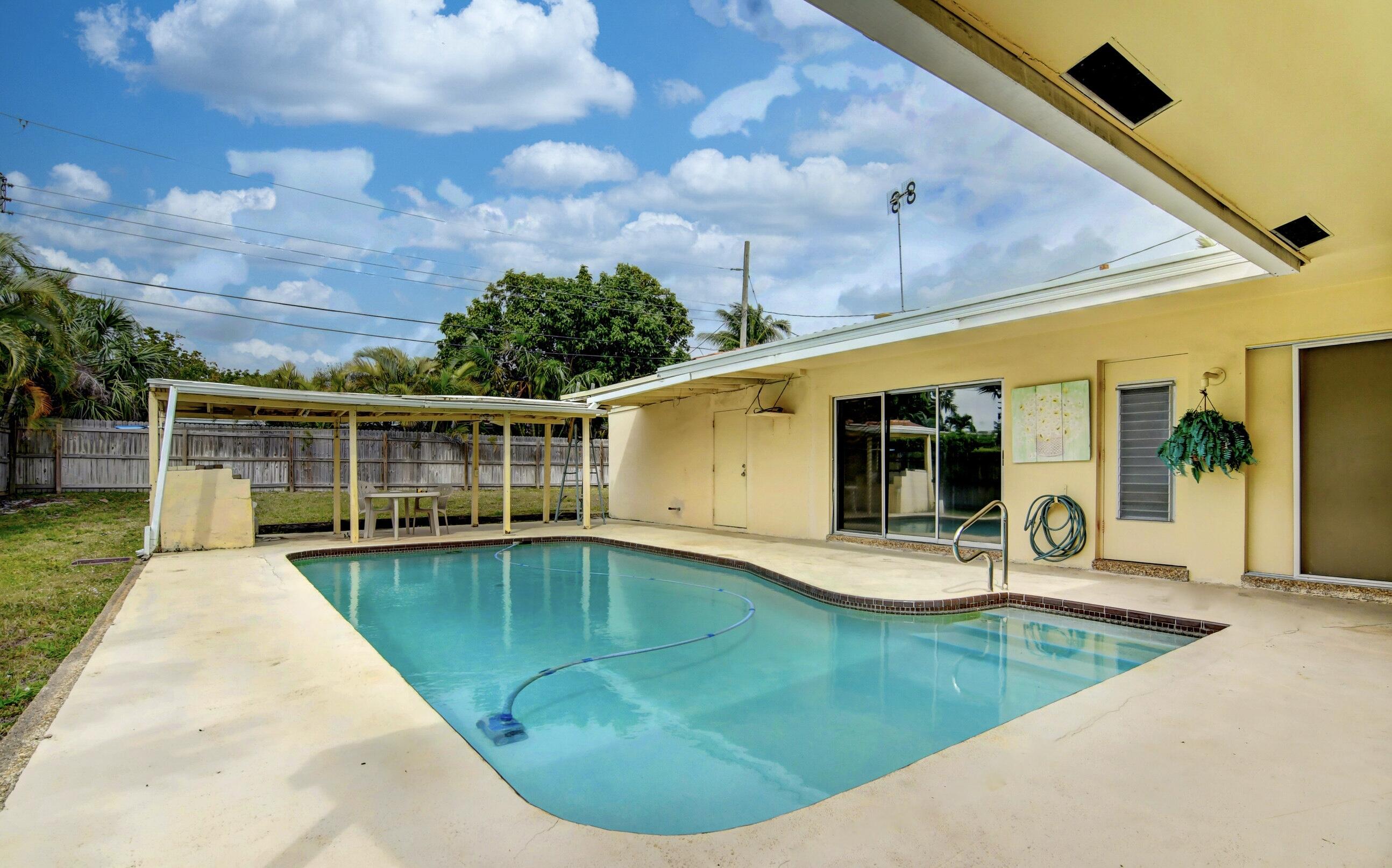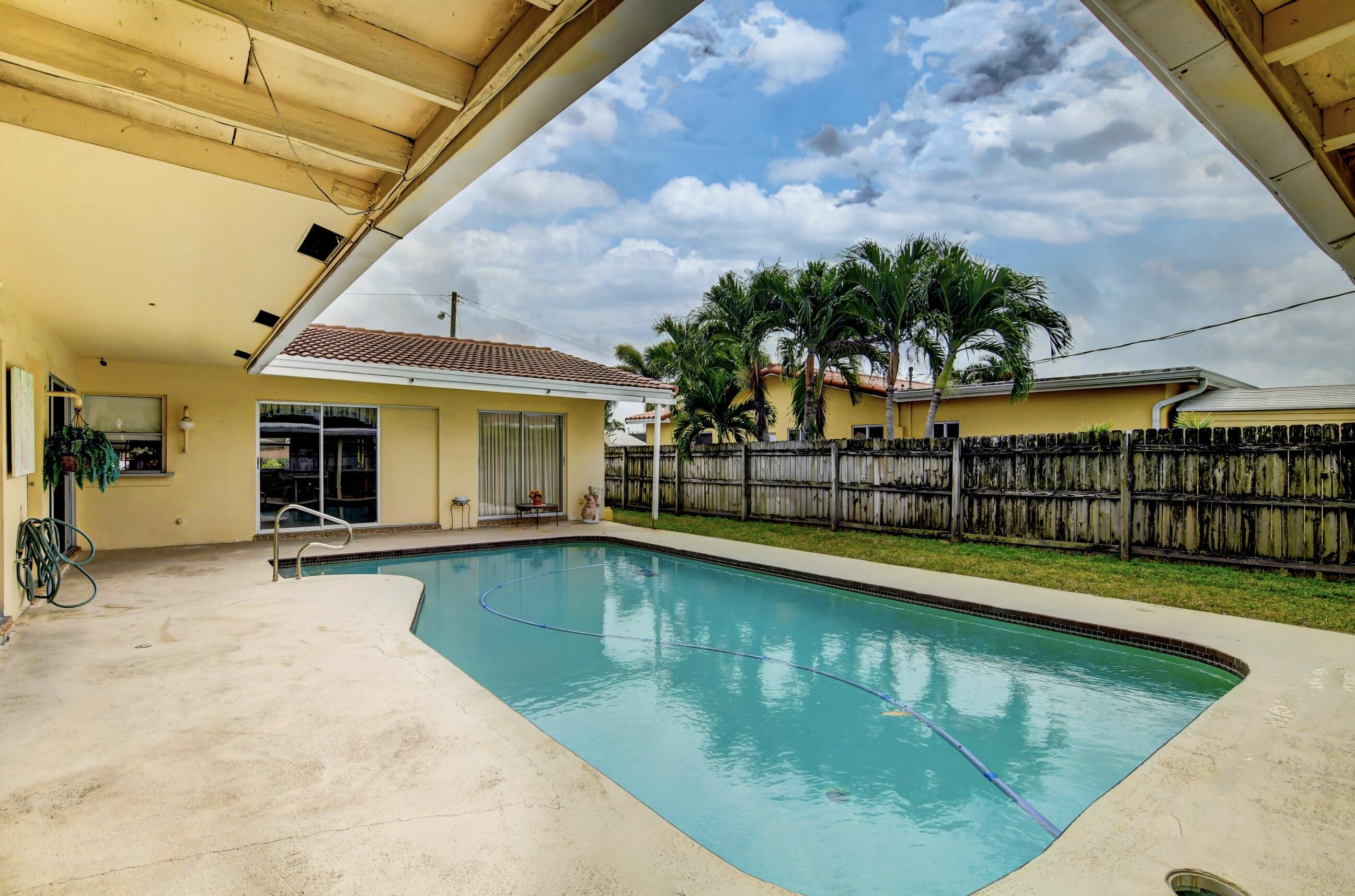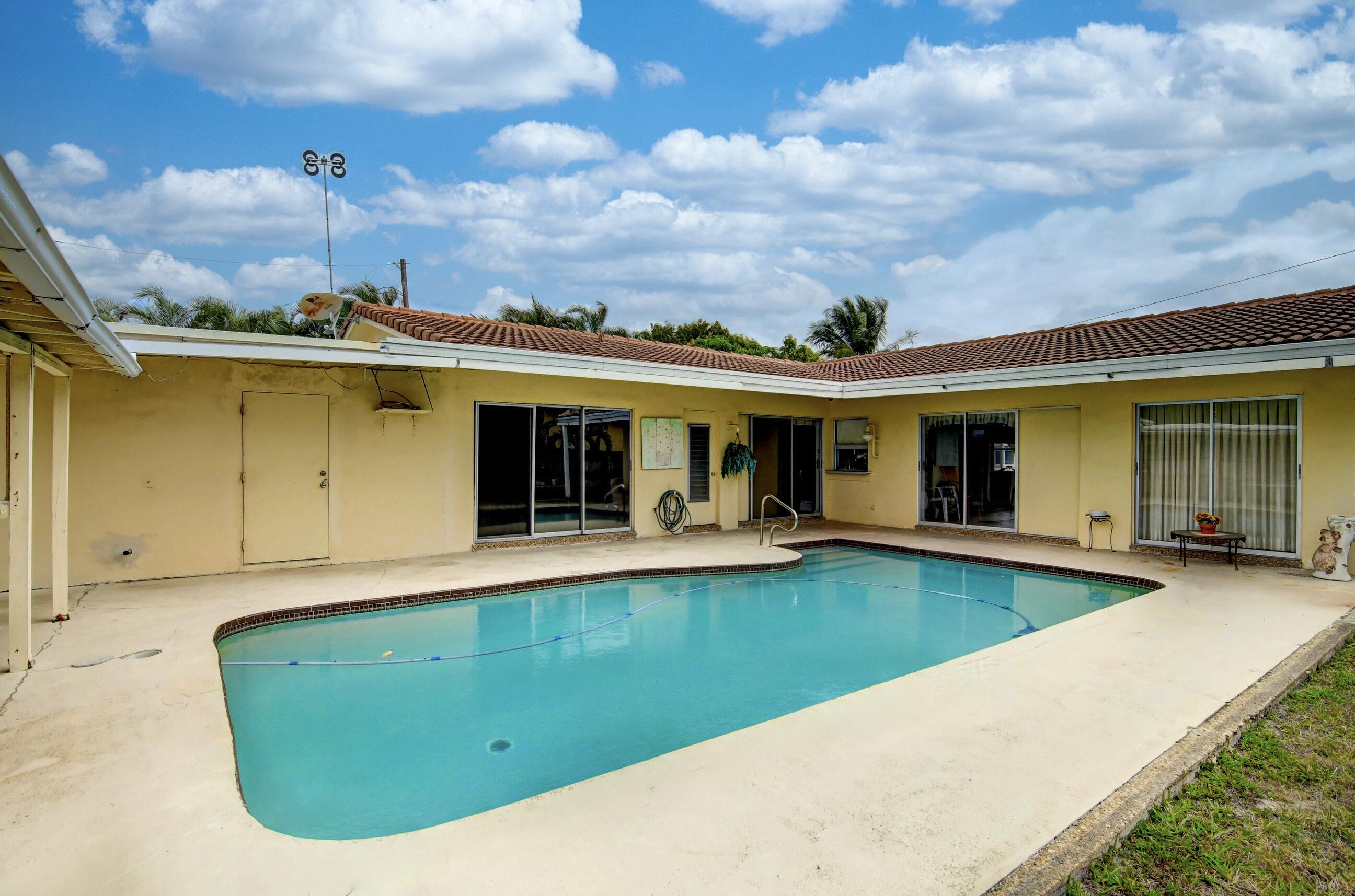 NO HOA...Rarely available pool home in the very desirable ''University Hill'' community in Boca Raton. Outstanding and spacious 4 bedrooms, 2 bathrooms, fenced-in, single-family pool home, with a circular driveway located in a quiet street in East Boca Raton. All four bedrooms are large and the home has a huge backyard. There is an additional large workspace that can be anything you want it to be (e.g., workshop, guest wing, entertainment room). The barrel tile roof is 14 years old and the AC handler & compressor are 2 years old. New pool pump and pool sweeper. The garage has been converted into a large family room/den. The home is minutes to the beach, shopping, restaurants, Mizner Park and I95, with A-rated schools and local parks.
