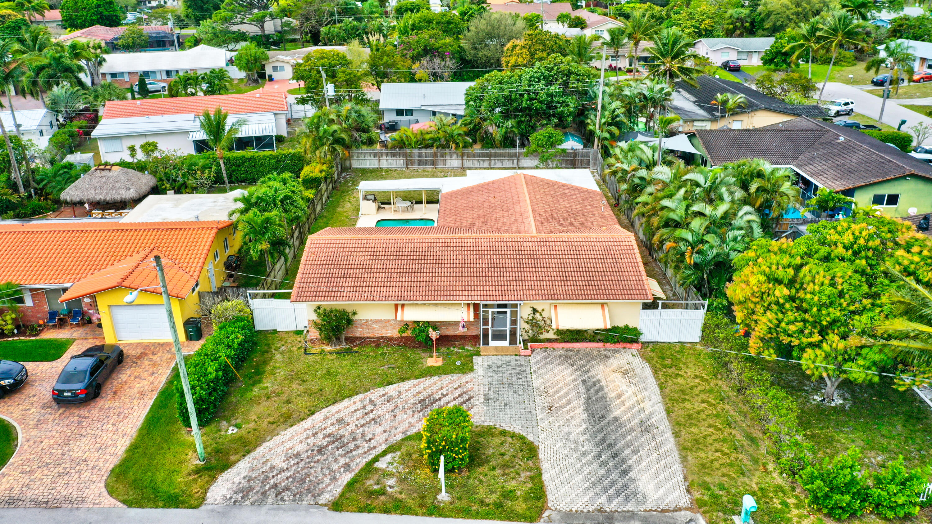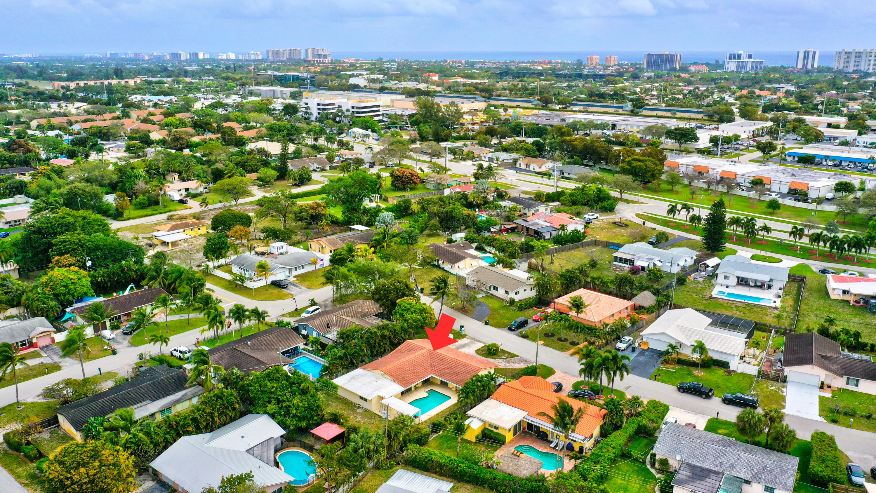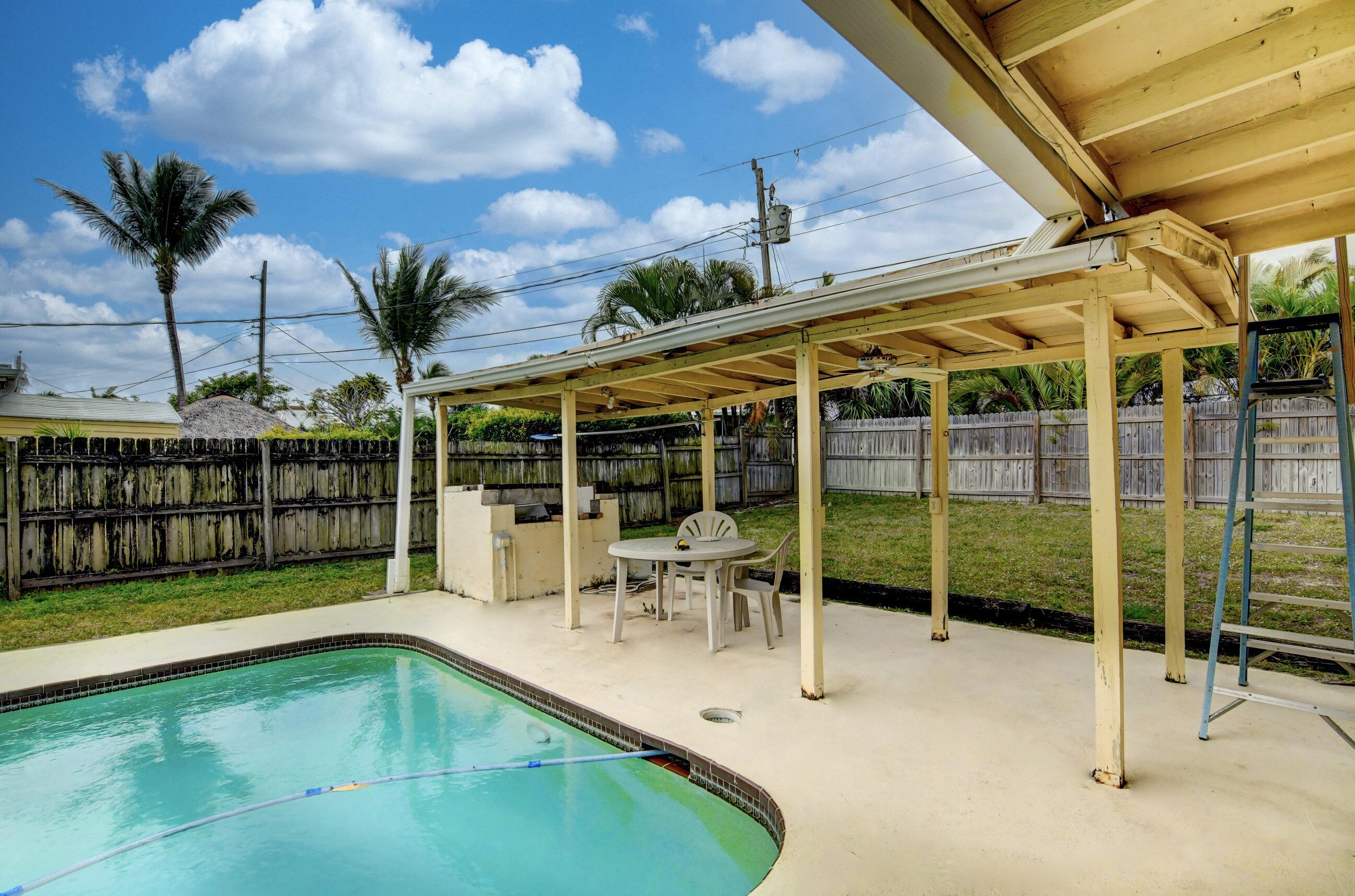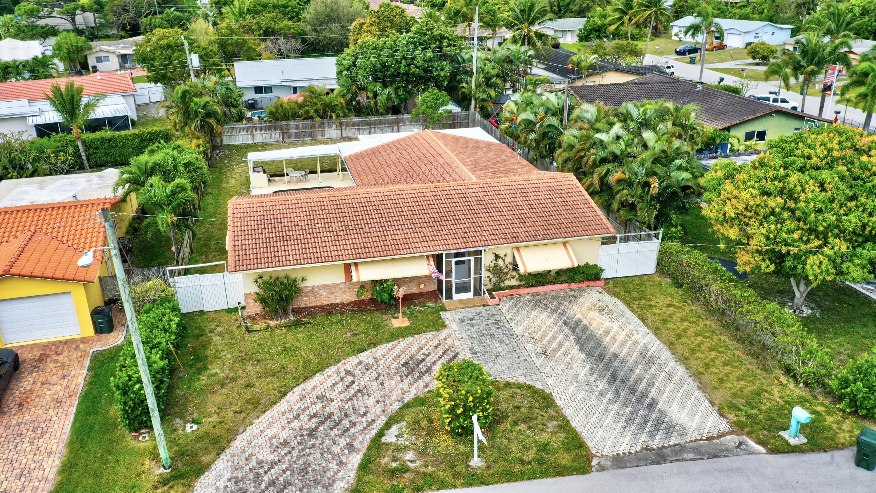 NO HOA...Rarely available pool home in the very desirable ''University Hill'' community in Boca Raton. Outstanding and spacious 4 bedrooms, 2 bathrooms, fenced-in, single-family pool home, with a circular driveway located in a quiet street in East Boca Raton. All four bedrooms are large and the home has a huge backyard. There is an additional large workspace that can be anything you want it to be (e.g., workshop, guest wing, entertainment room). The barrel tile roof is 14 years old and the AC handler & compressor are 2 years old. New pool pump and pool sweeper. The garage has been converted into a large family room/den. The home is minutes to the beach, shopping, restaurants, Mizner Park and I95, with A-rated schools and local parks.