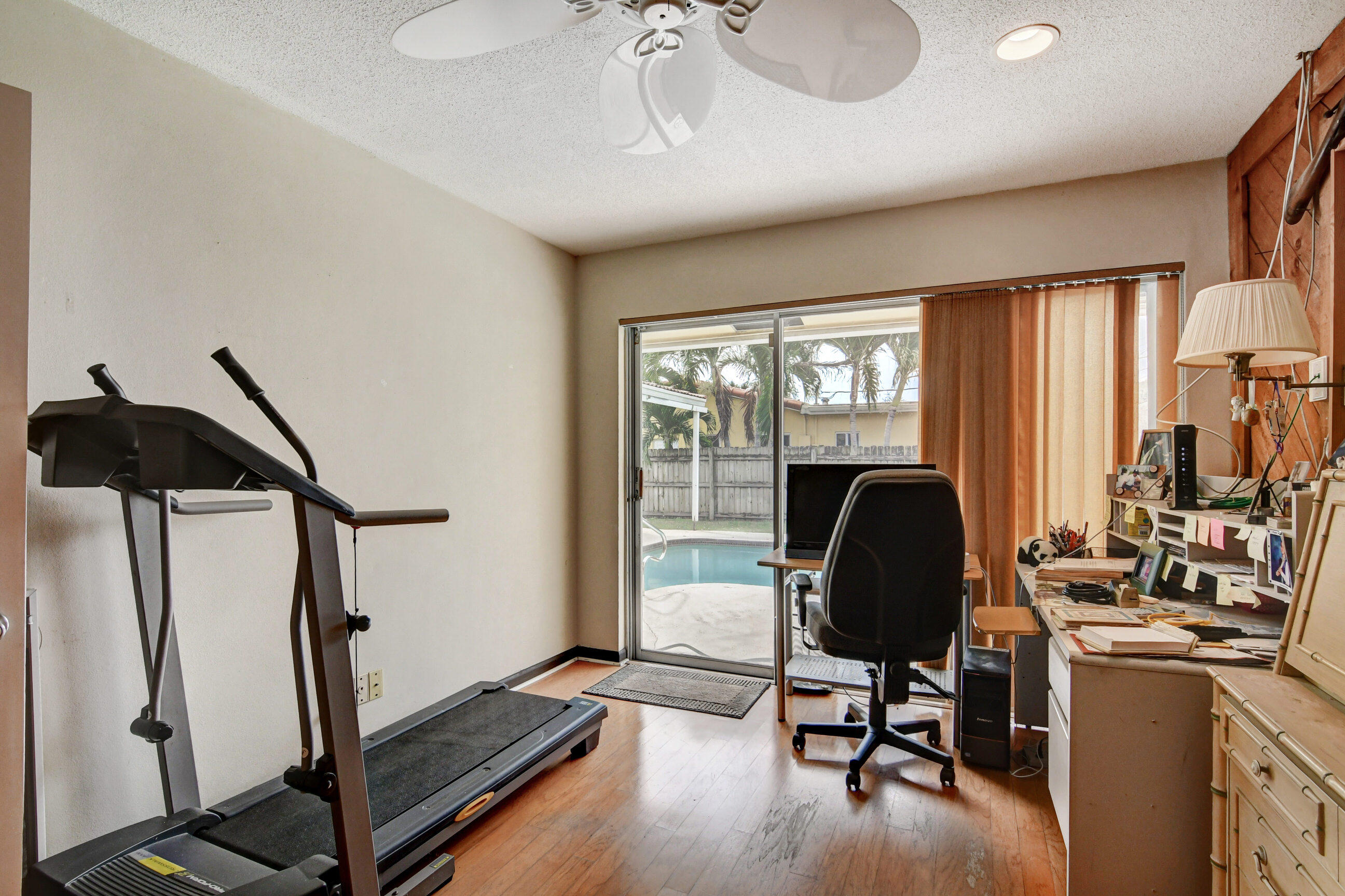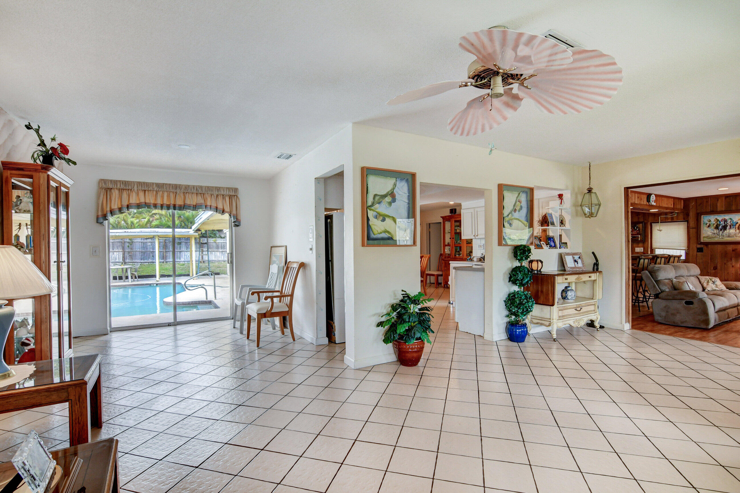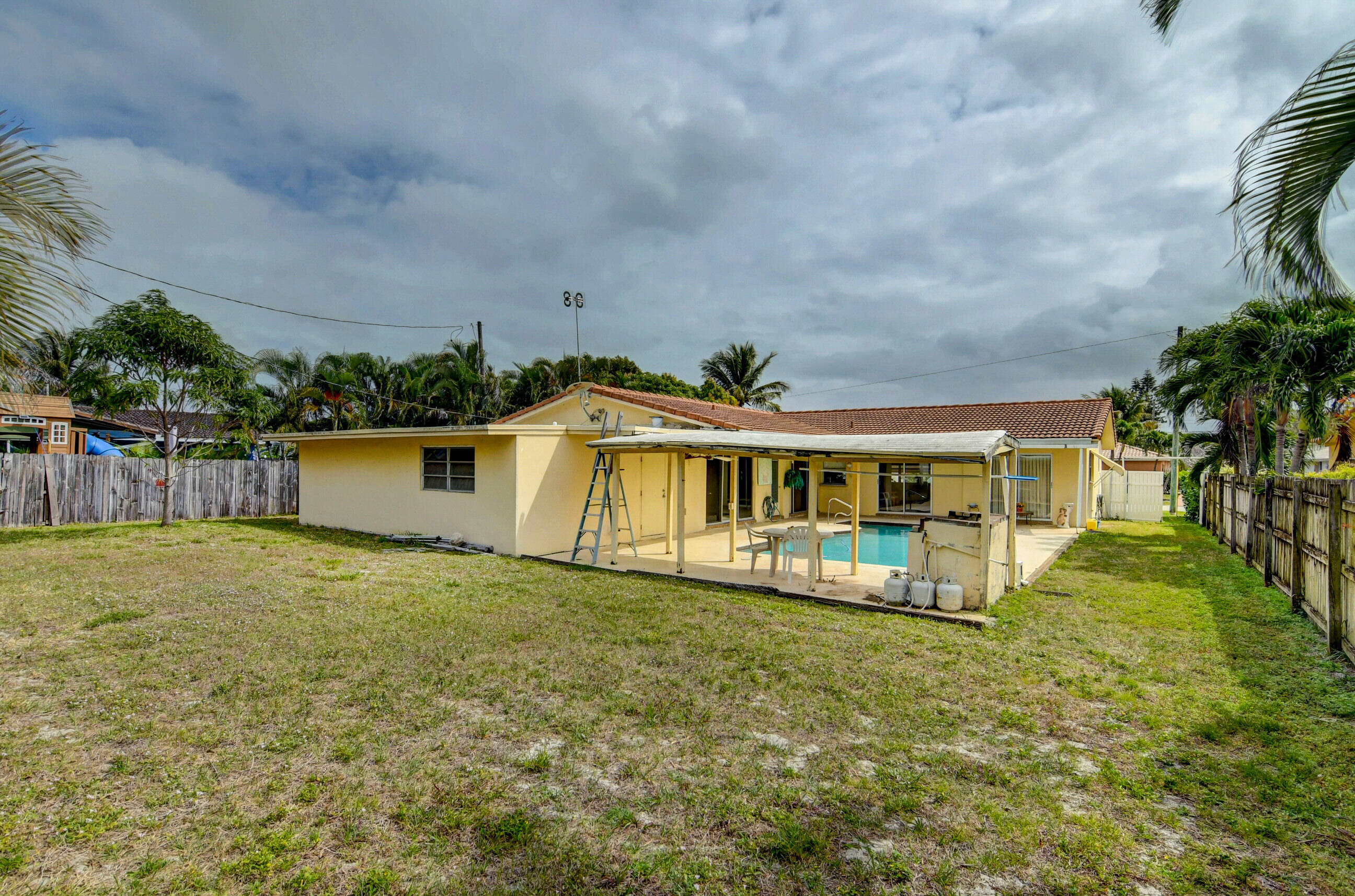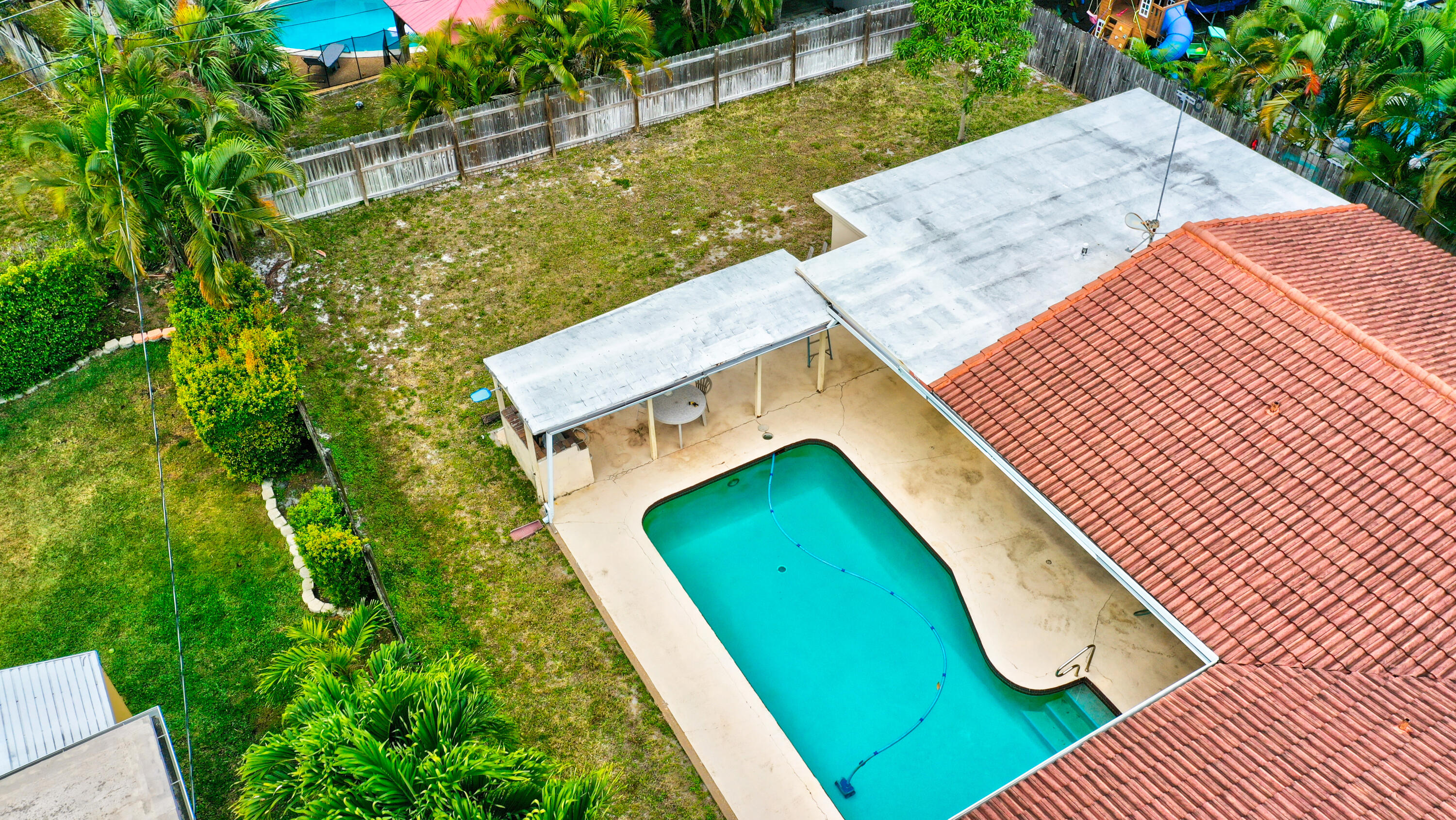 NO HOA...Rarely available pool home in the very desirable ''University Hill'' community in Boca Raton. Outstanding and spacious 4 bedrooms, 2 bathrooms, fenced-in, single-family pool home, with a circular driveway located in a quiet street in East Boca Raton. All four bedrooms are large and the home has a huge backyard. There is an additional large workspace that can be anything you want it to be (e.g., workshop, guest wing, entertainment room). The barrel tile roof is 14 years old and the AC handler & compressor are 2 years old. New pool pump and pool sweeper. The garage has been converted into a large family room/den. The home is minutes to the beach, shopping, restaurants, Mizner Park and I95, with A-rated schools and local parks.