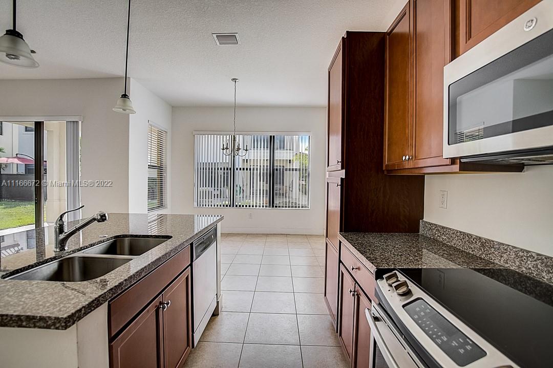 Built in 2017, this Hialeah two-story home offers granite countertops, and a two-car garage.