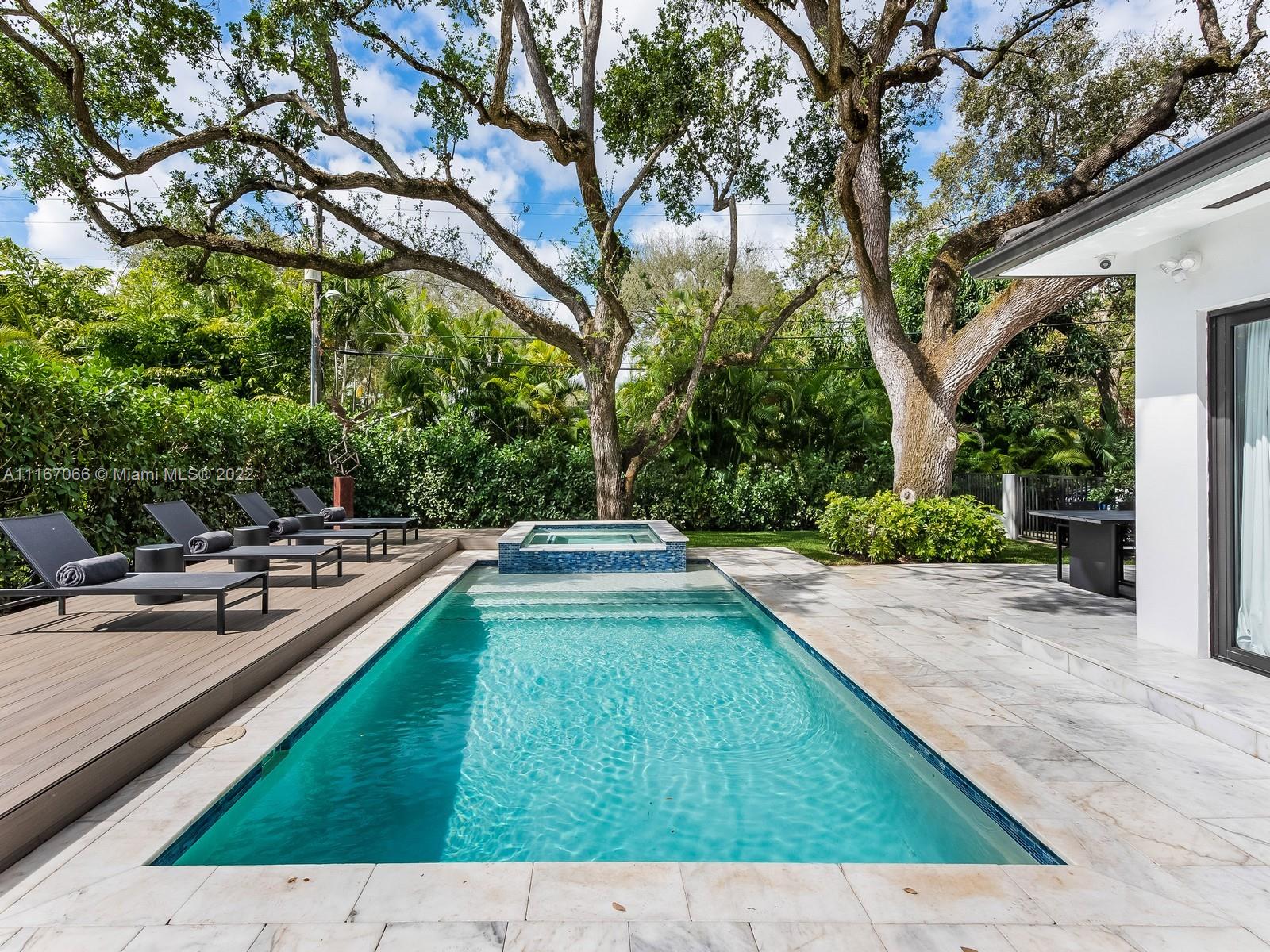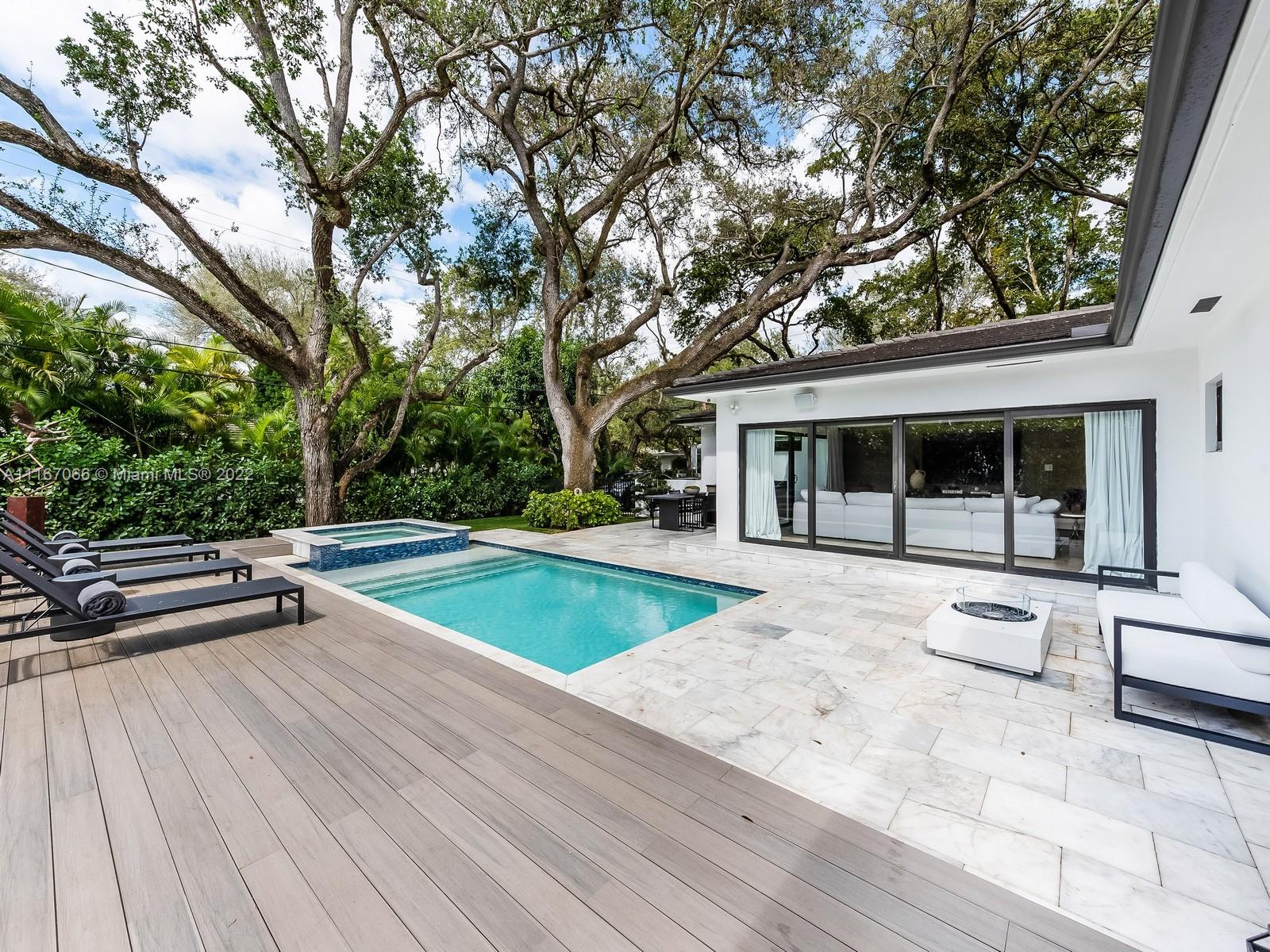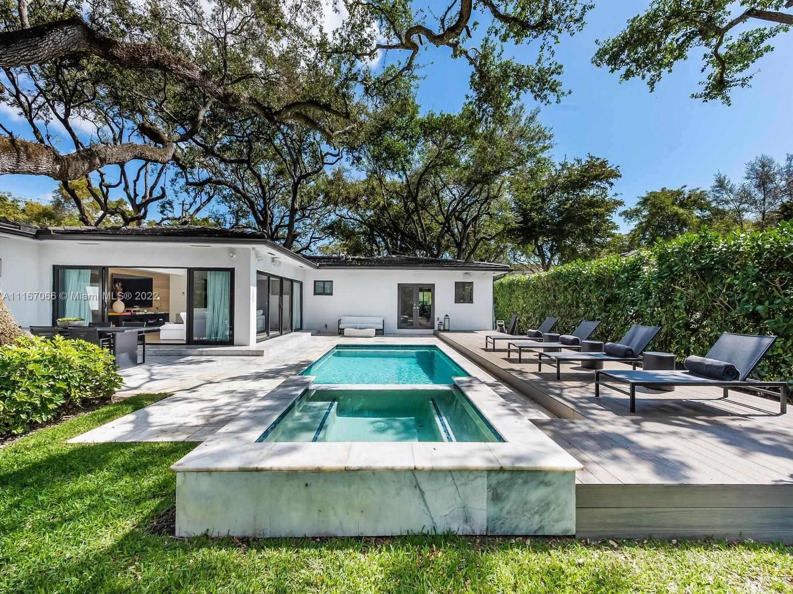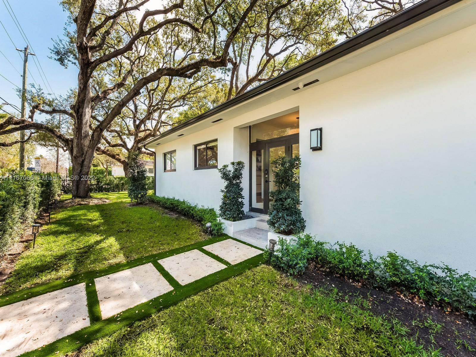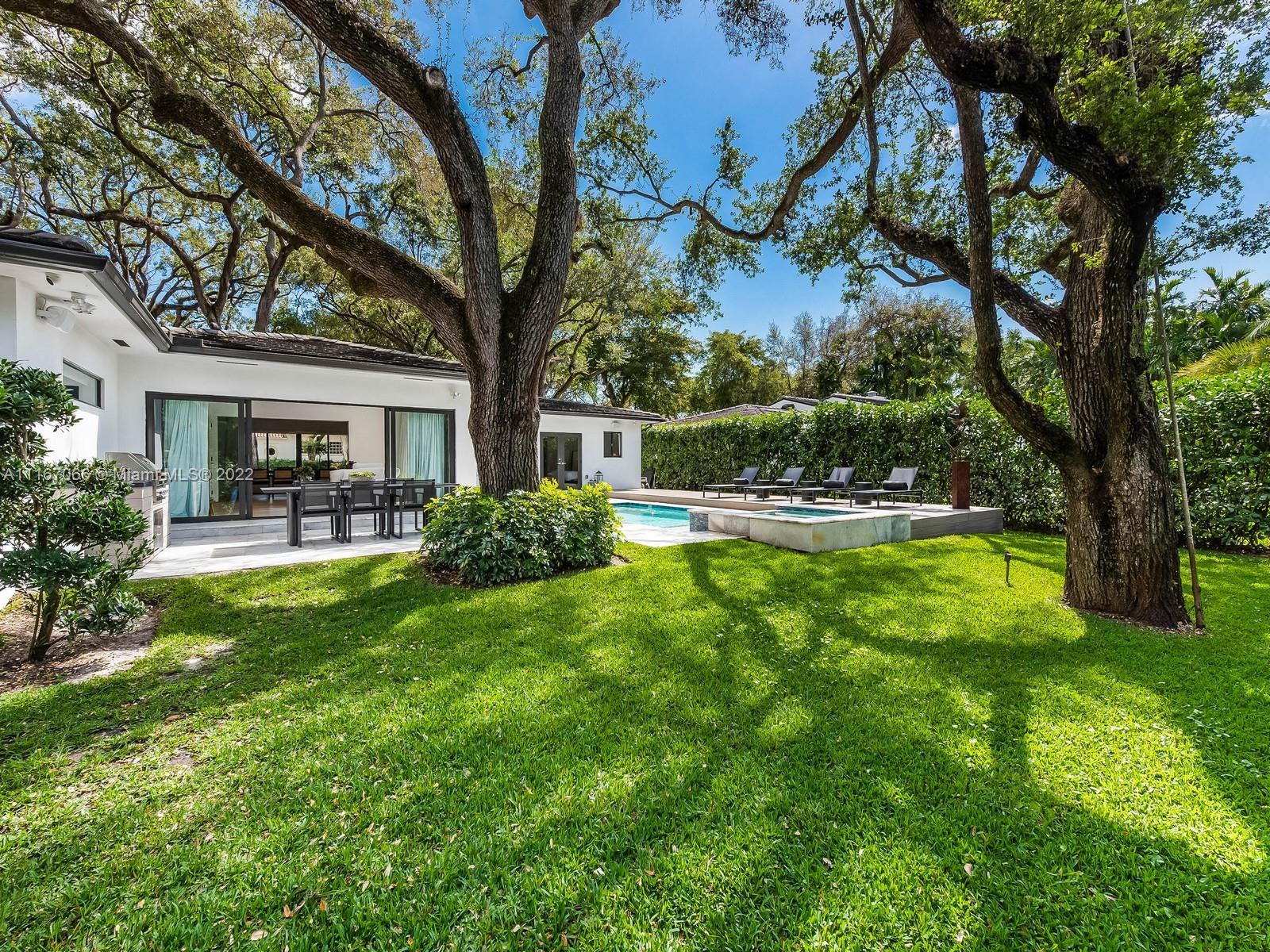 Welcome home to this completely remodeled designer 3 bedrooms plus 1 convertible room, corner lot house. Featuring open spaces full of natural light, volume ceilings & an open floor plan. Oversized living/family room overlooking the beautiful backyard & pool. Generous size bedrooms with engineer wood floors throughout. MIA-Cucina Italian Kitchen with Subzero, Bosch and top-of-the-line appliances. Fresh outdoor dinning & BBQ area under one of the many Oak trees this house owns. Walk out to the patio to an amazing pool that includes a waterfall and jacuzzi. This home features impact windows, doors & new AC systems. Smart home with Savant system, audio/video and alarm integrated. Walking distance to Biltmore Hotel and St Theresa School! Must see!