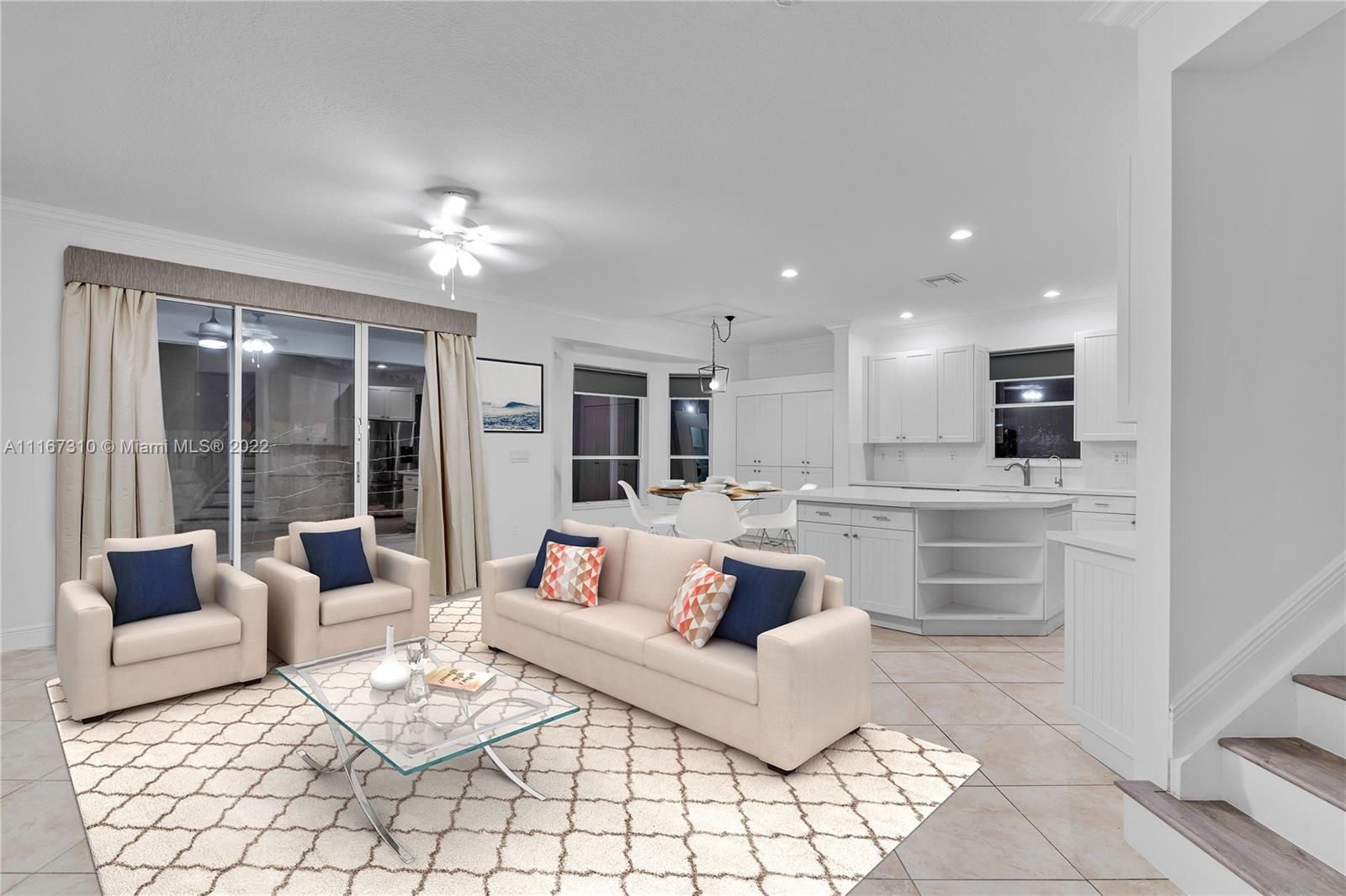 Beautiful updated home with a modern theme ready to move in featuring 4 bedrooms, 3 1/2 baths, and a 3 car garage on a quiet street in Pembroke Falls. This bright sunlit home features vaulted ceilings with an open living/dining area, a renovated kitchen with quartz countertops, and new SS appliances. Brand new light fixtures, porcelain tile floors and updated bathrooms. Home features large master suite with his and her walk-in closets. Step outside to your own private oasis featuring a heated pool and beautiful palm trees. Located at Pembroke Falls, a gated community, with amenities such as: Club house, large heated pool, tennis courts, basketball courts, and a park. A+ school district. Close to shopping centers, restaurants and more.