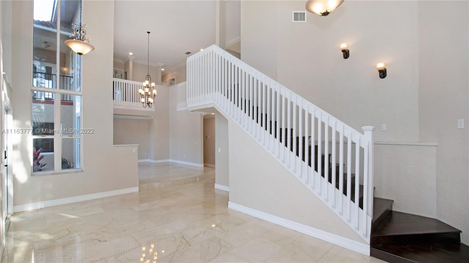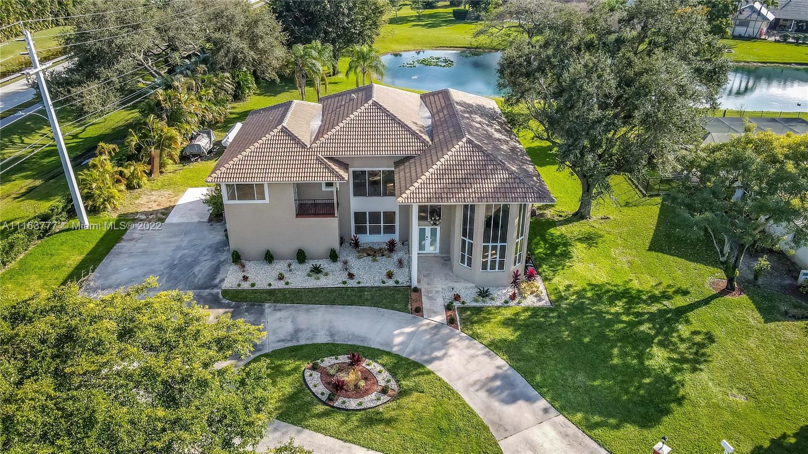 This beautifully remodeled 2 story single family home located in the highly desired community of Whispering Pines on over an acre of land and fantastic lake views could be your dream home. Home located on a Cul-de-sac features volume ceilings, 4 bedrooms, 3.5 bathrooms, marble floors throughout, new roof 2019, 2 AC units 2017 (4 tons each), 2 hot water heaters 2017, 9 impact glass doors installed in 2020, huge pool 20x40 with separate jacuzzi tub, over 2,000 sq ft of brand new travertine pool deck, brand new diamond brite in pool, brand new kitchen with quartz counters, top of the line stainless steel appliances, each bedroom has its own balcony, brand new landscaping with prewired of outdoor lighting, circular driveway, A+ rated schools, close to highways, shops and restaurants.