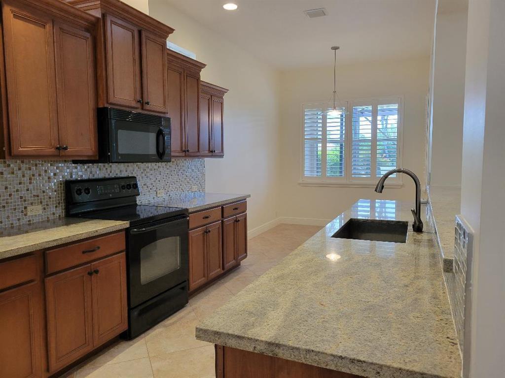 ALL NEW STAINLESS APPLIANCES TO BE INSTALLED JUNE 15th! Note the freshly painted exterior on this fantastic San Marco IV model in La Strada! The largest model, the interior boasts over 2200 square feet and includes 3 bedrooms, 2 baths plus a Den! This great room model has terrific flow with well proportioned spaces and large closets. Situated on the 9th hole of the Tradition Golf course, enjoy the entertainers paradise offering an oversized patio with screen enclosure plus a large landscaped yard! Engineered wood floors in all the bedrooms and Den, beautiful white plantation shutters throughout, and transitional countertops with backsplash. The huge laundry room provides additional wood cabinetry and storage options. Come enjoy the Luxury lifestyle at The Club at Ibis!