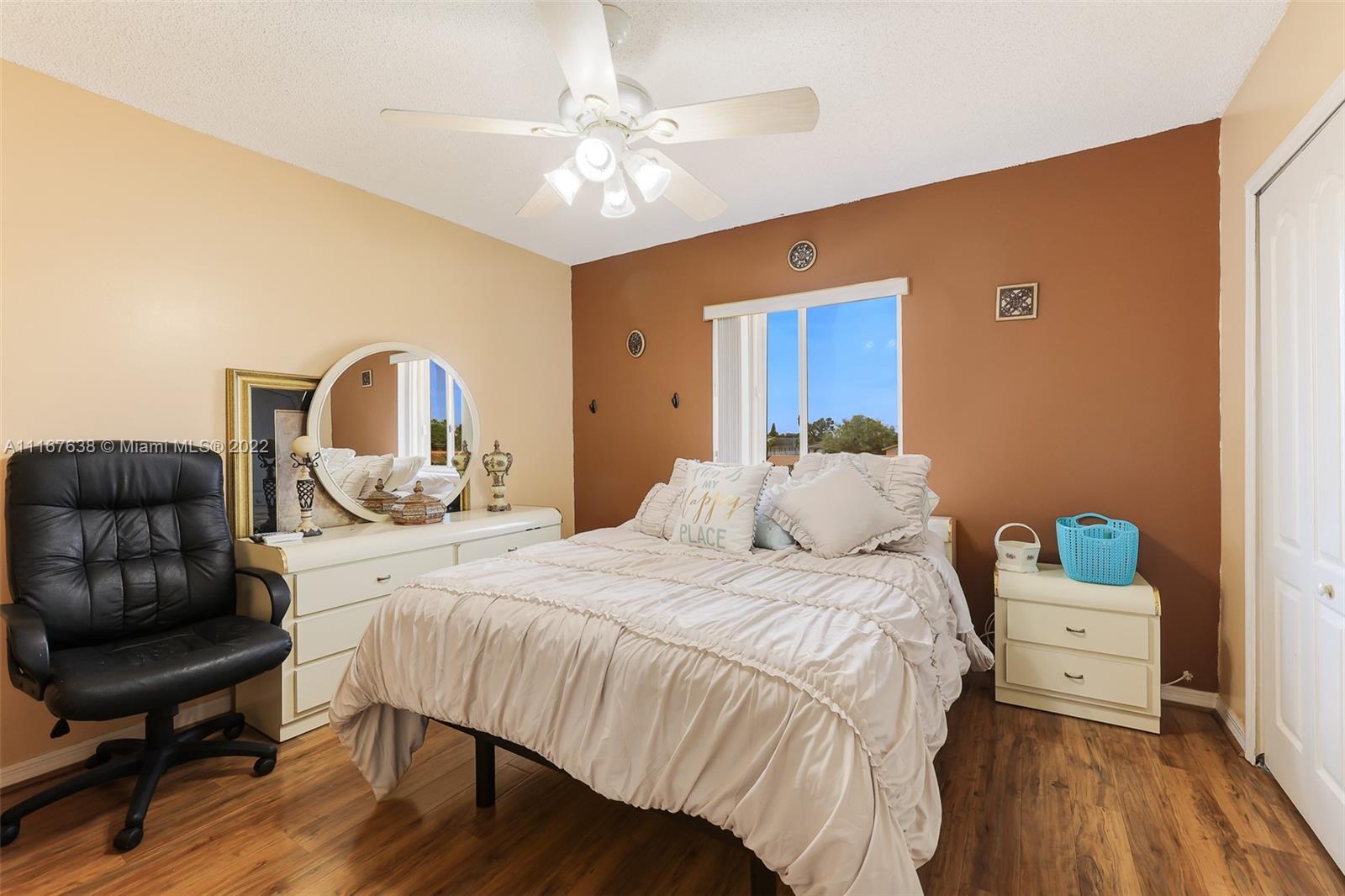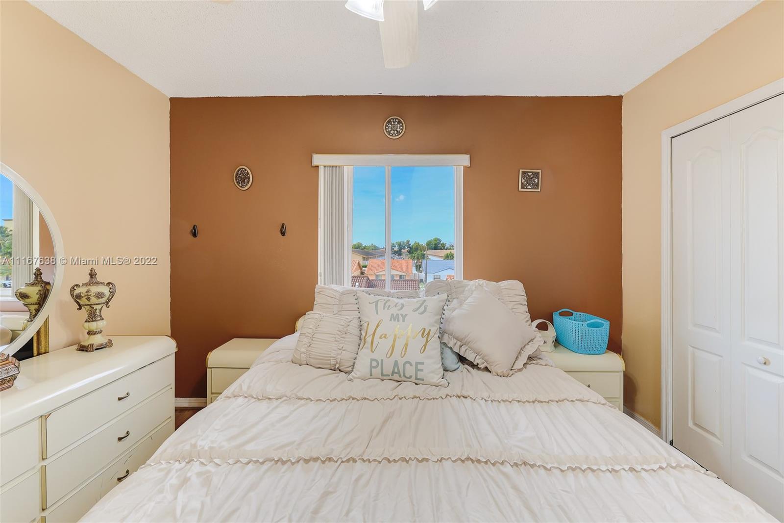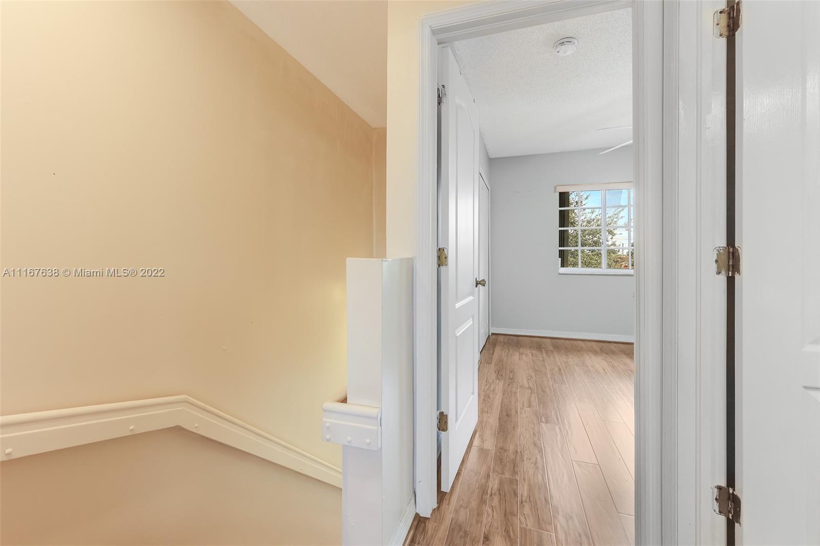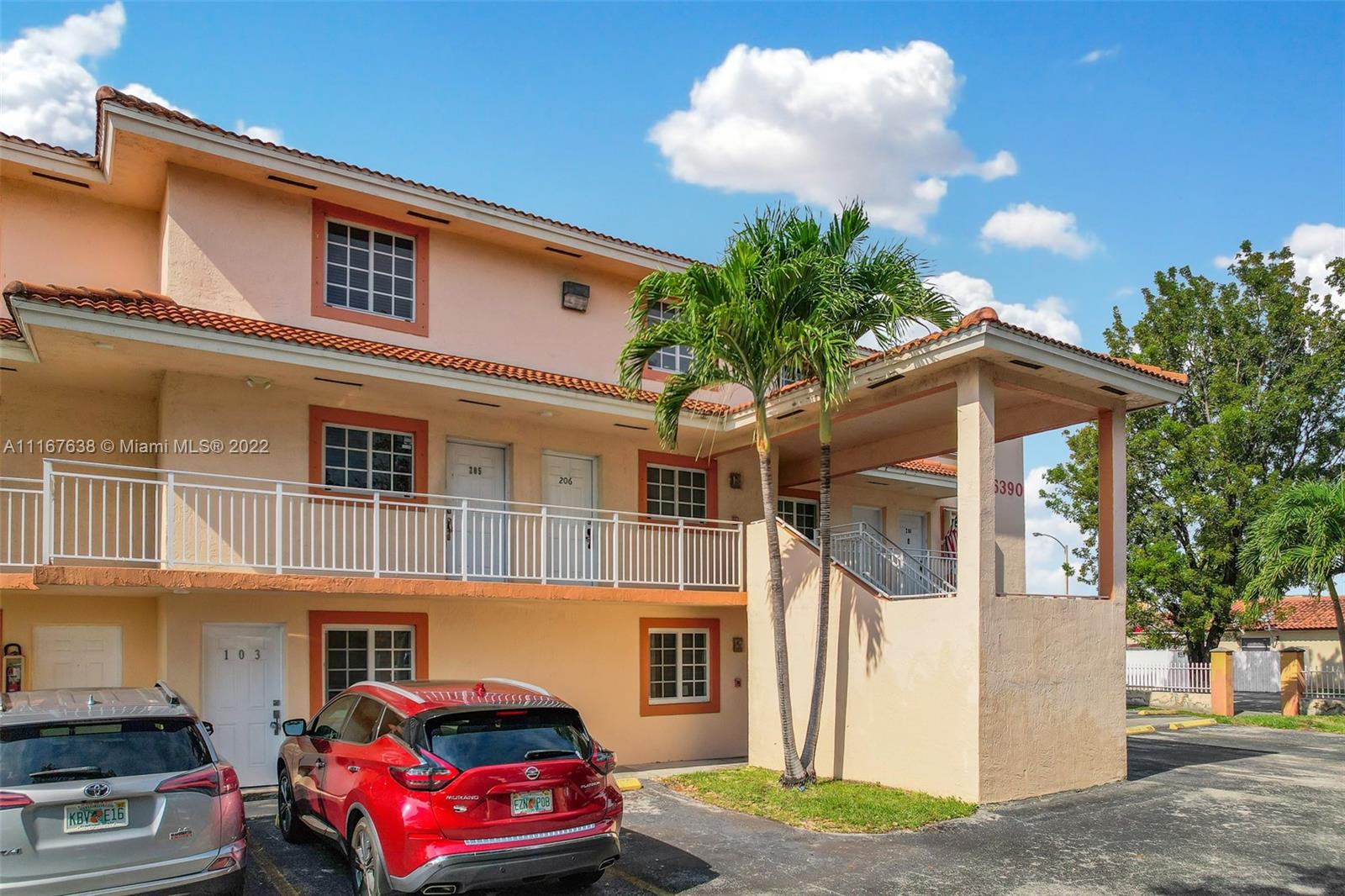Beautiful 2 story townhouse condo next to Palmetto hospital & 826 in the heart of Hialeah. Nice open floor plan with tile floor on main floor, wood floors on stairs and both bedrooms upstairs. Impact windows downstairs, accordion shutters upstairs, washer & dryer and unit comes with 2 parking spaces.