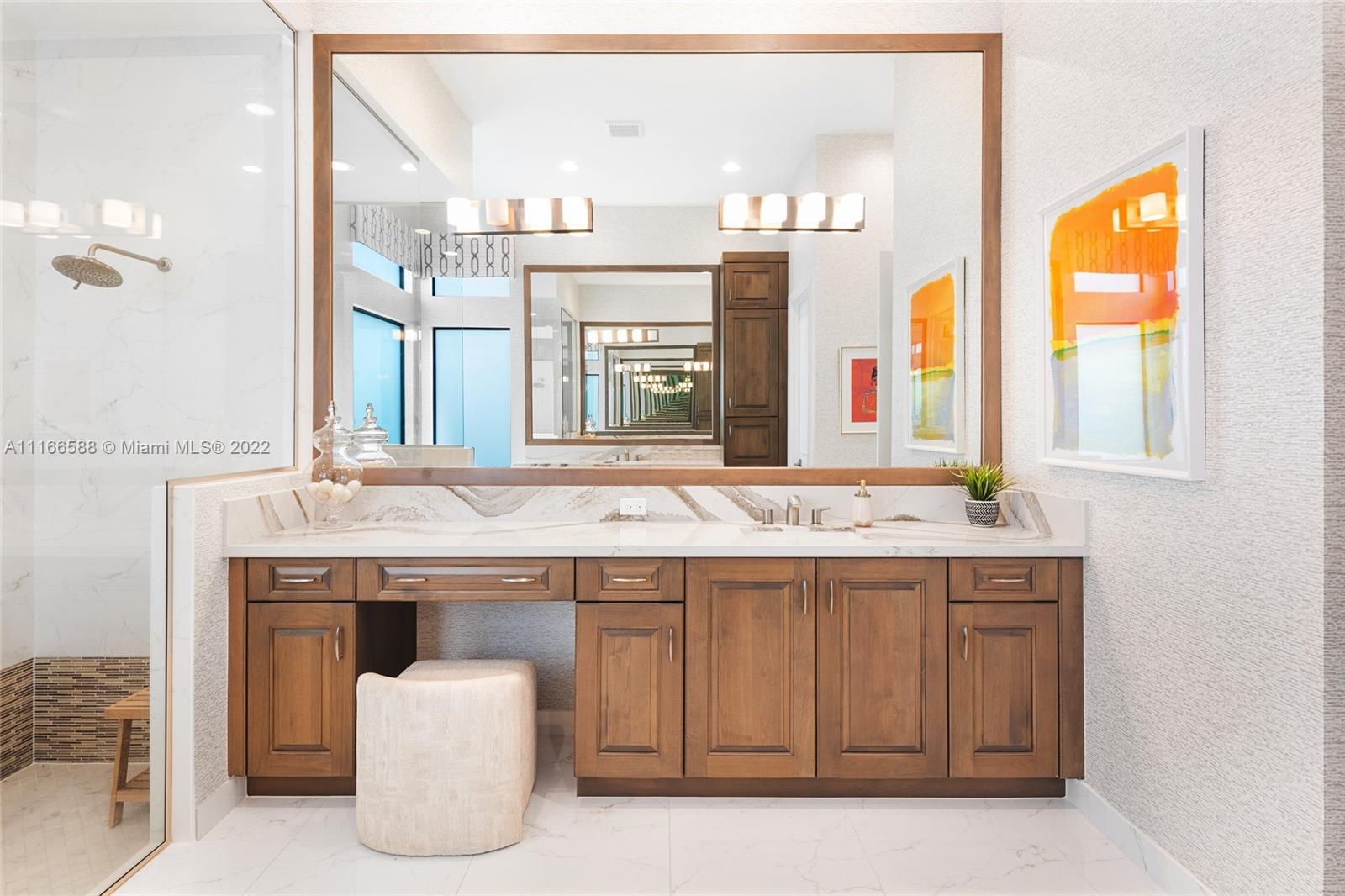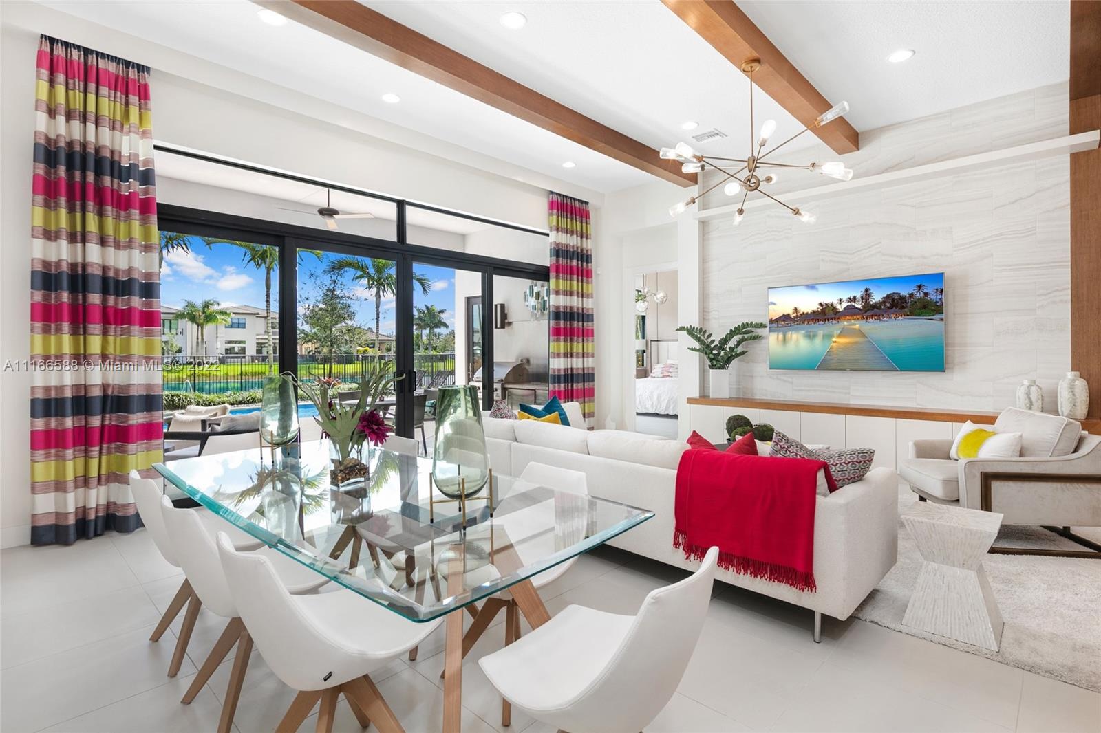 Step inside this fully furnished turnkey Vienna Grand model featuring a flow through design with 12’ ft ceilings leading out to your tranquil covered outdoor patio. Feel the eastern breeze as you relax in your tropical paradise. In this 4 bedroom home you get to enjoy the commodity of having your Master Bedroom suite downstairs with captivating pool and lake views. Including a second-floor private en-suite bedroom with a full bath, loft/media room and a private balcony. Located in the highly sought-after Boca Bridges community, luxury living is redefined offering a 27,000 sqft clubhouse complex that includes a restaurant with full service pool bar, game room, fitness center, tennis courts, pickleball, pools and more!