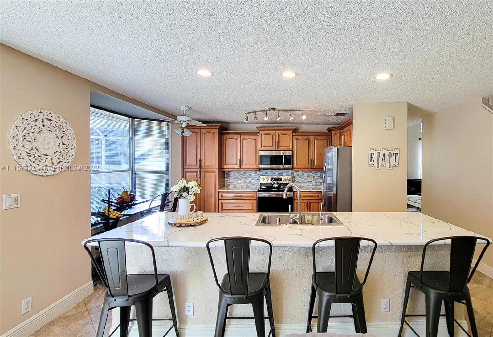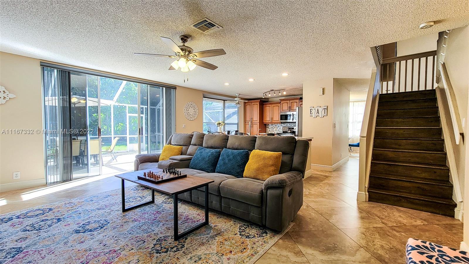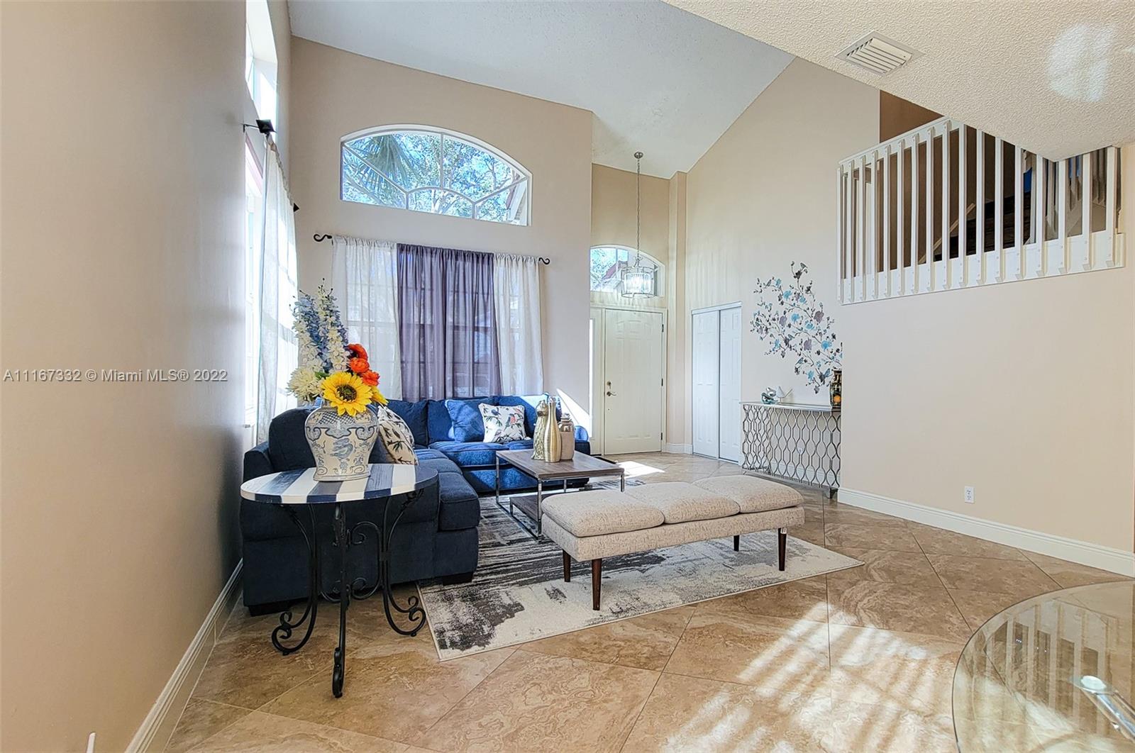 Rare Opportunity to buy a delightful and immaculate 4 bed 2.5 bath single-family home. The perfect blend of comfortable living and location. This home features a newer roof ( June 2019), newer AC High-Efficiency unit (April 2019), Hurricane Shutters, 2 car garage, and new pavers (2020). Beautiful kitchen w/center island, lots of cabinets. Stainless steel appliances. Half-Bath remodeled. Laundry room. Ceramic tile throughout the 1st floor, wood flooring on the second floor. Master bedroom upstairs features his/hers closets (LARGE walk-in), and a big bathroom with w/double sinks, separate tub & shower. 2nd bathroom was remodeled completely. Living room draperies don't convey. Walking distance to A+ Schools, Shopping & Dining. Low HOA fees. Community Pool & Landscaping. Make your offer today!