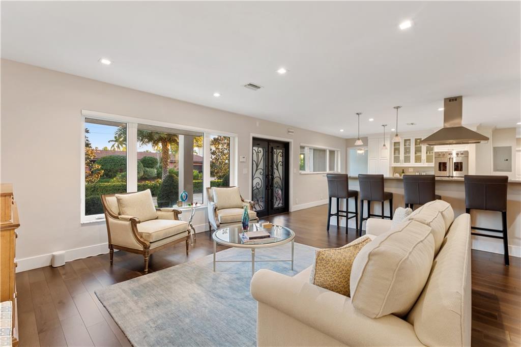 Stunning total renovation east of Bayview. 4BR/3BA open floor plan. Spectacular chef's kitchen with Subzero refrigerator, Viking double ovens, Thermador warming drawer and Miele dishwasher. Beautiful custom white cabinetry, natural stone quartzite countertops, counter seating and pantry. Walnut hardwood floors in main living areas. A luxurious primary bedroom and spa-like bath feature Carrera marble, Grohe fixtures, a jetted tub, rain shower and double sinks. Extensive home automation operates via app or Alexa voice control, including pool, thermostats, security systems, LED lighting, irrigation, water detection, garage and eero pro wifi. Impact windows and "whole house" generator ensure safety. Lush landscaping, marble pavers and salt-water pool ensure relaxation. A perfect Florida home!