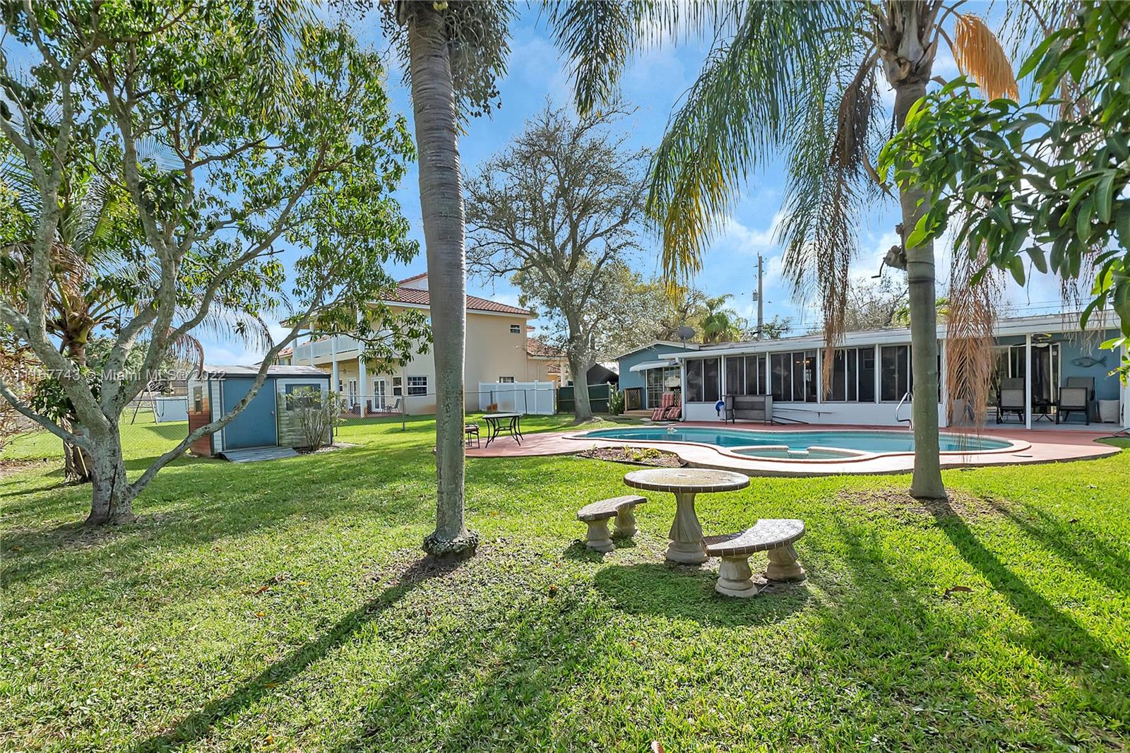 Amazing pool home in the heart of Cooper City sits on an oversized lot with a beautiful Golf Corse view. Extra-large circular driveway to fit plenty of cars. 4 full bedrooms and 3 full bathrooms. Excellent 3 way split floor plan with a double Master suite. one on each side of the home. Spacious formal living room, dining room, and family room areas. Huge kitchen with w/plenty of cabinet space and a tucked-away breakfast area that can be used as an office space. Huge backyard with a screened-in patio and beautiful Pool & Shed for extra storage. Great schools, close to shopping. Must see this won't last!