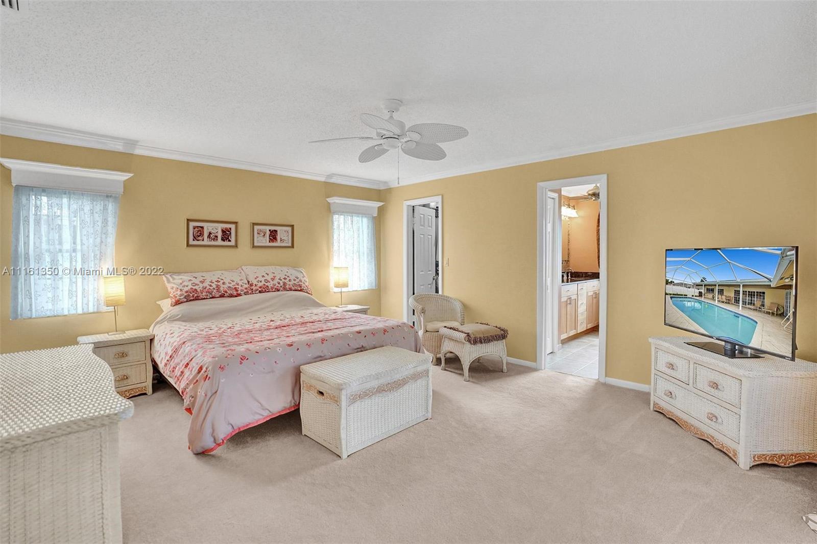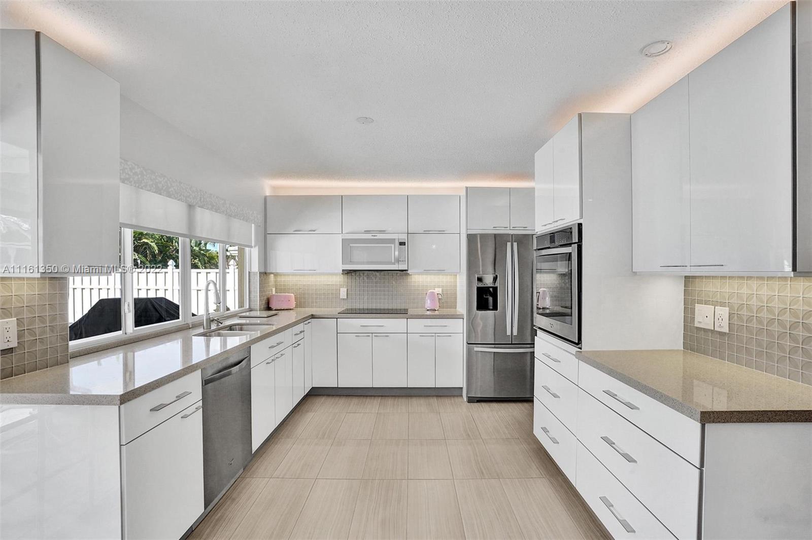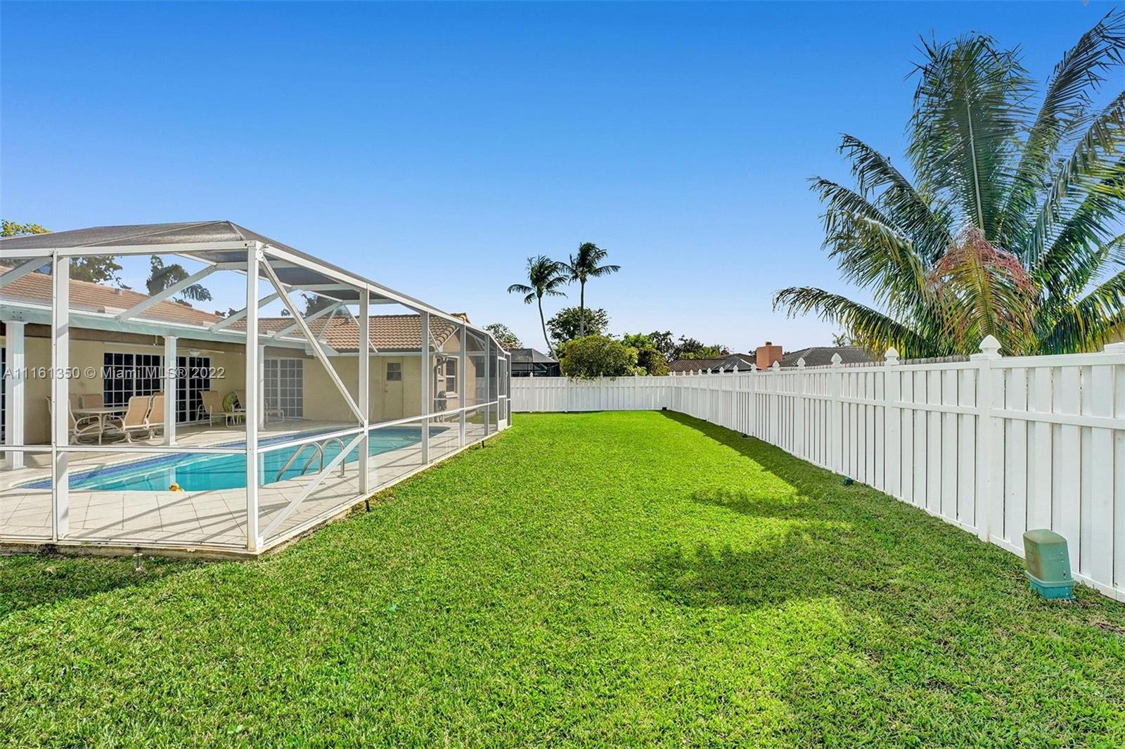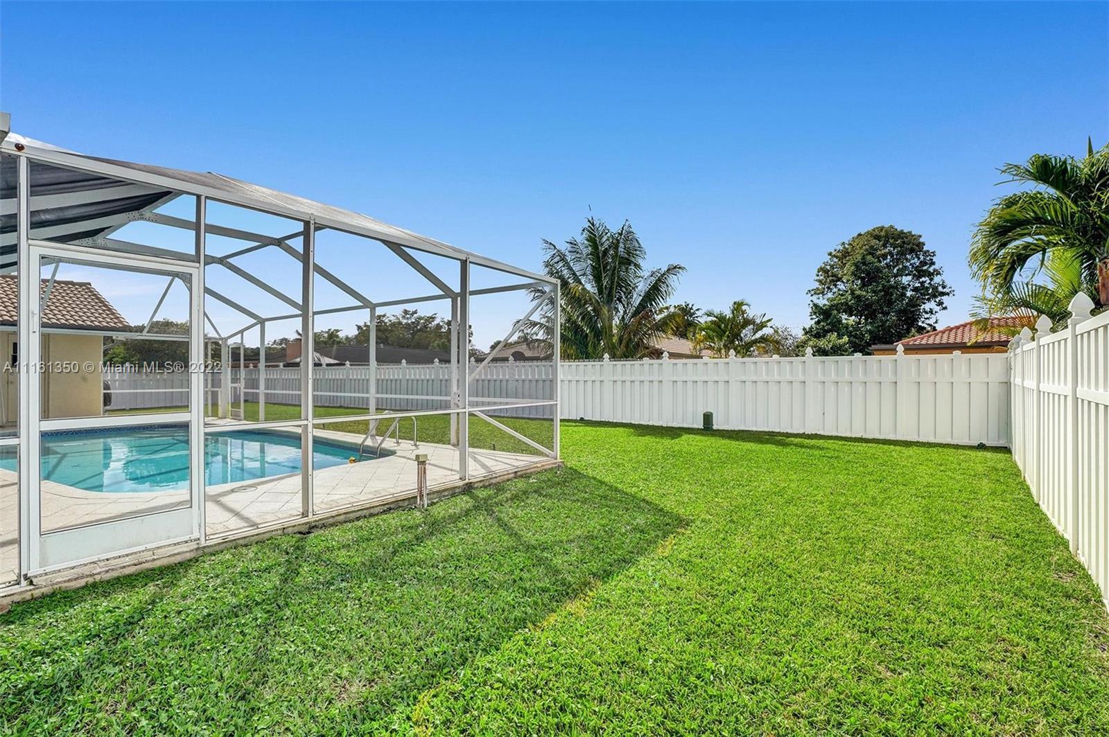 This home shows like a model! Immaculate 4-bedroom 2 bath, one story pool home in Coral Springs! The kitchen has been completely upgraded with custom built high gloss cabinetry, quartz countertops, stainless steel appliances, breakfast bar, touchless faucet and LED lighting above and below the cabinets. The spacious living room offers gorgeous views of the covered patio and pool! New porcelain tile throughout the main living areas of the home. Both bathrooms have been completely upgraded. Large master suite with views of the pool. The backyard is fully fenced-in, with a huge grassy yard, large screen enclosure, travertine patio, oversized pool that was recently resurfaced with a new diamond brite and new decorative tile. This home is protected by security cameras.