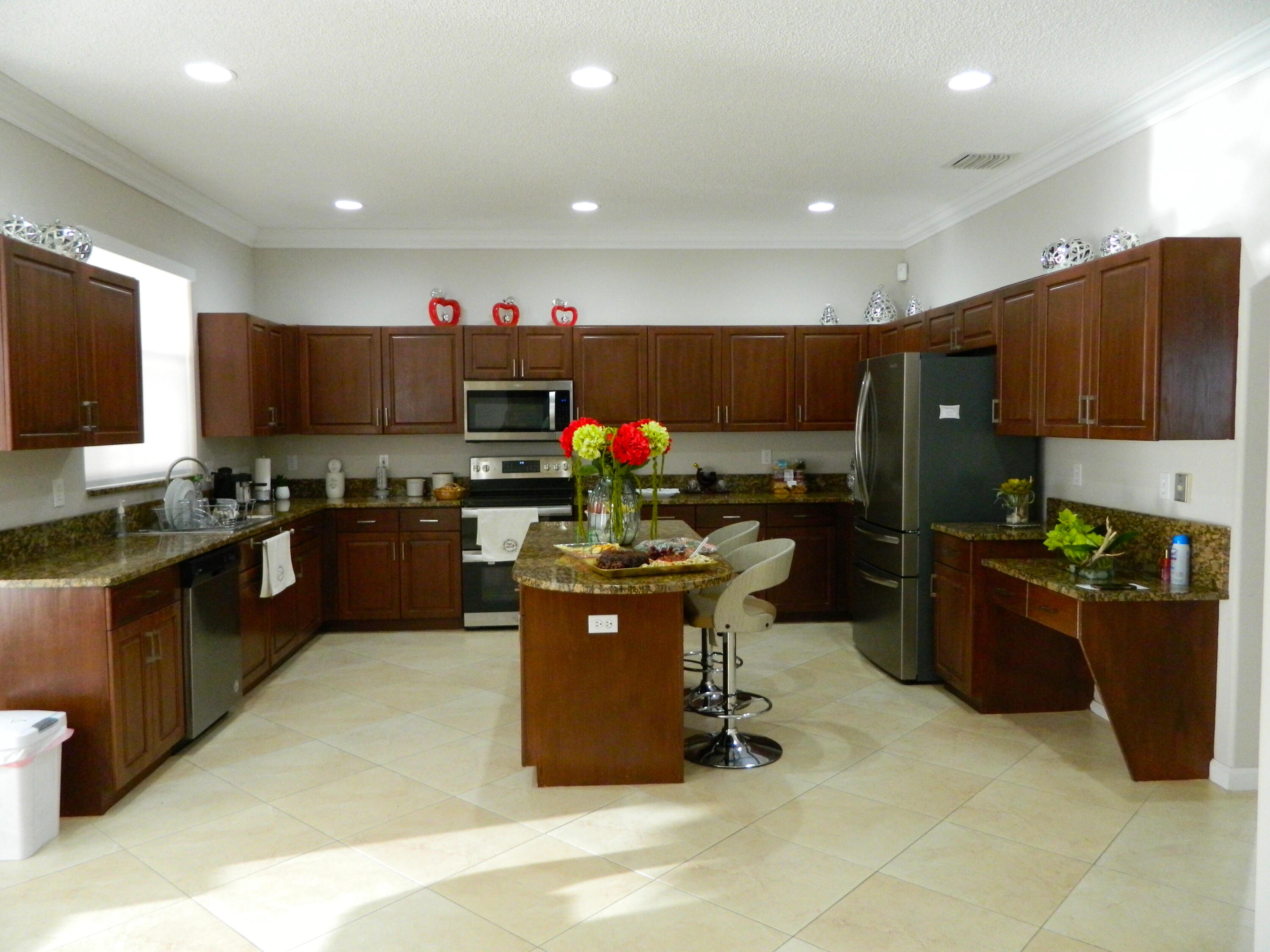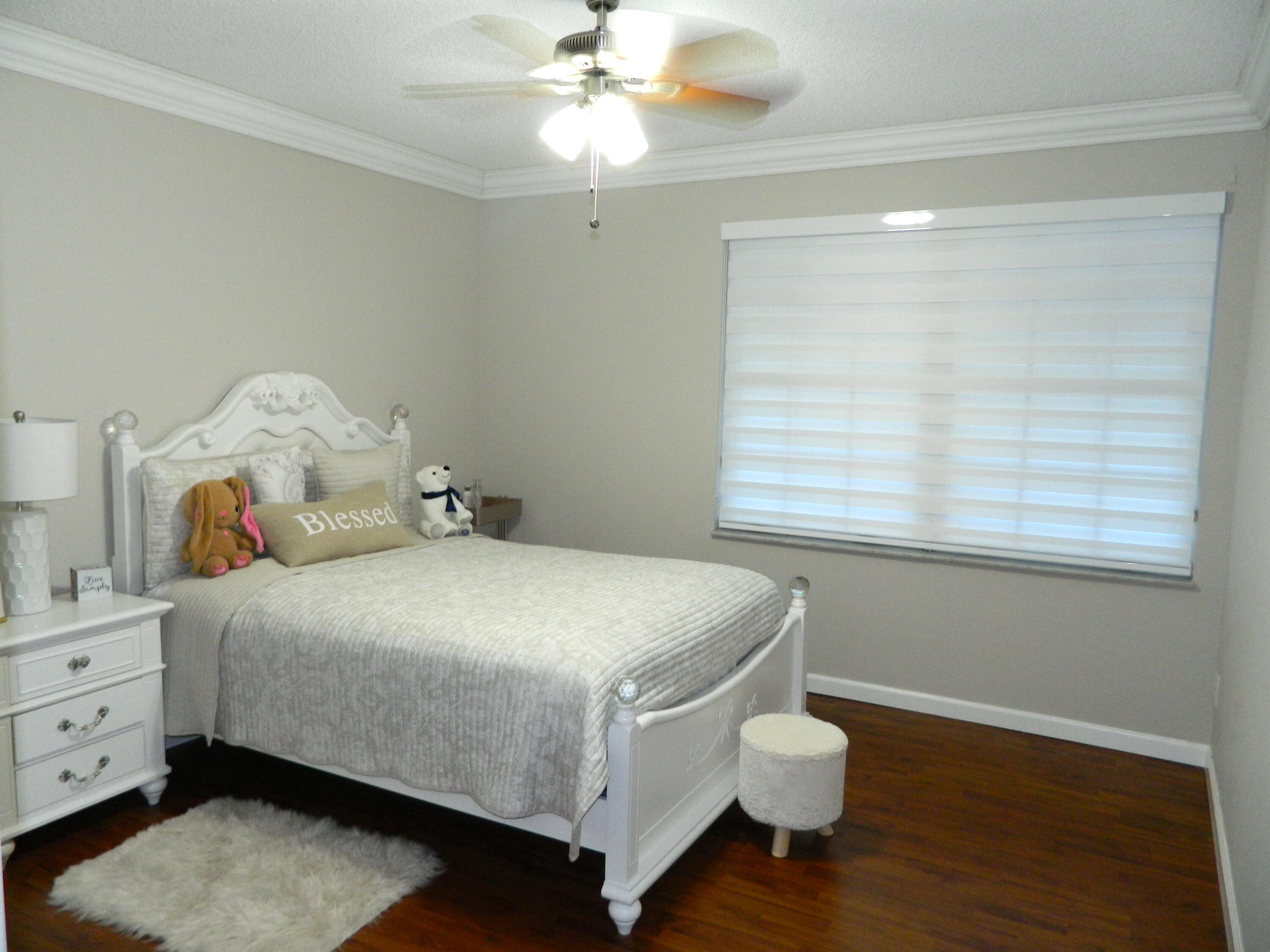 Large and spacious 4 bedroom pool home offers a new roof, fresh interior and exterior paint, oversized kitchen with a new range, micro hood and dishwasher. granite kitchen countertops. Kitchen has brand new appliances. Living room has upgraded modern Wood panels that replaced original shelving. Master bathroom has new modern shower glass door. upgraded shelving space in Master bedroom closets. New roof. . New AC. Back patio has new large awning Supported by Roman pillars. Outdoor pool has new kitchen and refrigerator. New washing machine and dryer. The home also includes a large master with a balcony and very large master bathroom, spacious rooms. large fenced yard with a water view, and good size patio. Gated community includes a pool, and is located in a central and desirable location.