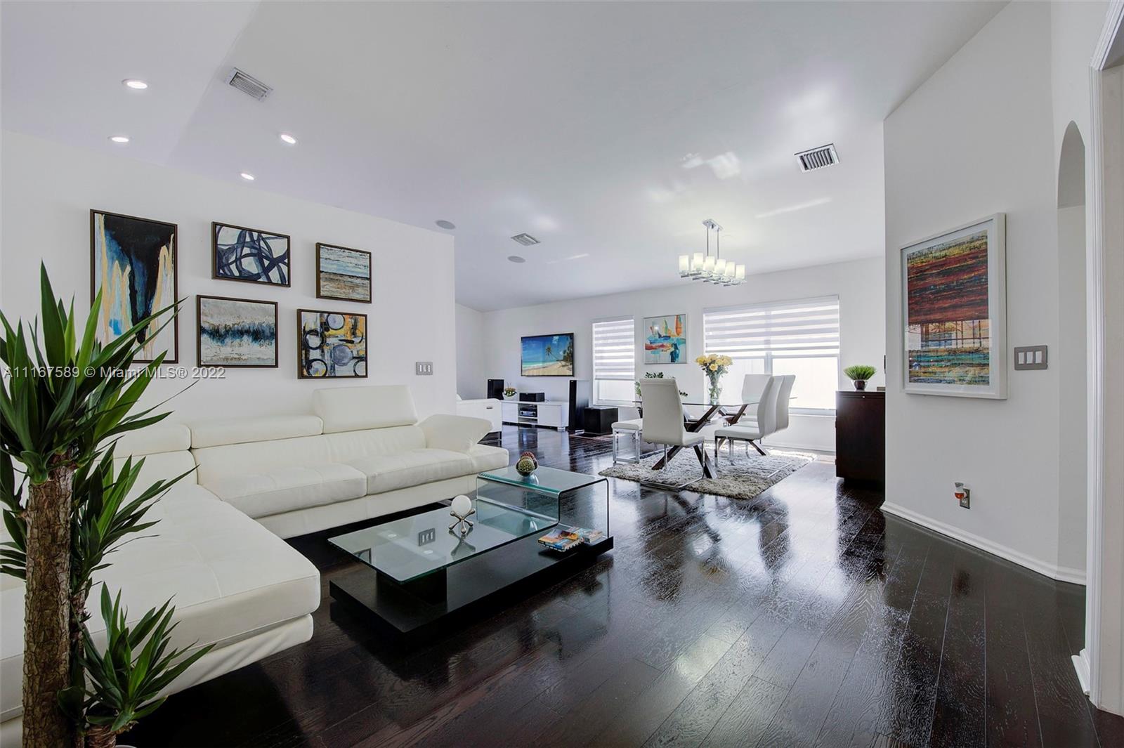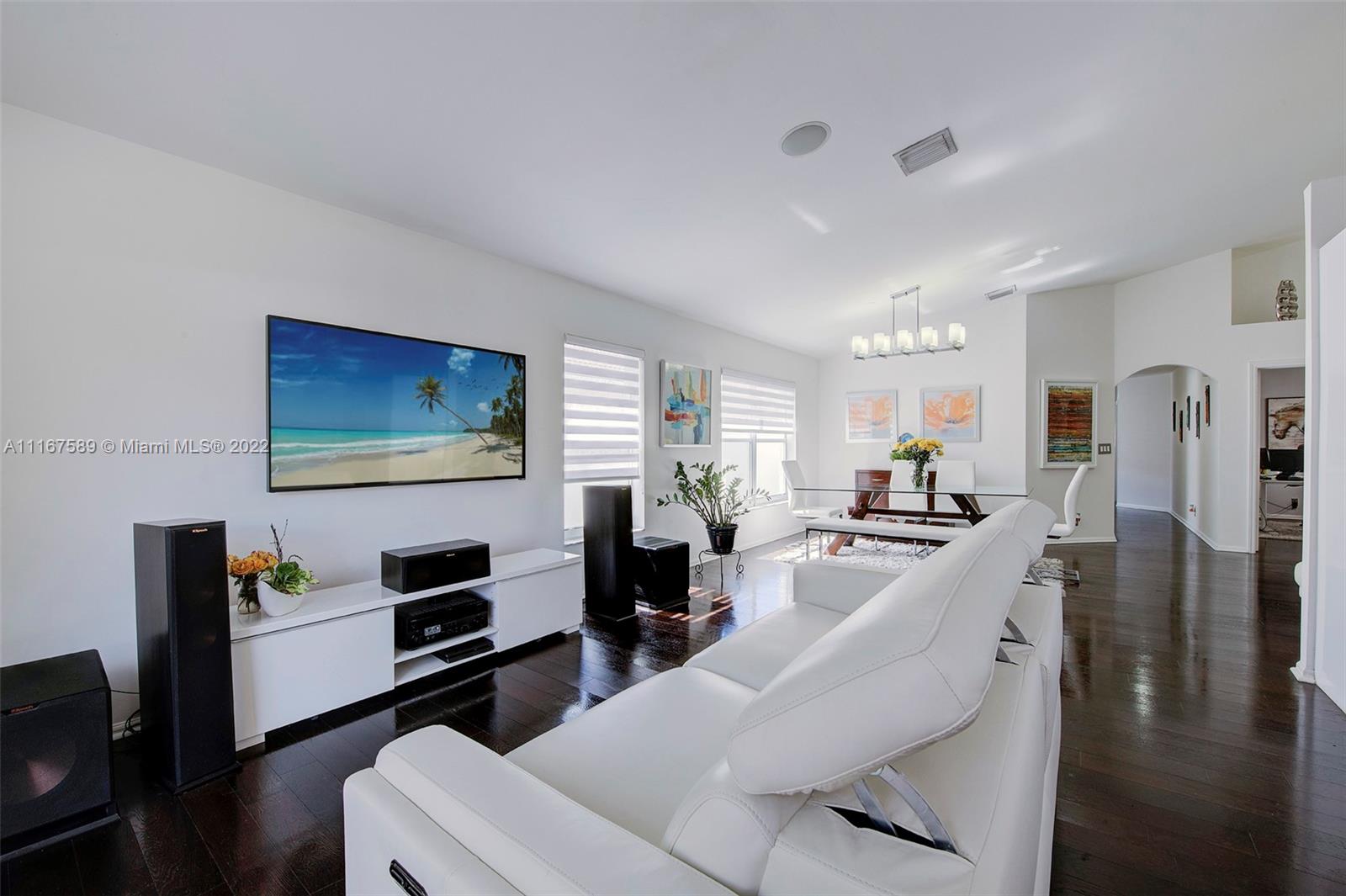 BEAUTIFUL 4 bedroom 2 bathroom home located in the highly sought after Encantada Gated Community! Open floor plan with natural lighting and meticulously maintained. Tastefully updated and renovated white kitchen with beautiful center island, stainless steel appliances and ample storage space. Updated flooring throughout! NEW 2020 AC! Updated window treatment. Surround sound system located in the family area and backyard.Private and fully fenced backyard that makes a great space for entertaining and enjoying Florida days! Automated Misting Mosquito control system 360 all around the house. Hurricane shutters. MUST SEE!!!!