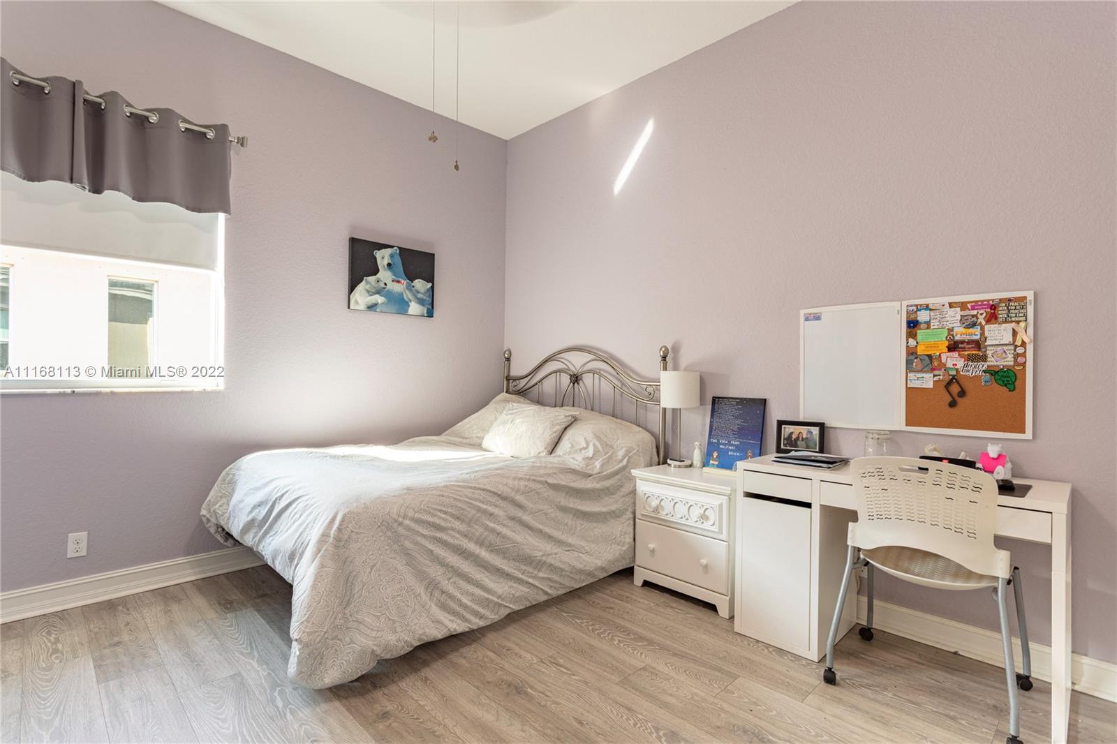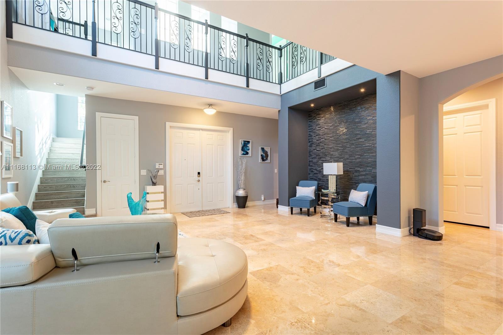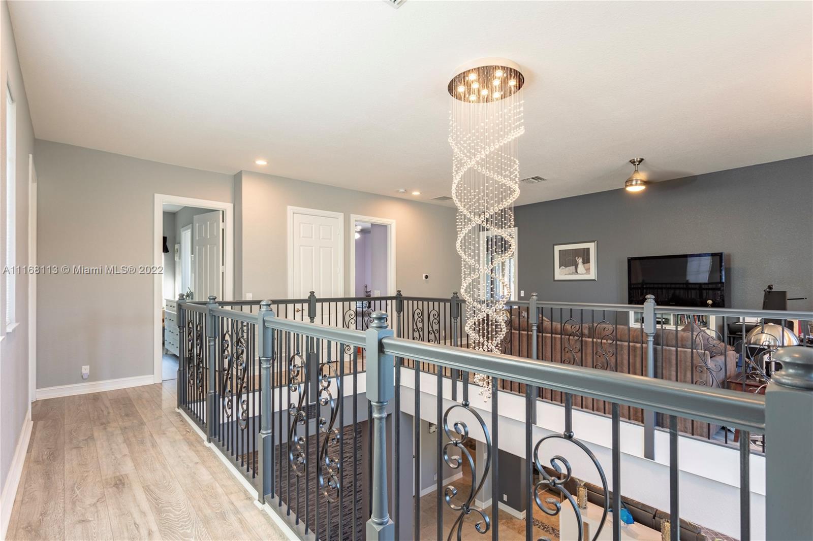 Beautifully renovated St. John Exp model, 2-story 4bed+loft/ 3 bath with pool, fully fenced in yard. 2 car garage, Tesla charger wired. 2 AC units (2016), water heater (2019), pool pump (2021), accordion shutters throughout (2019), updated gourmet kitchen with white and dark quartz countertops and stainless steel appliances. Open living/ family room/kitchen. Bedroom with full bath downstairs. Spacious master bedroom with a balcony upstairs. 2 additional bedrooms (jack’n’jill) + loft upstairs. Marble tile flooring downstairs, laminate upstairs. Full size laundry room with sink upstairs. Overhead storage in the garage. Garage and attic fully insulated. Living room chandelier and garage fridge included. $1,000 Mandatory Capital Contribution to Heron Bay HOA paid at closing.