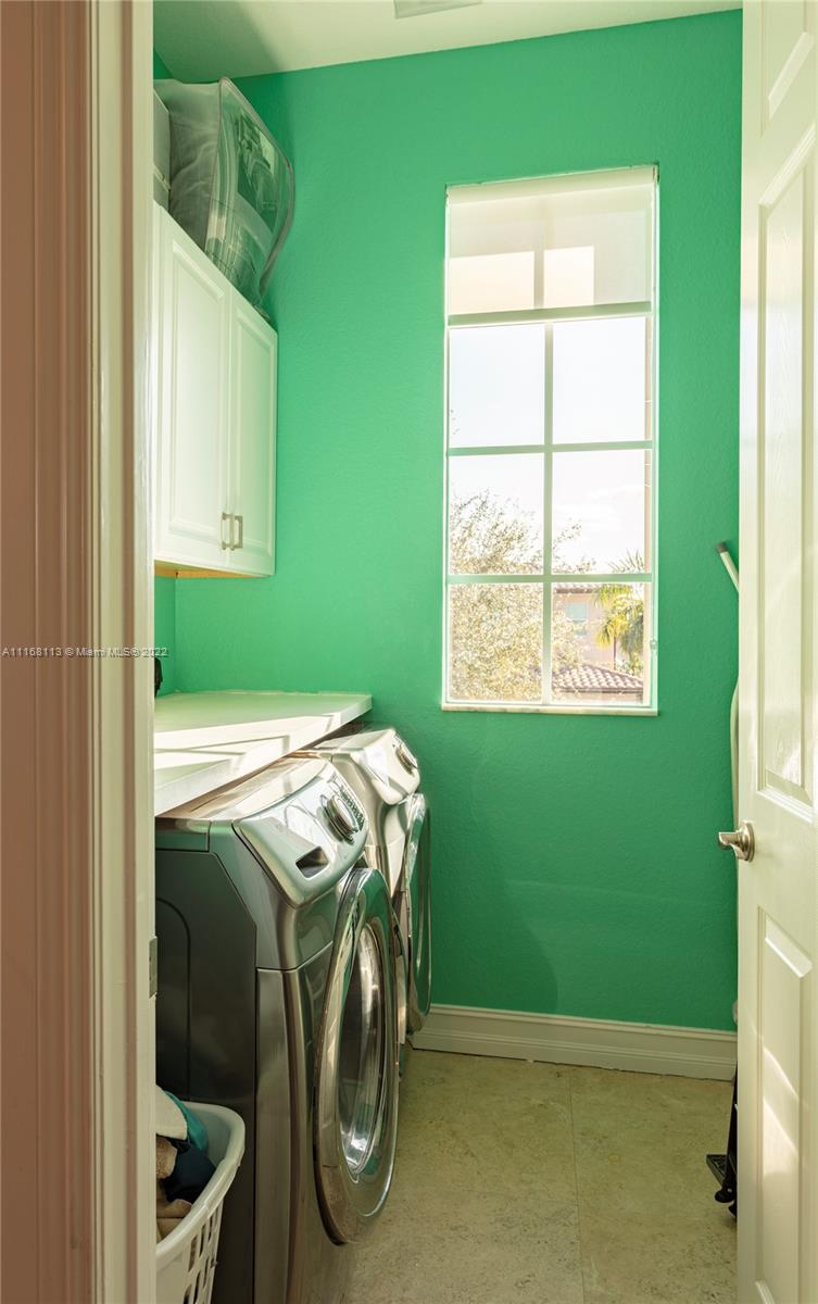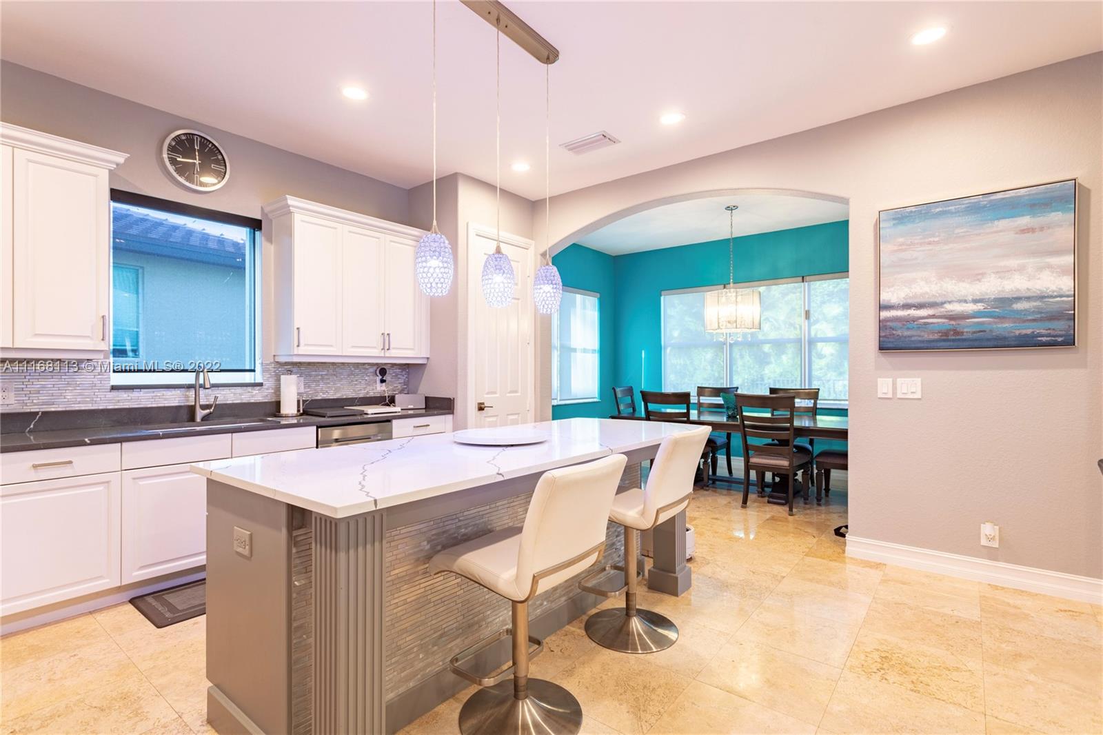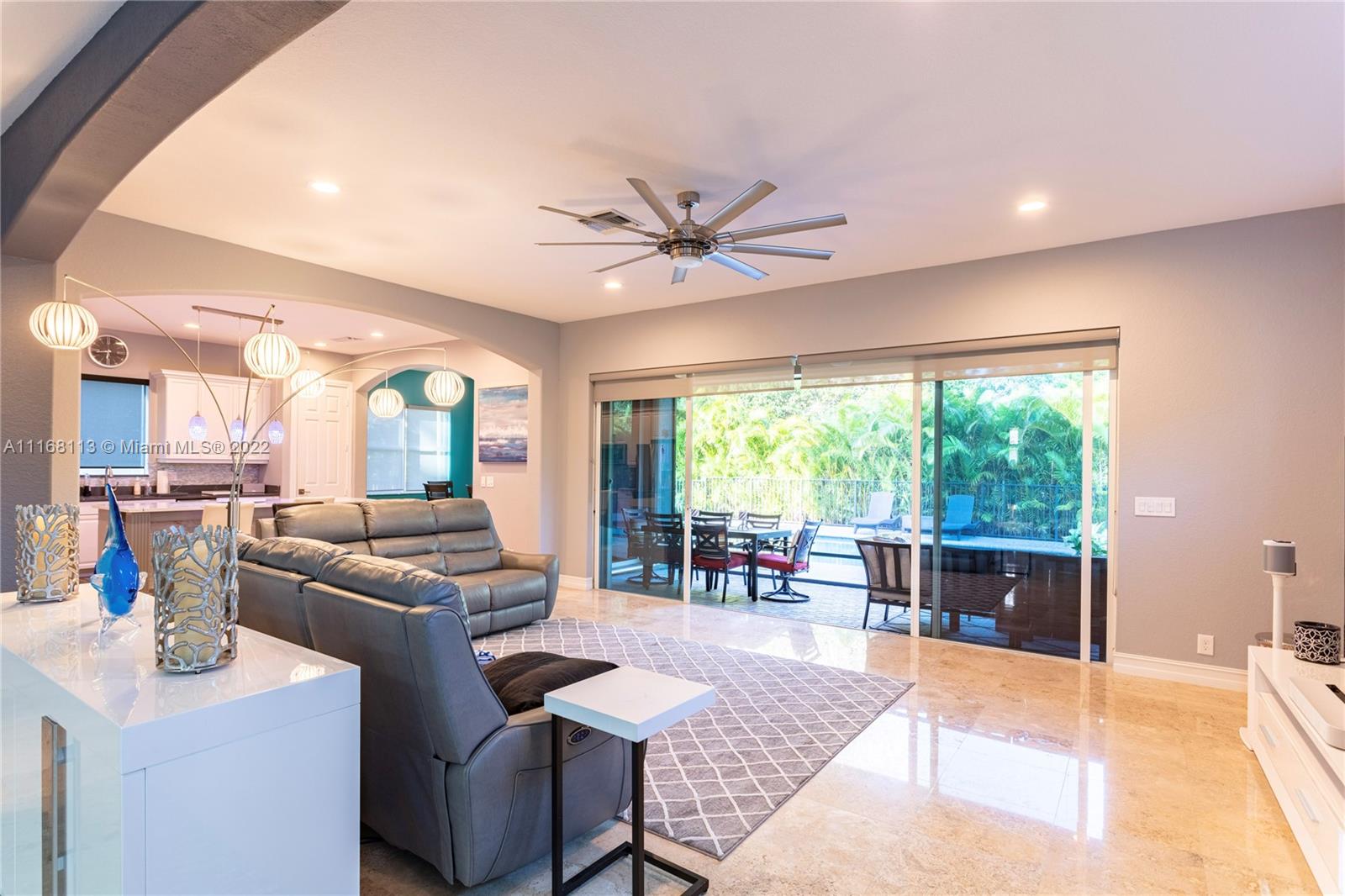 Beautifully renovated St. John Exp model, 2-story 4bed+loft/ 3 bath with pool, fully fenced in yard. 2 car garage, Tesla charger wired. 2 AC units (2016), water heater (2019), pool pump (2021), accordion shutters throughout (2019), updated gourmet kitchen with white and dark quartz countertops and stainless steel appliances. Open living/ family room/kitchen. Bedroom with full bath downstairs. Spacious master bedroom with a balcony upstairs. 2 additional bedrooms (jack’n’jill) + loft upstairs. Marble tile flooring downstairs, laminate upstairs. Full size laundry room with sink upstairs. Overhead storage in the garage. Garage and attic fully insulated. Living room chandelier and garage fridge included. $1,000 Mandatory Capital Contribution to Heron Bay HOA paid at closing.