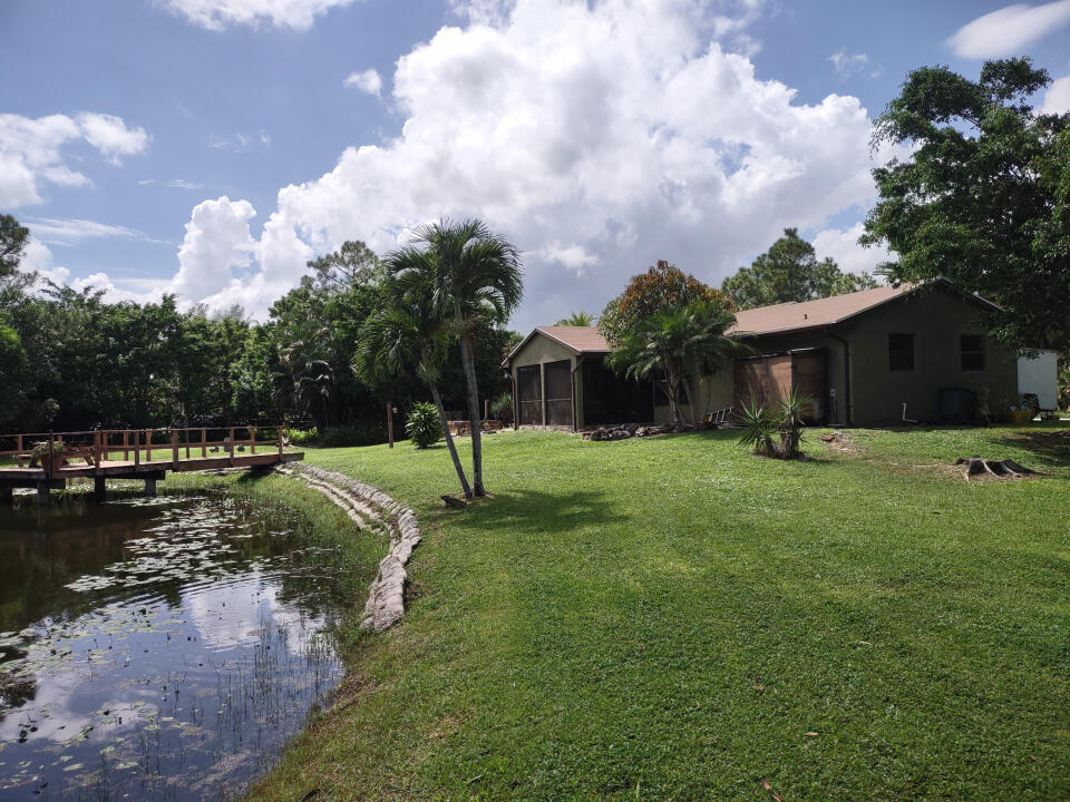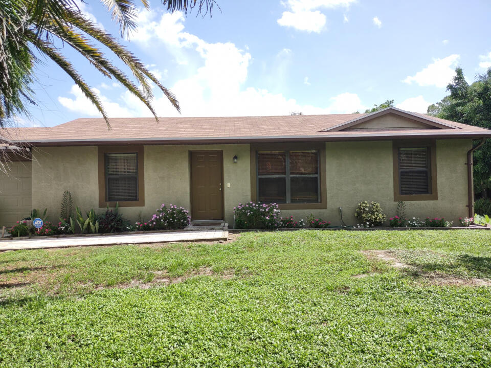If you want a little bit of country but close to town then consider this CBS home. Home has 3 bedrooms, 2 full baths and 2 car garage. Situated on 1.15 acres with a pond. Watch the wildlife from your kitchen window or sit out on the screened in patio with your morning cup of coffee. This home boasts many newly remodeled features. New Roof and gutters 2020, new A/C 2020, New Well 2016, New water system 2016. Both bathrooms totally remodeled with new floors, cabinets, sink, toilets, tubs and shower, new bath and light fixtures. Kitchen has new cabinets, sink, and light fixtures. New light fixtures and ceiling fans throughout the home. All the interior walls and ceilings have been painted 2020. Exterior painted 2020. Close to Royal Palm Beach with plenty of shopping, restaurants and movies.