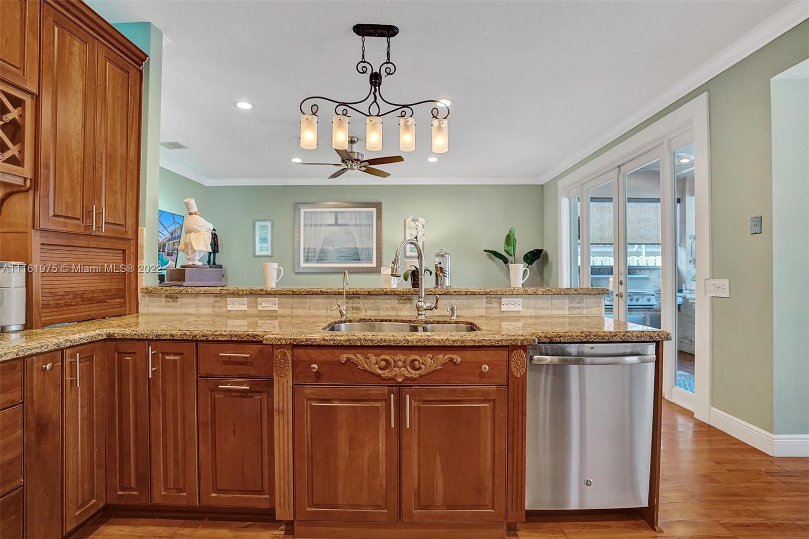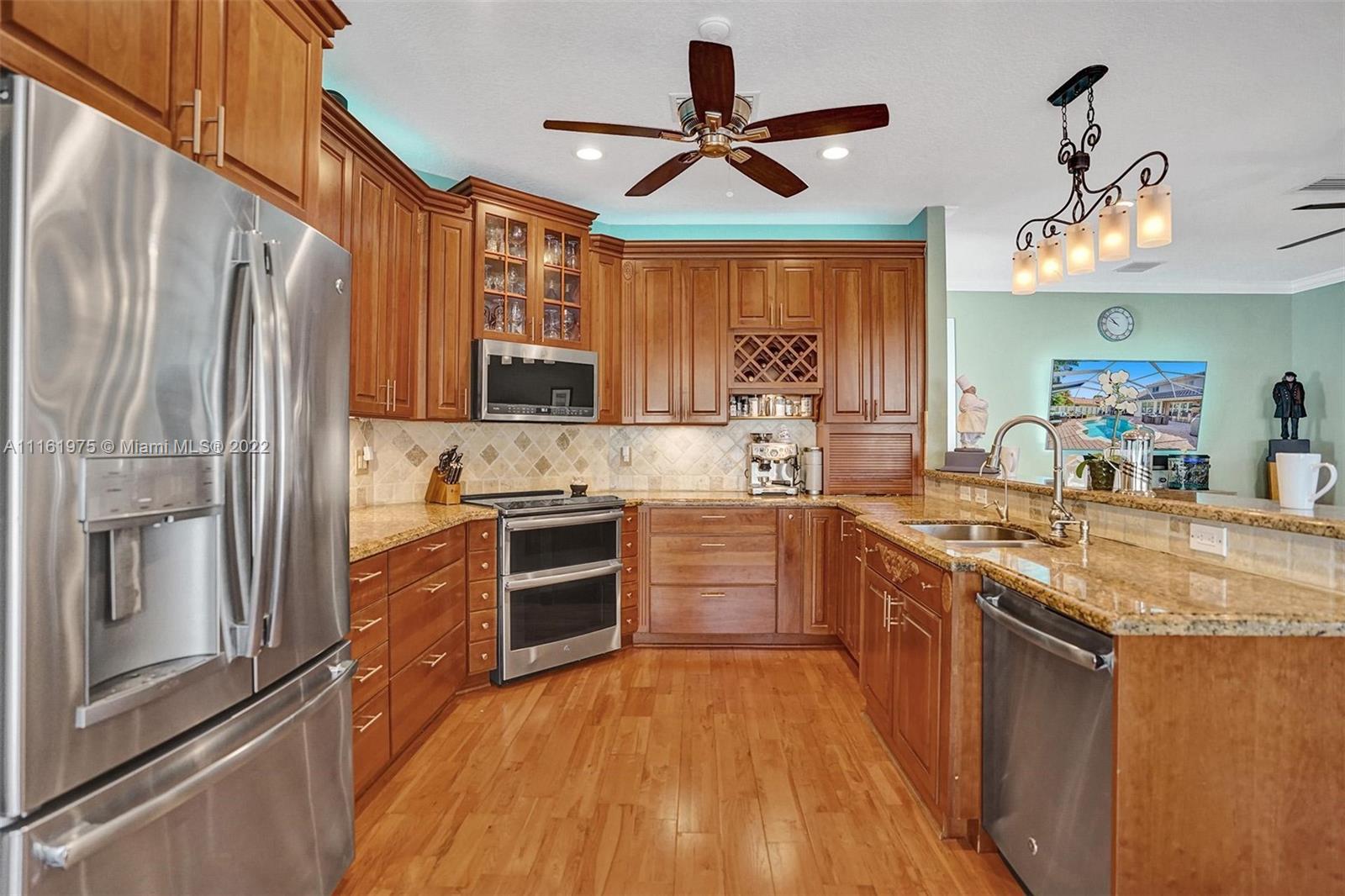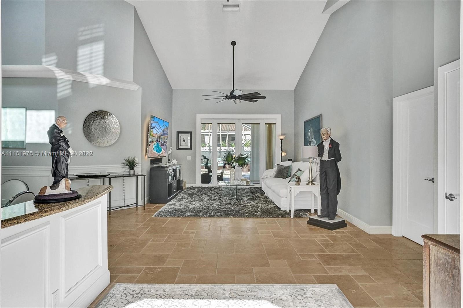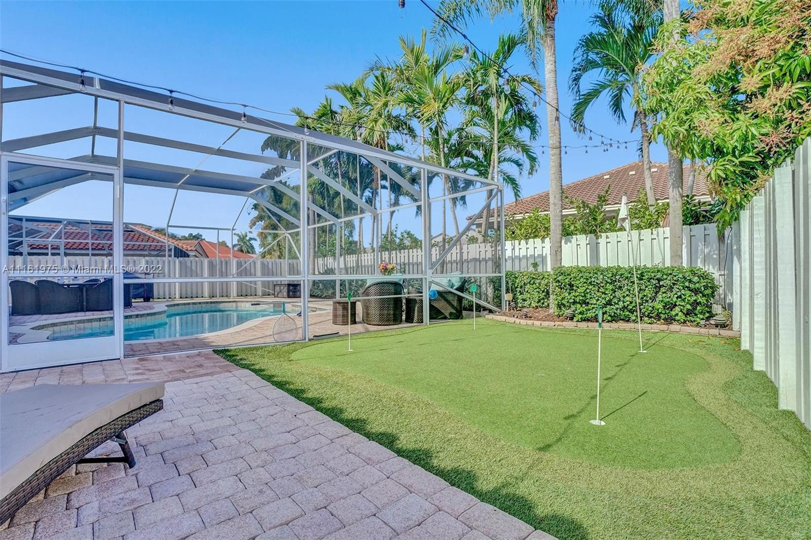 Property is under contract. Open House for Backup Offers Only. Let’s get the party started!! This gorgeous home is perfect for your family & friends to gather. Summer kitchen with an oversized covered lanai & pool area. Practice your golf on your own putting green. Full impact window protection. Walk on to soaring ceilings! Gorgeous kitchen and oversized breakfast area. Freshly painted, new doors and all popcorn ceiling has been removed. Updated high end kitchen & bathrooms. Circular driveway holds 5 cars. Garage built ins included in the sale. Don’t miss this out and start the party today! Mechanical shelving and work benches in garage do not convey.