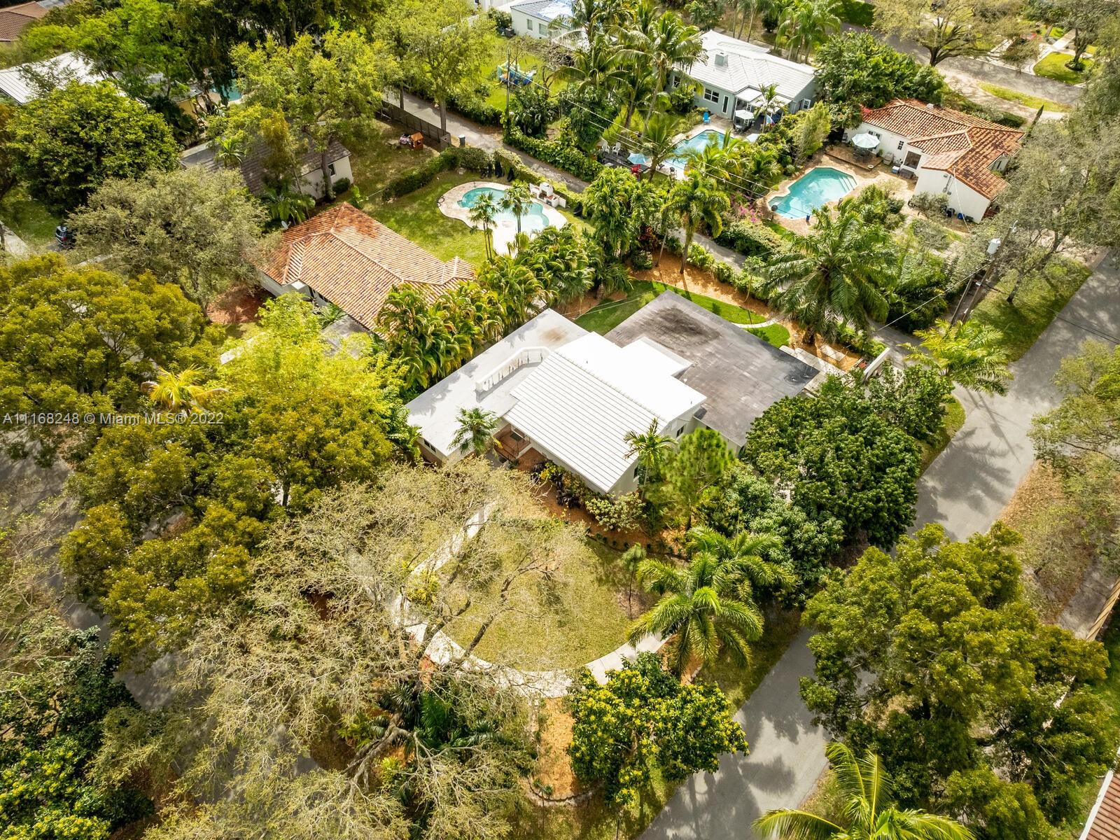 Welcome to Pineapple Point! Opportunity knocks in this classic Mid-Century Modern home on a lush, tree-filled signature corner lot with bespoke petite pineapple grove and separate guest suite. Enjoy as is, or renovate to your heart’s delight in the wide, spacious main house with open living and dining that flows to expansive glass window-walled media room overlooking the large, covered veranda and rear tropical gardens with room for a pool and so much space to entertain, relax and play! Bonus private entrance studio suite great as office, zen den or guest nest. Perks—impact windows, wood floors, newer roof and enclosed garage. All in a non-flood zone just blocks to downtown Miami Shores shops and restaurants. With your personal touches, you’ll agree— Pineapple Point won’t disappoint!