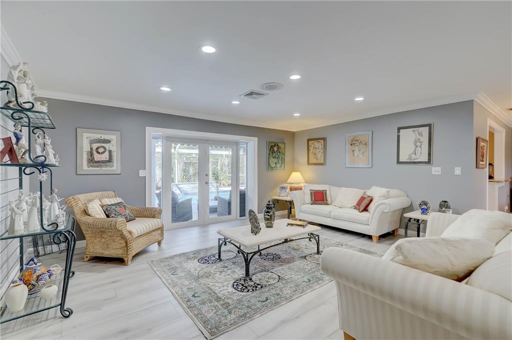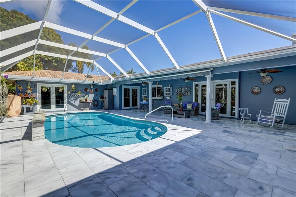 Stunning and meticulously maintained residence located in prestigious Coral Ridge Country Club. This 4br/3ba split bedroom home features a spacious floor plan with many updates. New A/C unit, oven, refrigerator in 2019. Bright, cheerful & elegant kitchen opens up to the formal dining area. New stylish floors installed in 2021 flow throughout the home. French & sliding glass doors open from all living areas, master bedroom and guest room on to your tropical pool deck. Pool equipment, irrigation, Solaris awning installed in 2020 (awning has a lifetime warranty). Generator installed in 2019 (Gas powered from city utilities). Impact windows & doors. Lush, professional landscaping surrounds entire property. Great proximity to the beach, Bayview Park and great private schools.