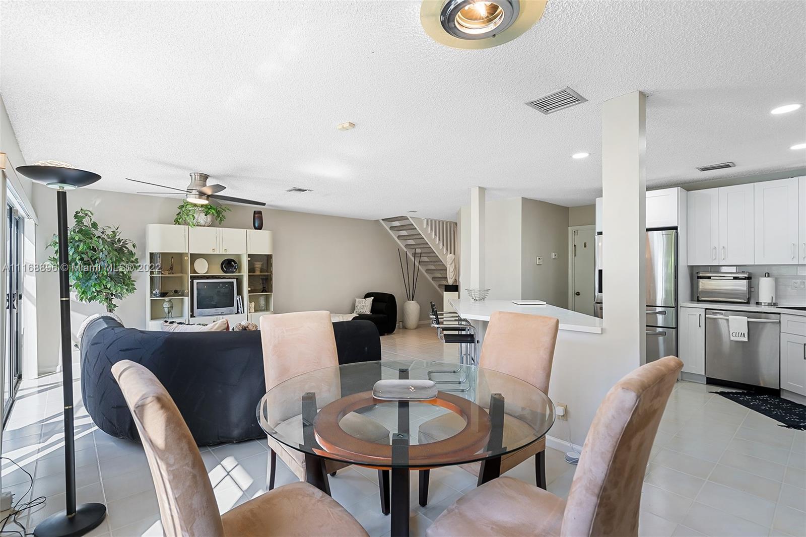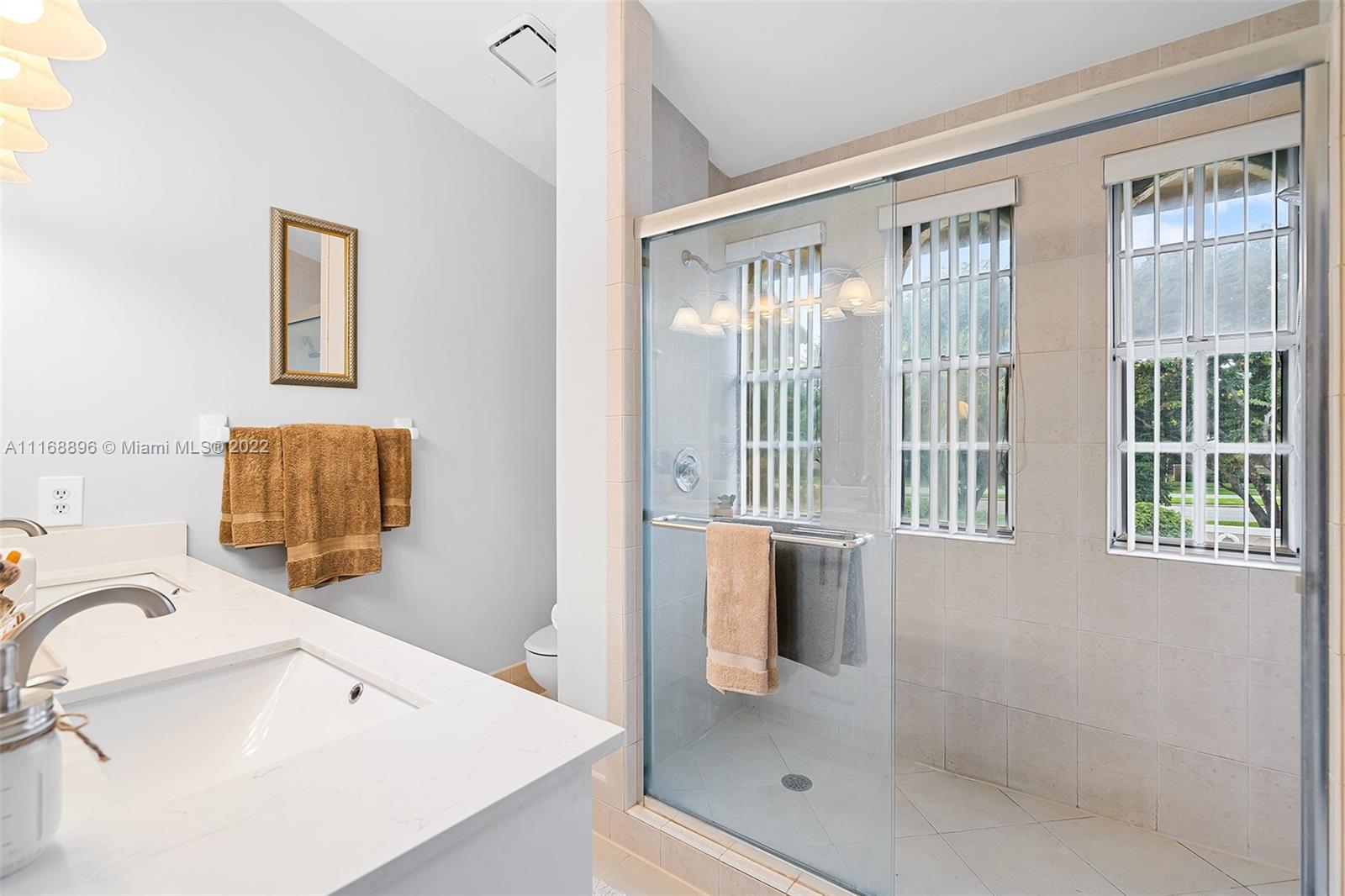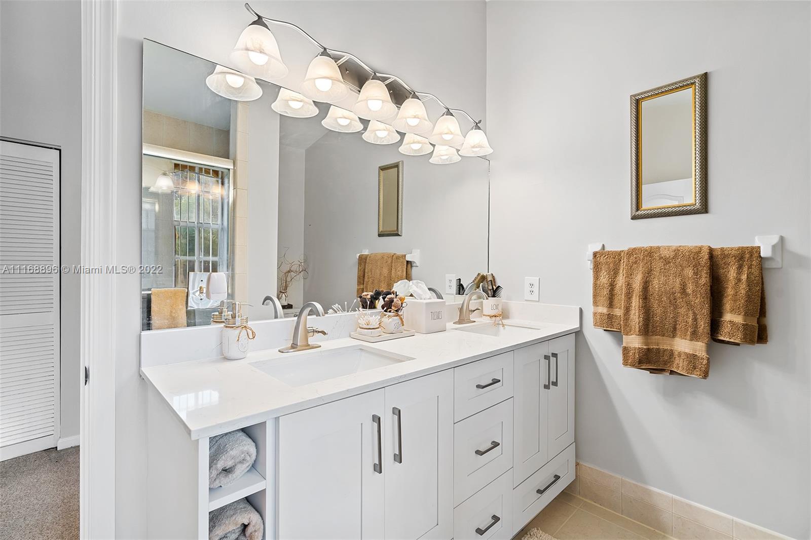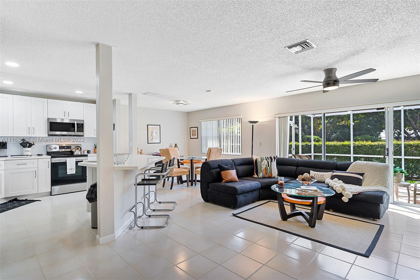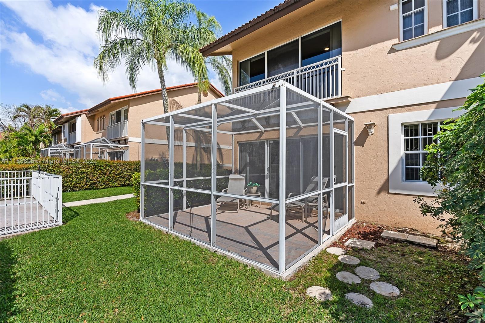 This is the one! Spacious corner 3-bedroom 2 and a half bath townhouse with 2 car garage in desirable Coral Sun, Coral Springs. 1st floor has a foyer entry, an open concept living area, powder room, beautifully renovated kitchen with stainless steel appliances and quartz countertops, huge island and custom cabinetry. Sliding doors open to a serene extended screened in patio. Second floor 2 front bedrooms share a balcony, and each have huge walk-in closets, owner's suite has sliding doors for an indoor/outdoor feel, vaulted ceilings and a renovated bathroom. Closet space galore! Centrally located close to highways and shopping. See this beautiful townhome before its gone!