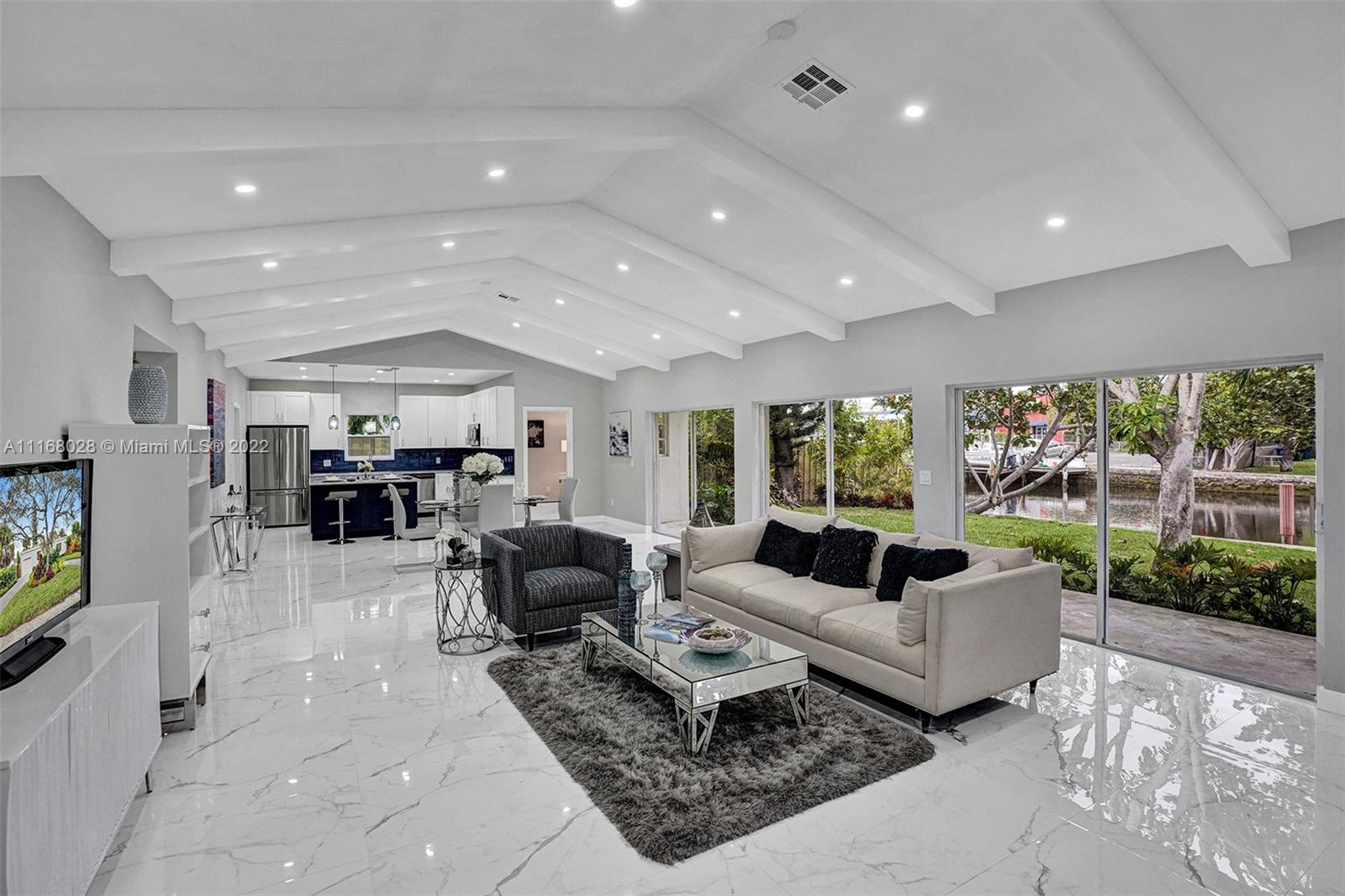 Perfection In Paradise! Another Completely Renovated Residence By The Mill's Design Group, This waterfront 3 bedroom 2 bath, office/den option & garage has all of the upgrades & space that you have been searching for. Soaring High Volume Cathedral Ceilings greet you as you enter the fireplace living room & dining room, Your Open Concept Kitchen has a sea of light blues, gray & white quartz countertops. White shaker cabinetry & top of the line stainless steel appliances, The primary bedroom suite includes a secluded courtyard perfect for morning coffee.& a spa designed bathroom with a soaking tub, shower, double vanity. Walk to Trader Joe's, Whole Foods, Bike to the beach, East Of US1, 1 Fixed Bridge To The Ocean. Incomparable Property. Staged By "Florida Stage Hands & Design's"