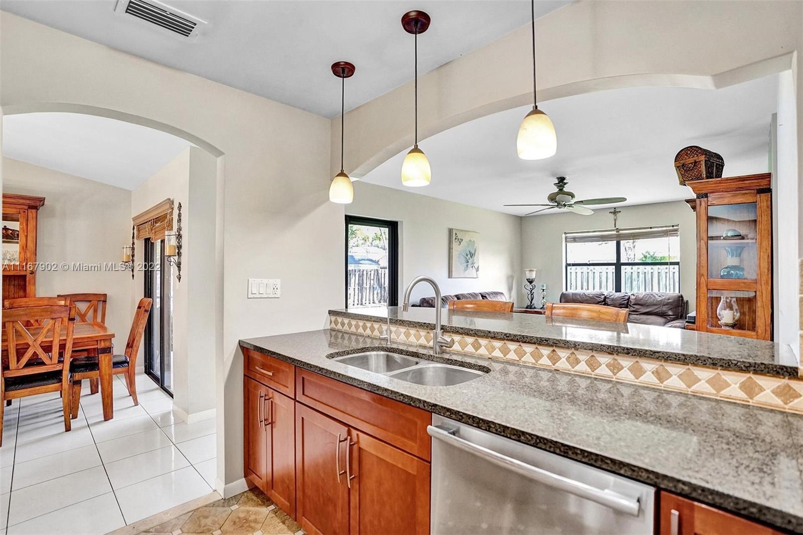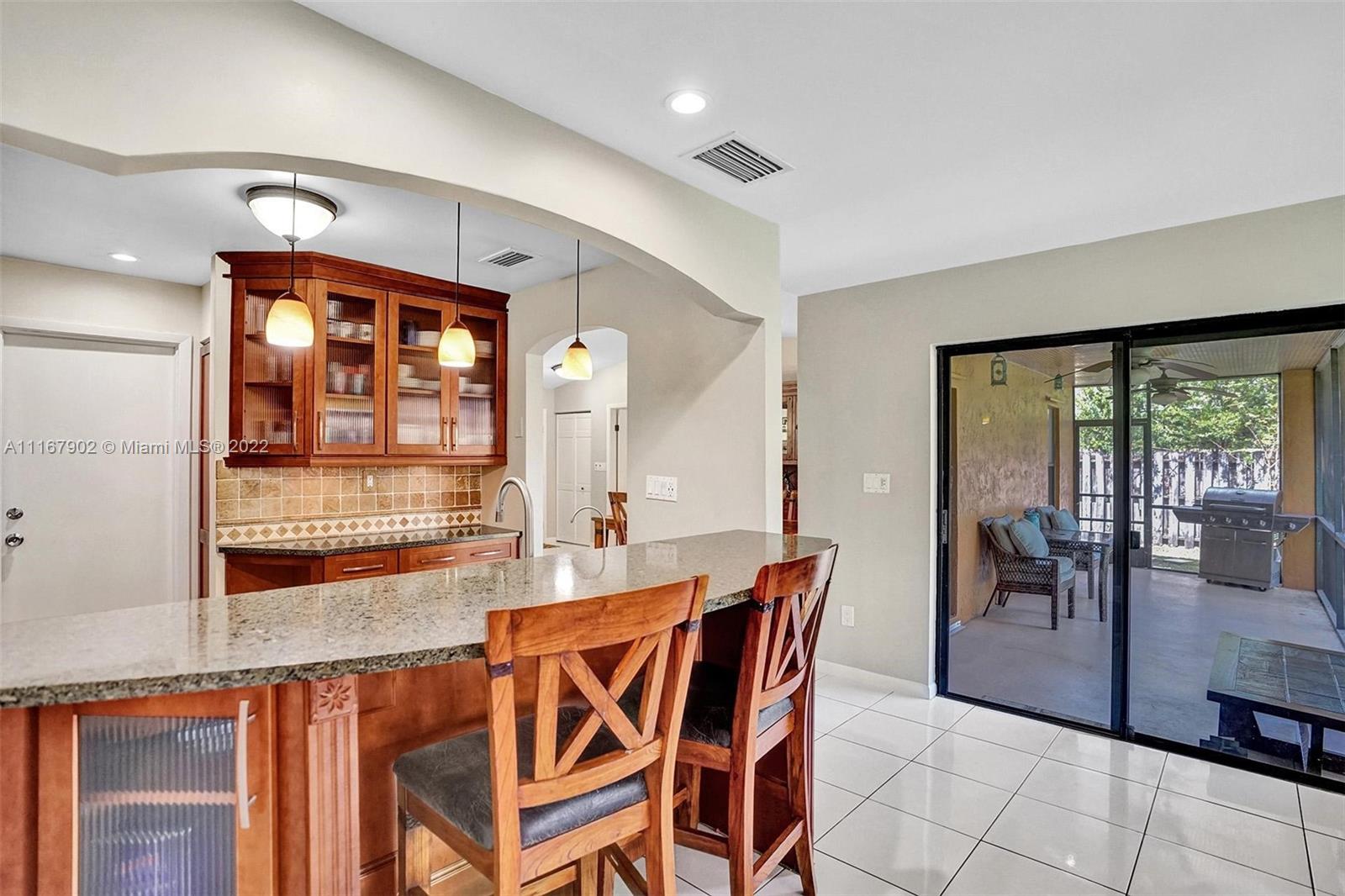 Come see this wonderful home in a well-kept community of sought after Cooper City. This 3 bedroom, 2 bath, 1,812 sq ft home, boasts a gorgeous kitchen, upgraded bath, and a great split bedroom floorplan. Large living areas with vaulted ceilings in the living and dining room. Enjoy the screened in patio, overlooking the large, fenced in yard, with enough room for a pool. Lots of storage in the 2 car garage, and A/C is 2016. Perfect location with short walking distance to Tamarind Park and Griffin Elementary. All schools are A-rated and highly desirable. No HOA in this family-friendly neighborhood. Come see this gem this weekend, it won't last!