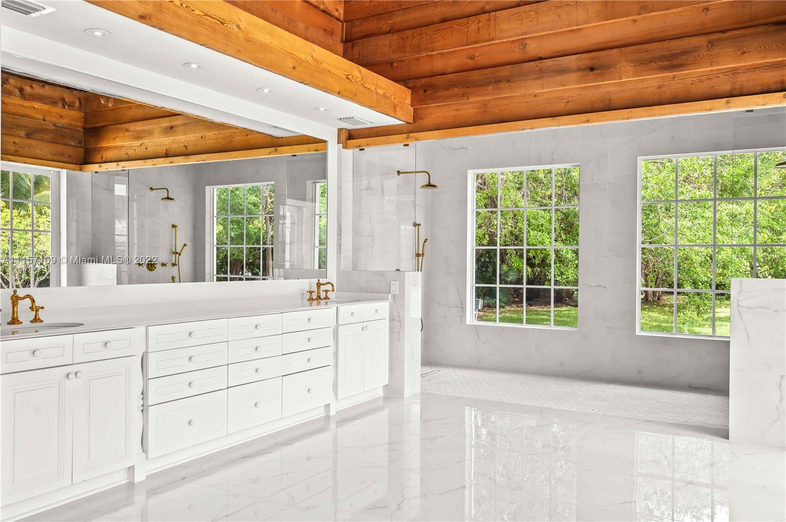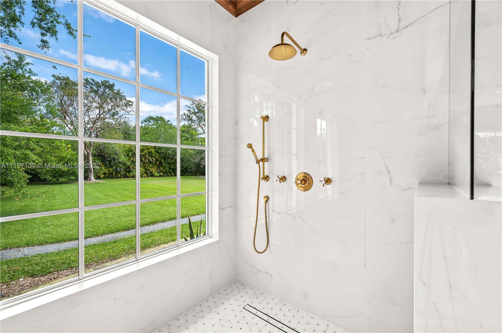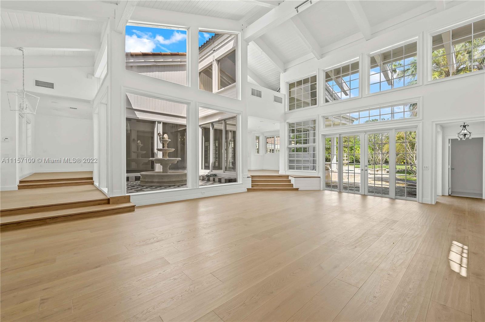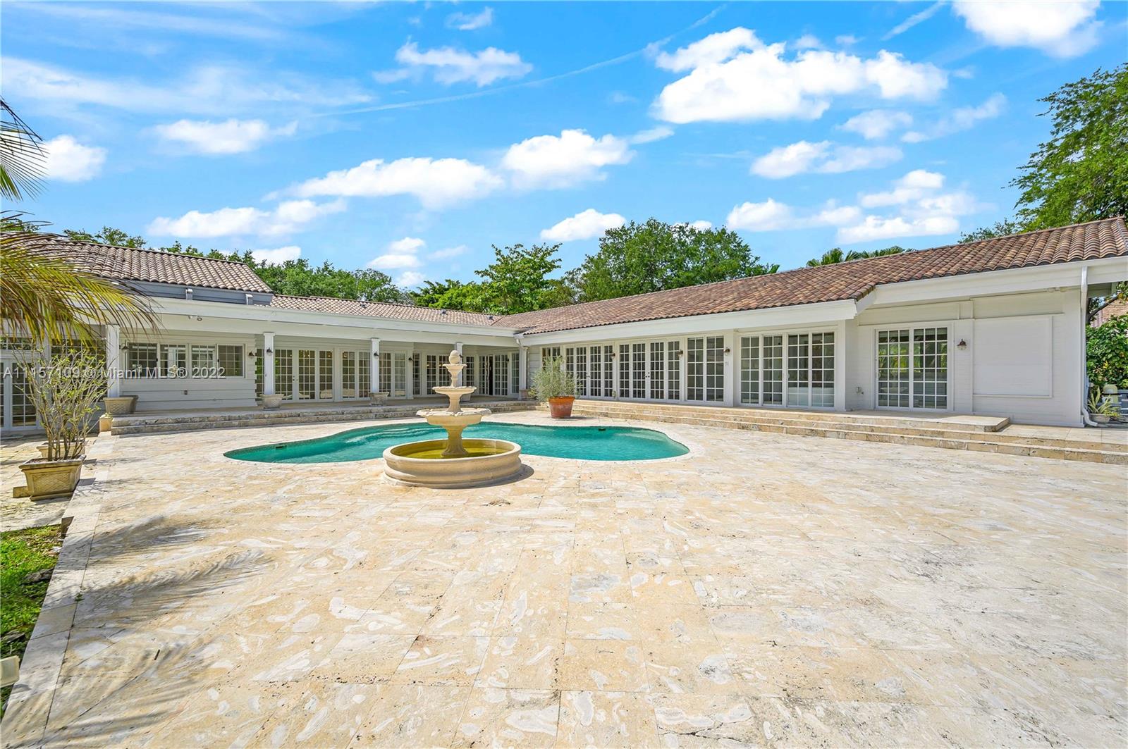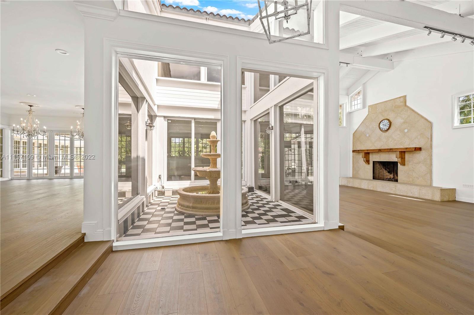 Beautiful 6 bedroom/6 bathroom 7,000 sqft Hamptons style home located on 1.5 acres in prime location Pinecrest. The property boasts enormous front and backyards with 29 mature oak trees, fruit trees, and a world of privacy. Fully remodeled, rich in precious details like the breathtaking fountain atrium when you first enter the house, brand new European hardwood oak floors, restoration hardware bathroom, and window fixtures, a stunning Tuscan style kitchen with top of the line appliances, and a butlers pantry area. Each bedroom has its own bathroom and a spacious walk-in closet. The great room and MB are bright and tall with double-height ceilings and open views of the outdoors. Impact windows, security camera system, 2 car garage, own well, and a water softener system.