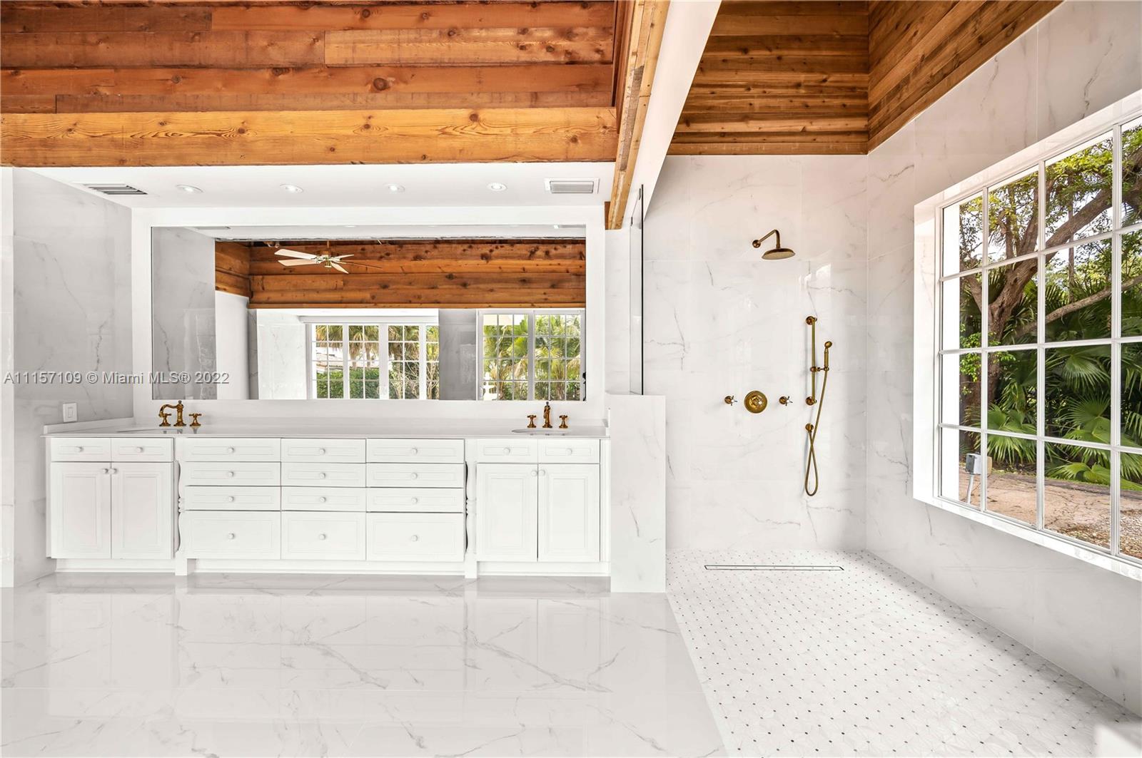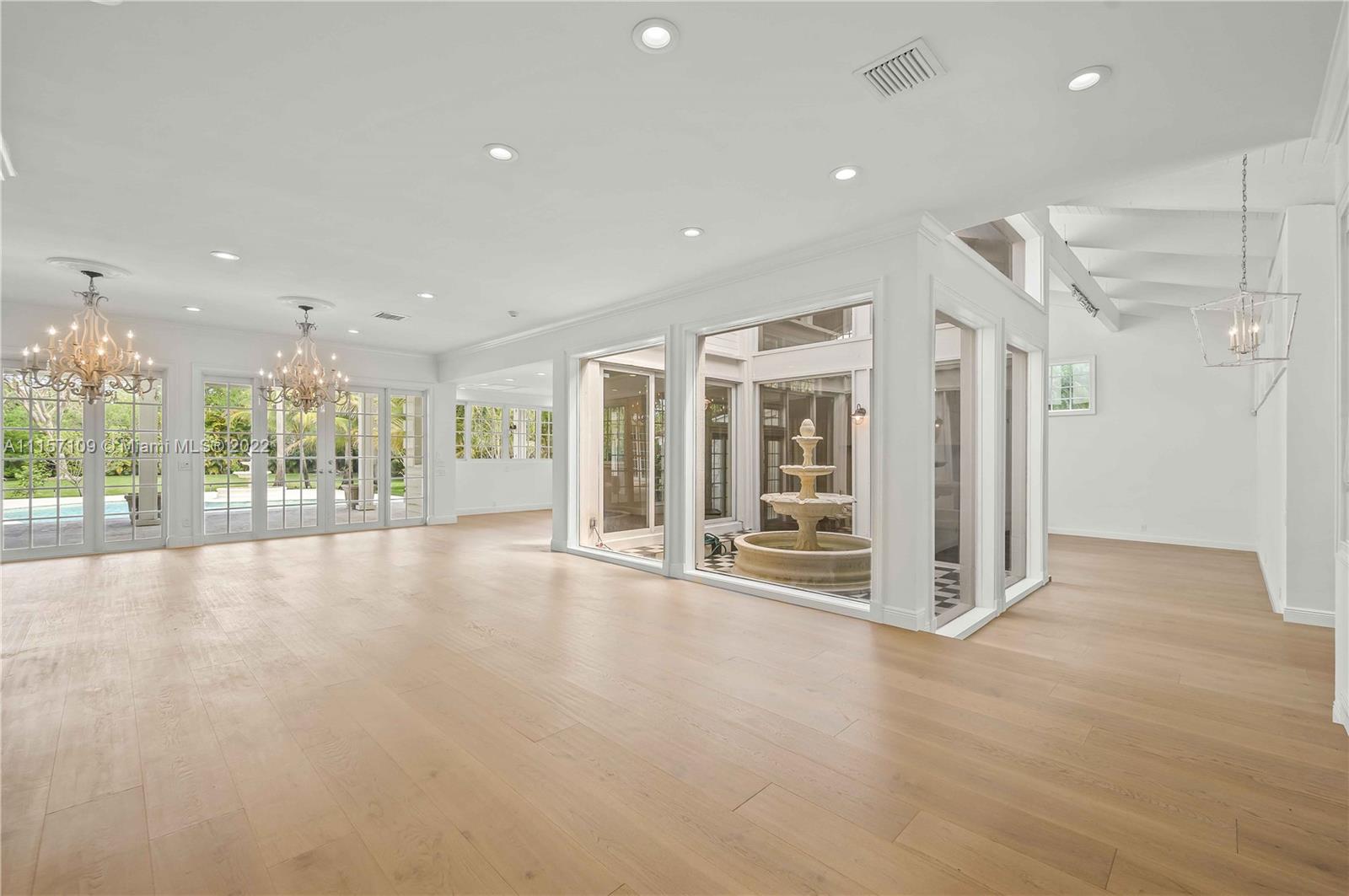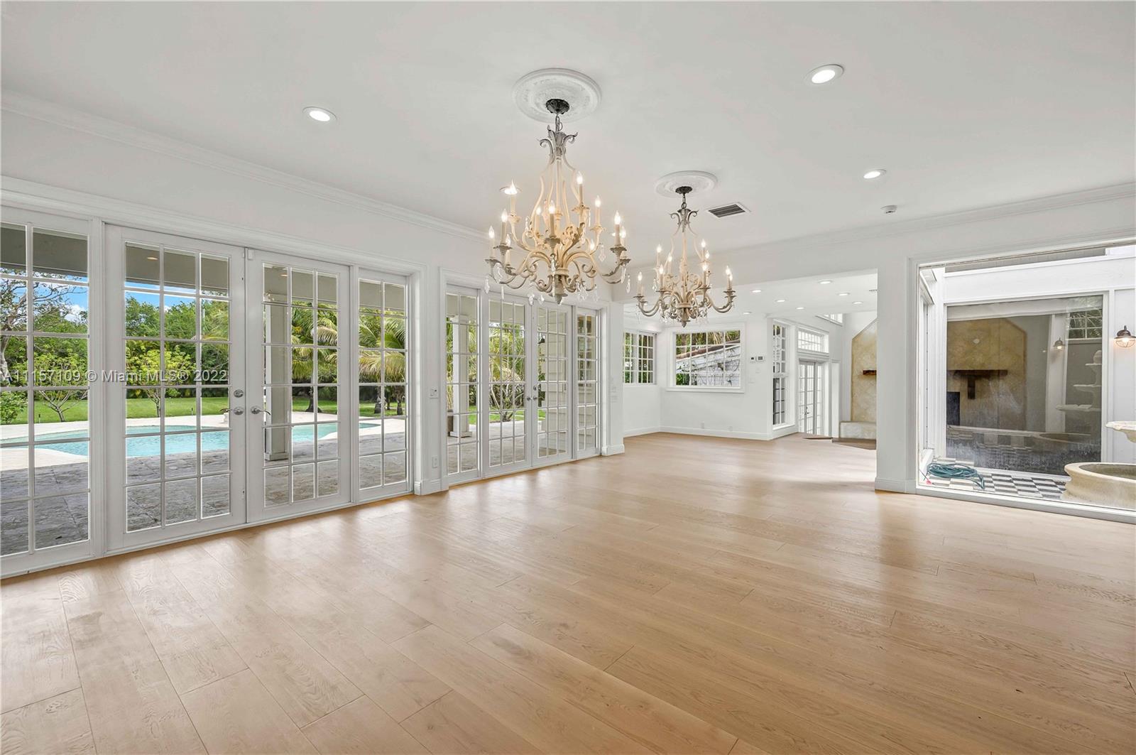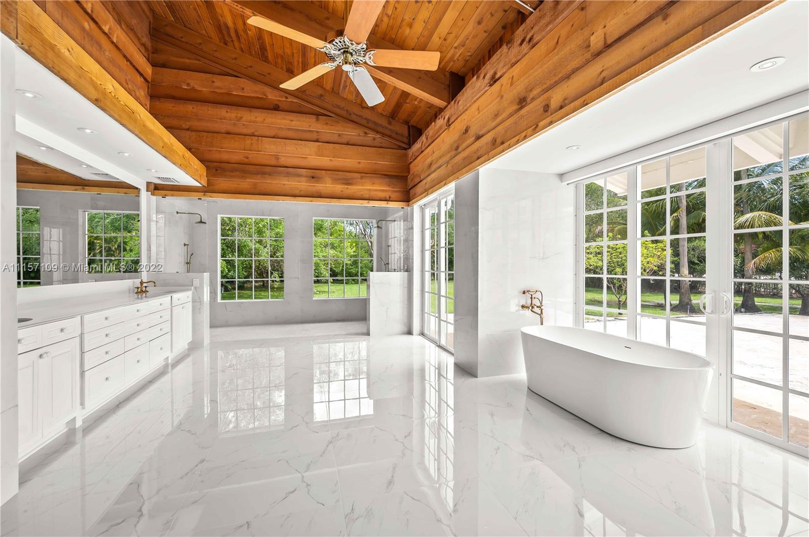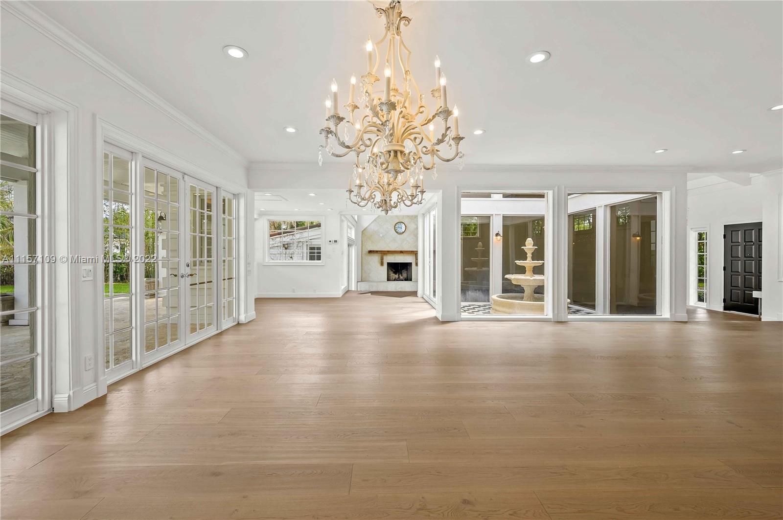 Beautiful 6 bedroom/6 bathroom 7,000 sqft Hamptons style home located on 1.5 acres in prime location Pinecrest. The property boasts enormous front and backyards with 29 mature oak trees, fruit trees, and a world of privacy. Fully remodeled, rich in precious details like the breathtaking fountain atrium when you first enter the house, brand new European hardwood oak floors, restoration hardware bathroom, and window fixtures, a stunning Tuscan style kitchen with top of the line appliances, and a butlers pantry area. Each bedroom has its own bathroom and a spacious walk-in closet. The great room and MB are bright and tall with double-height ceilings and open views of the outdoors. Impact windows, security camera system, 2 car garage, own well, and a water softener system.