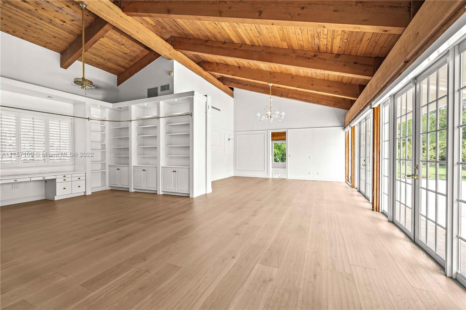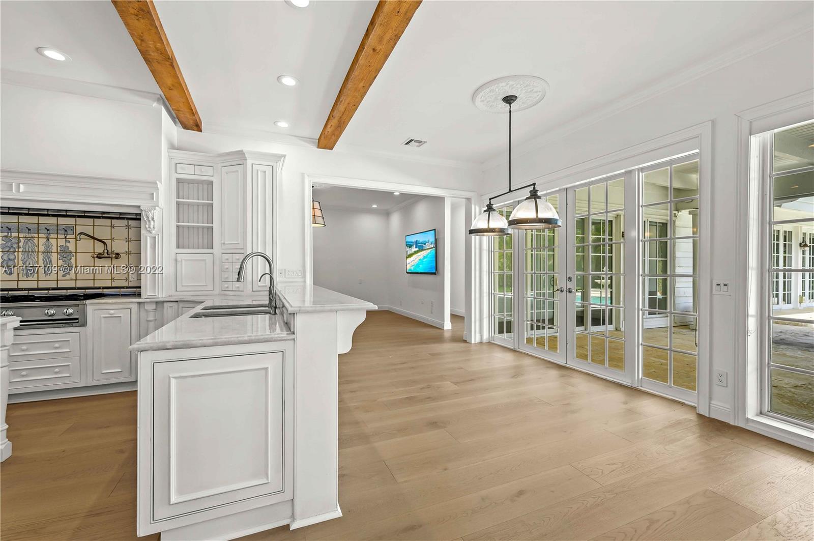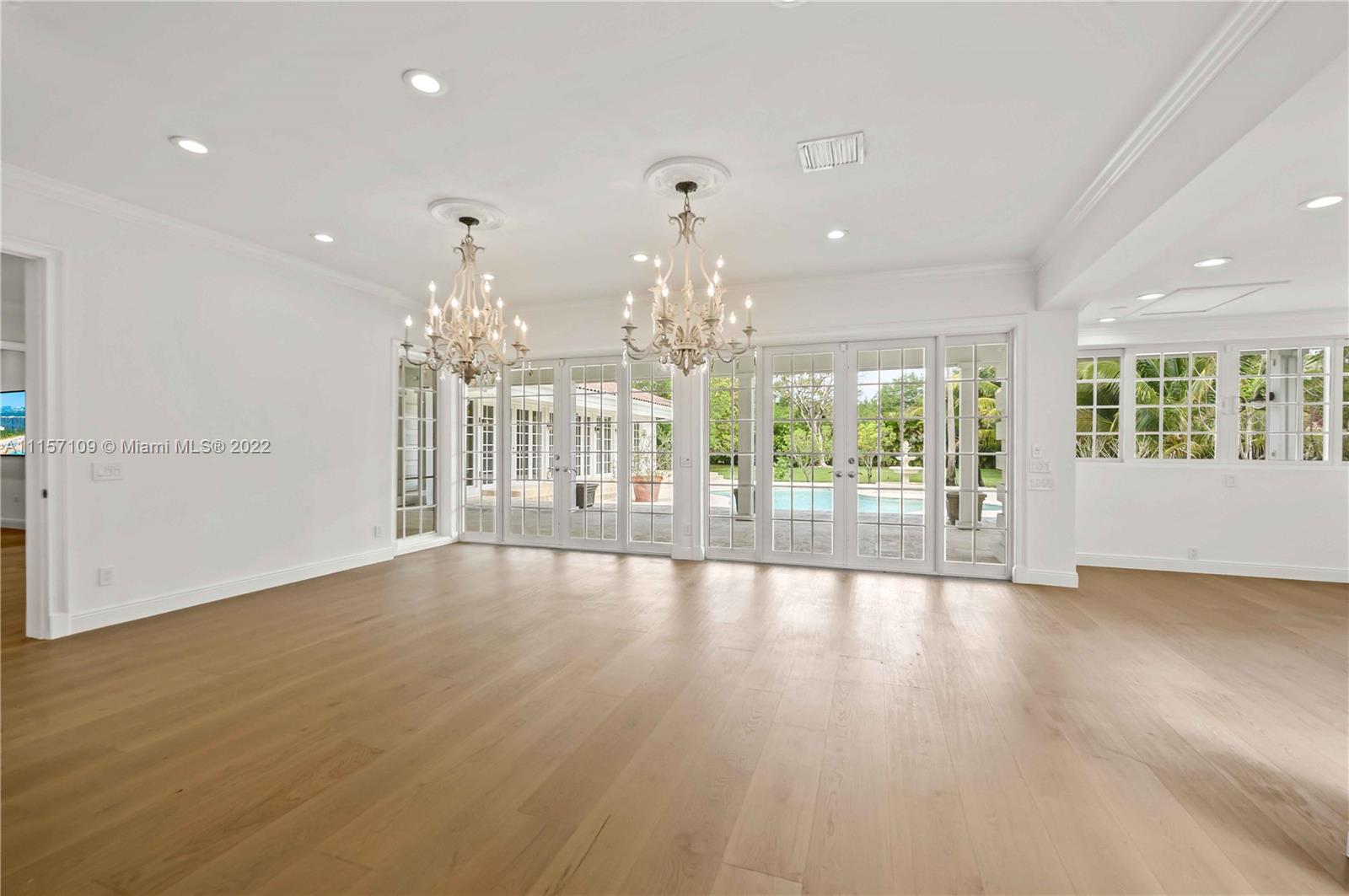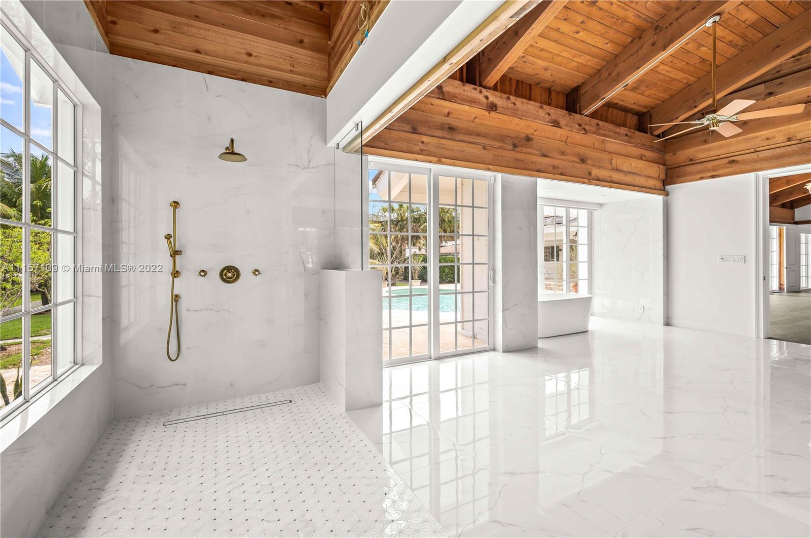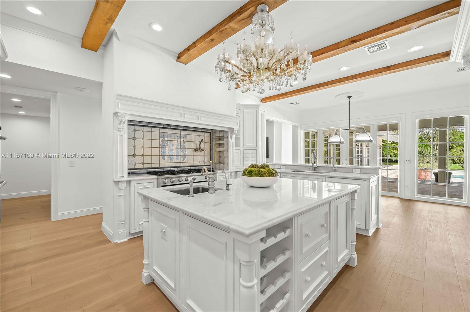 Beautiful 6 bedroom/6 bathroom 7,000 sqft Hamptons style home located on 1.5 acres in prime location Pinecrest. The property boasts enormous front and backyards with 29 mature oak trees, fruit trees, and a world of privacy. Fully remodeled, rich in precious details like the breathtaking fountain atrium when you first enter the house, brand new European hardwood oak floors, restoration hardware bathroom, and window fixtures, a stunning Tuscan style kitchen with top of the line appliances, and a butlers pantry area. Each bedroom has its own bathroom and a spacious walk-in closet. The great room and MB are bright and tall with double-height ceilings and open views of the outdoors. Impact windows, security camera system, 2 car garage, own well, and a water softener system.